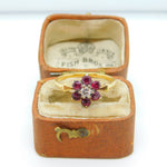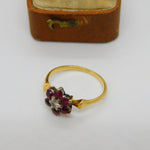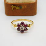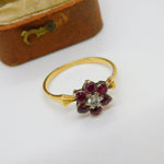 Victorian 18ct Gold, Ruby & 0.1ct Diamond Daisy Flower Ring c1860 Antique