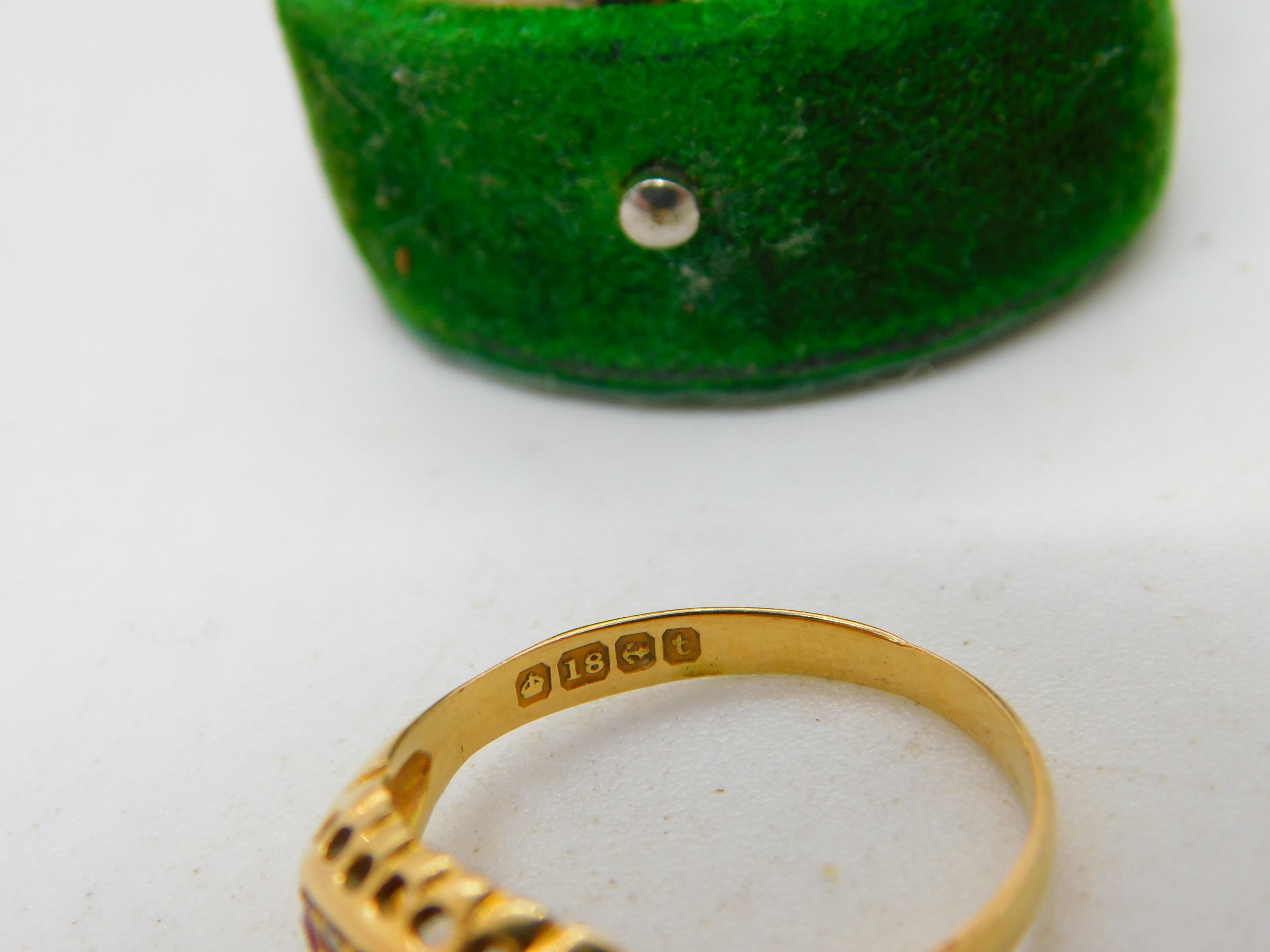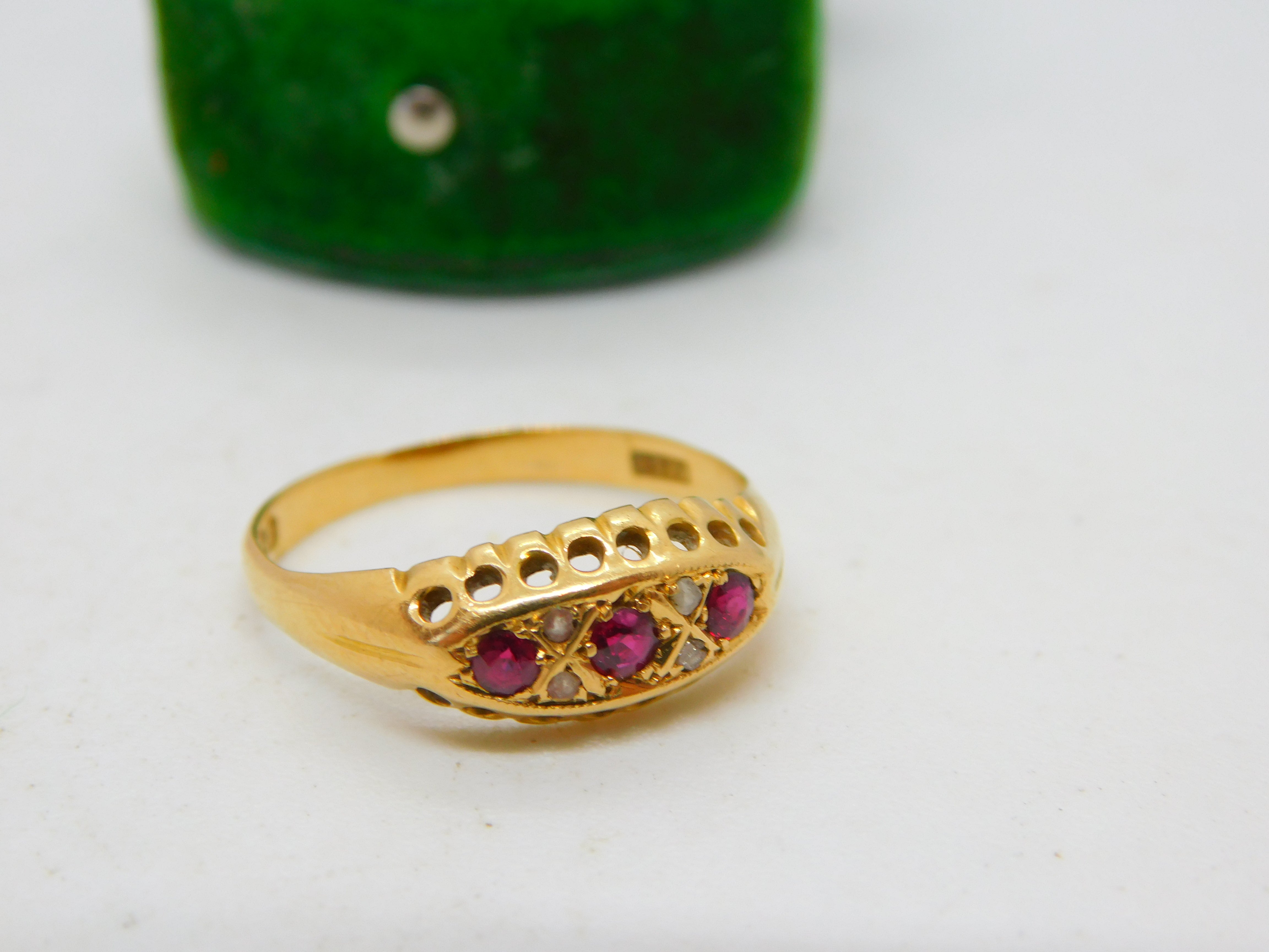 Victorian 18ct Gold, Ruby & Diamond Boat Ring Antique 1893 Birmingham