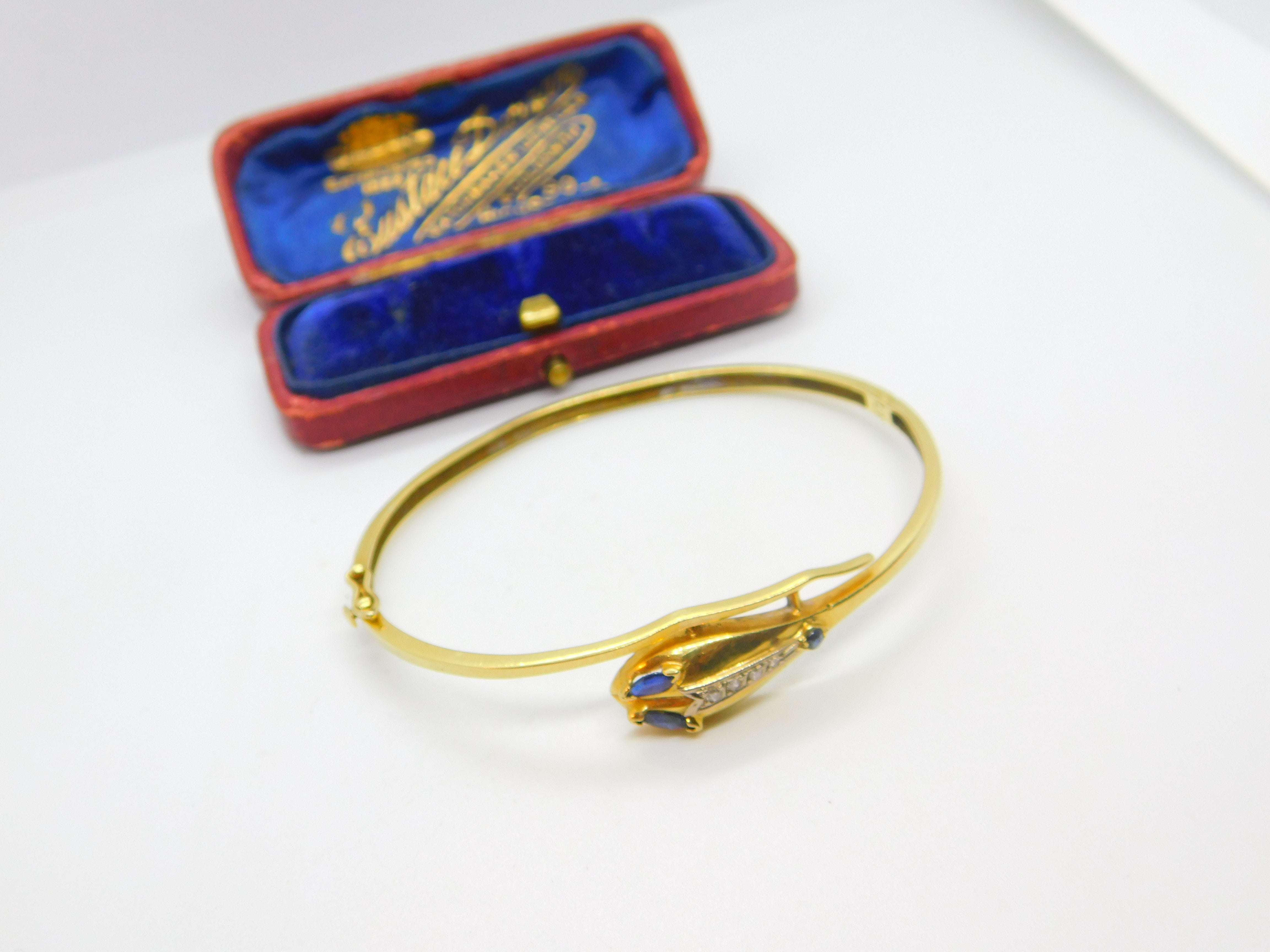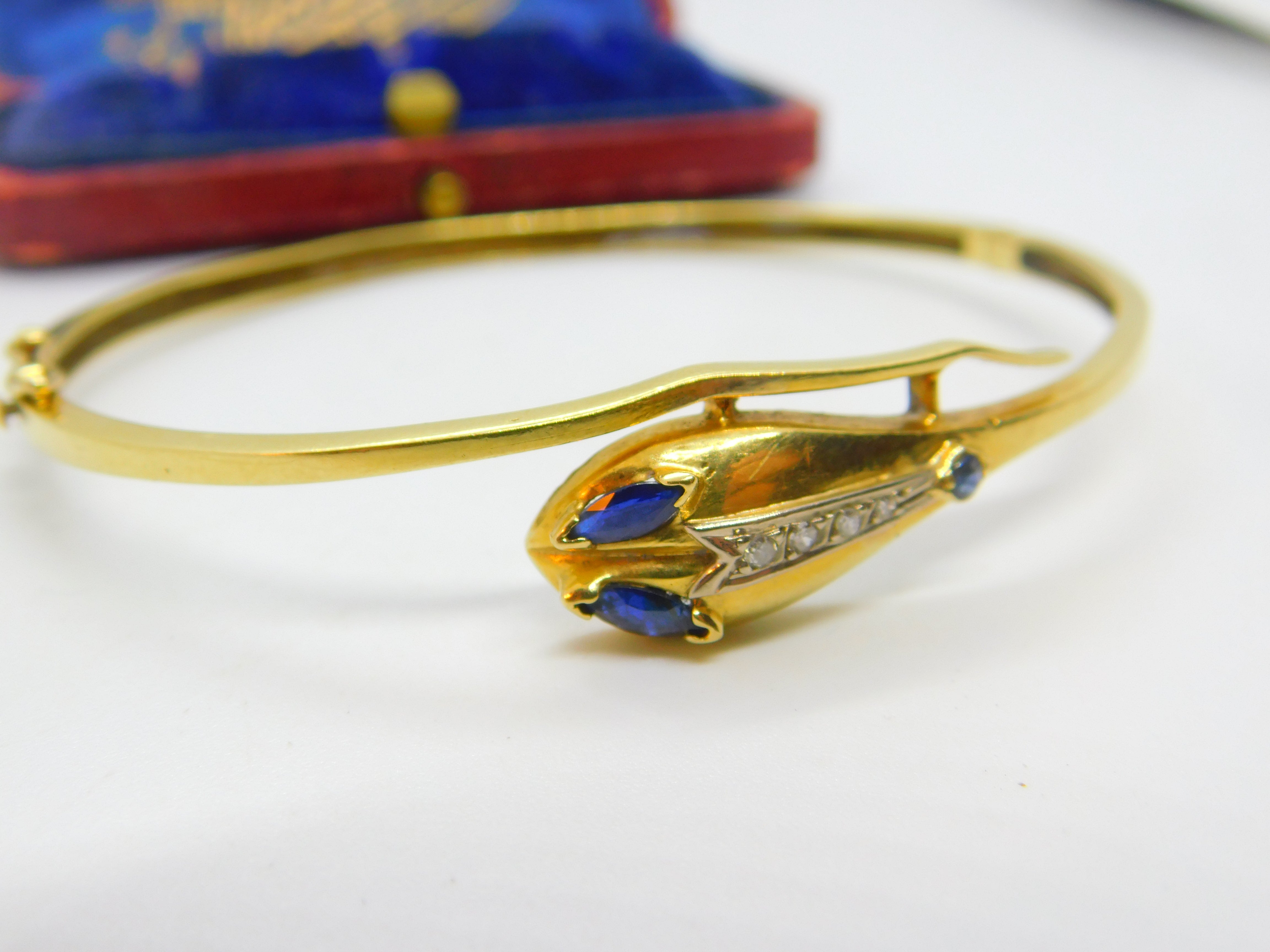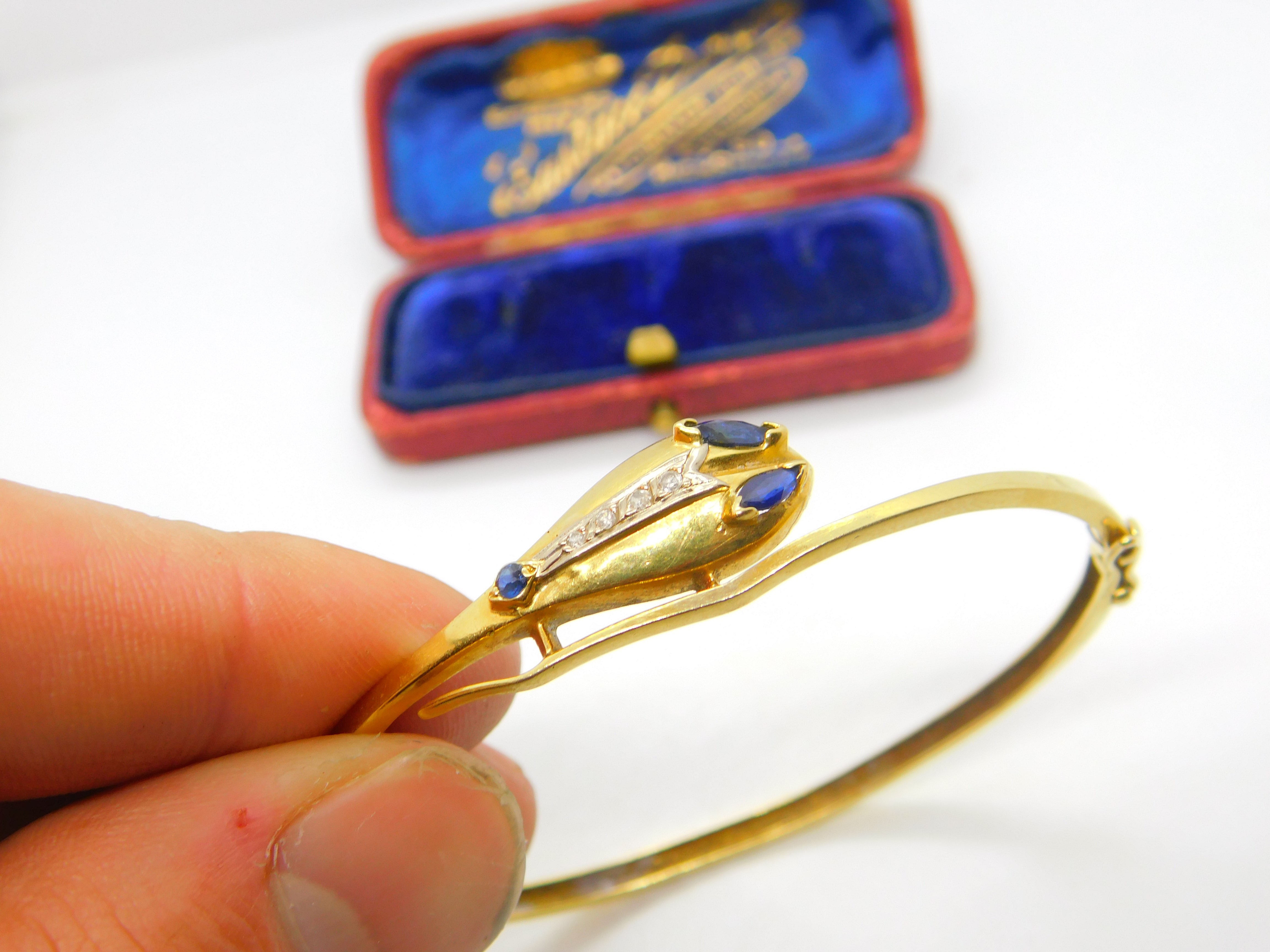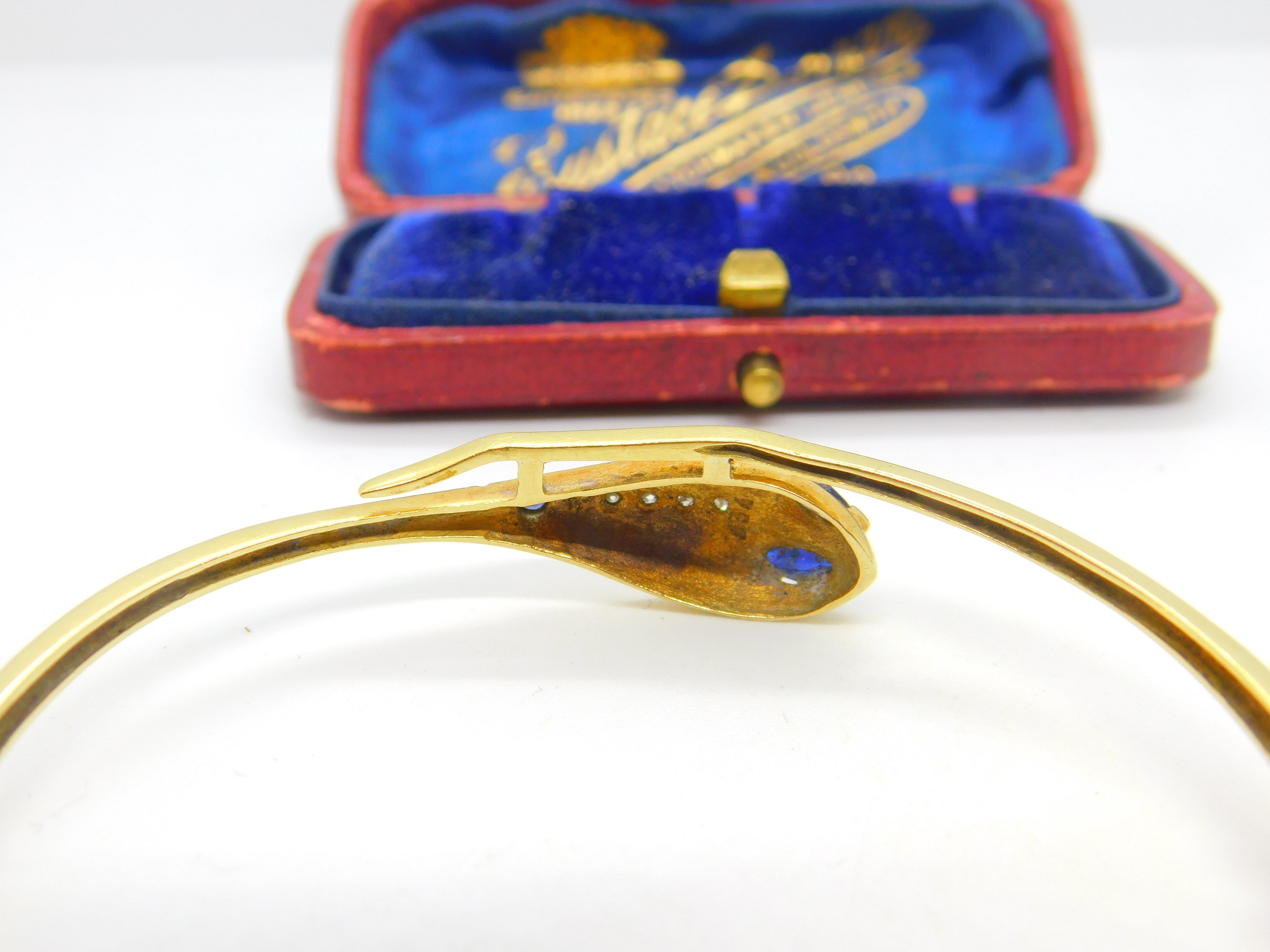 Victorian 18ct Gold, Sapphire & Diamond Serpent Snake Bangle Bracelet c1890