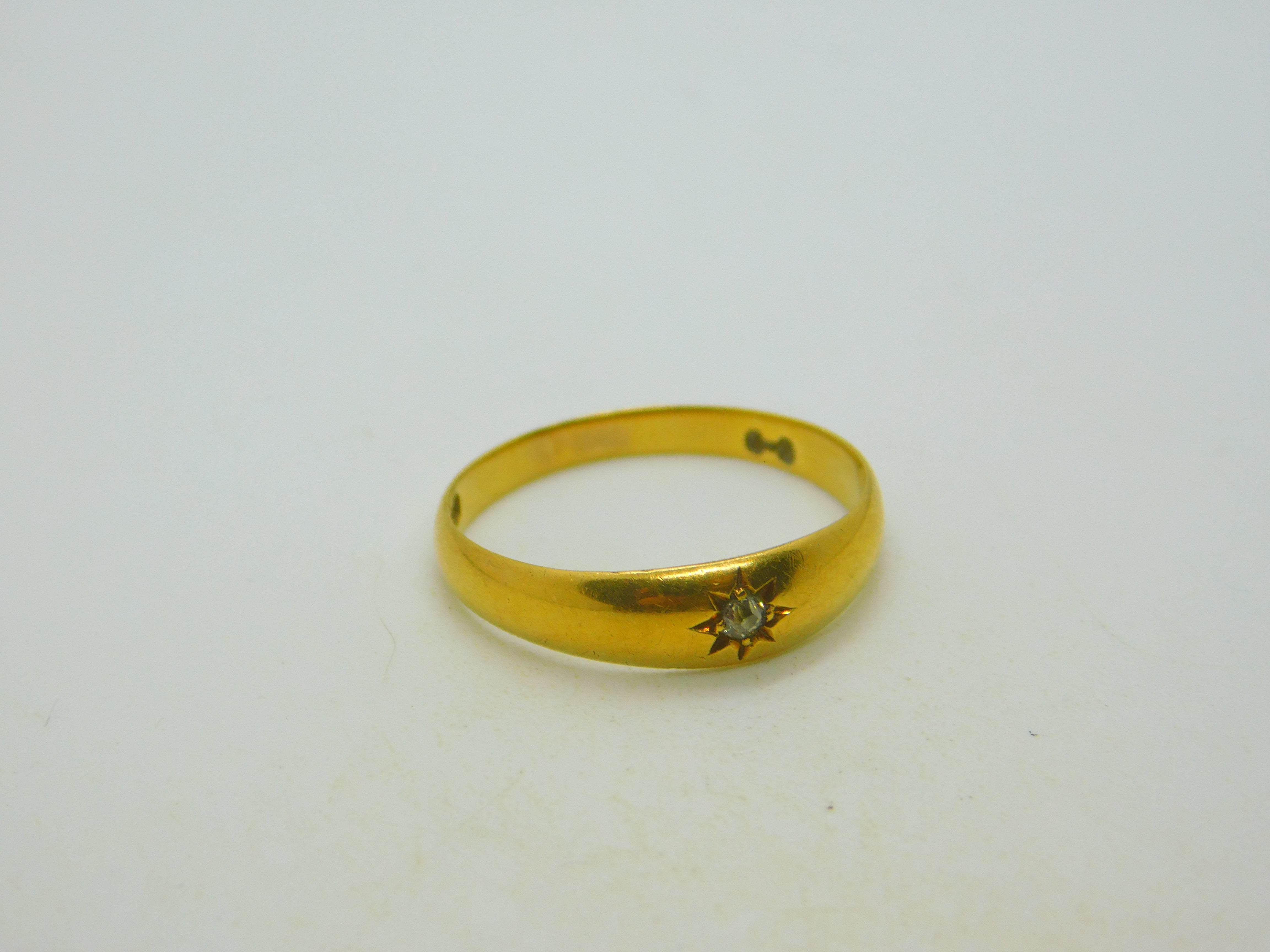 Victorian 18ct Yellow Gold & 0.1ct Diamond Gypsy Ring Antique 1900 London