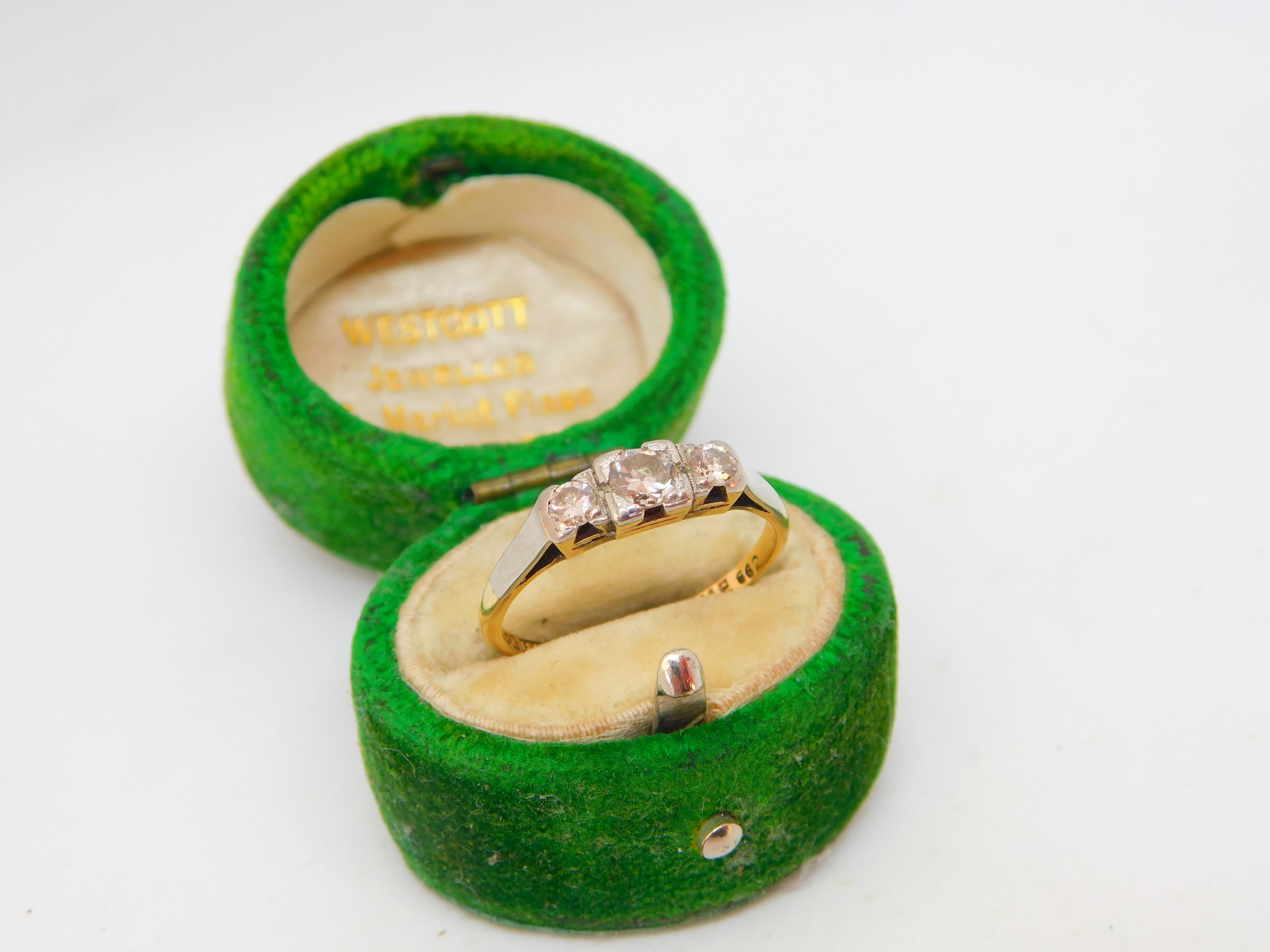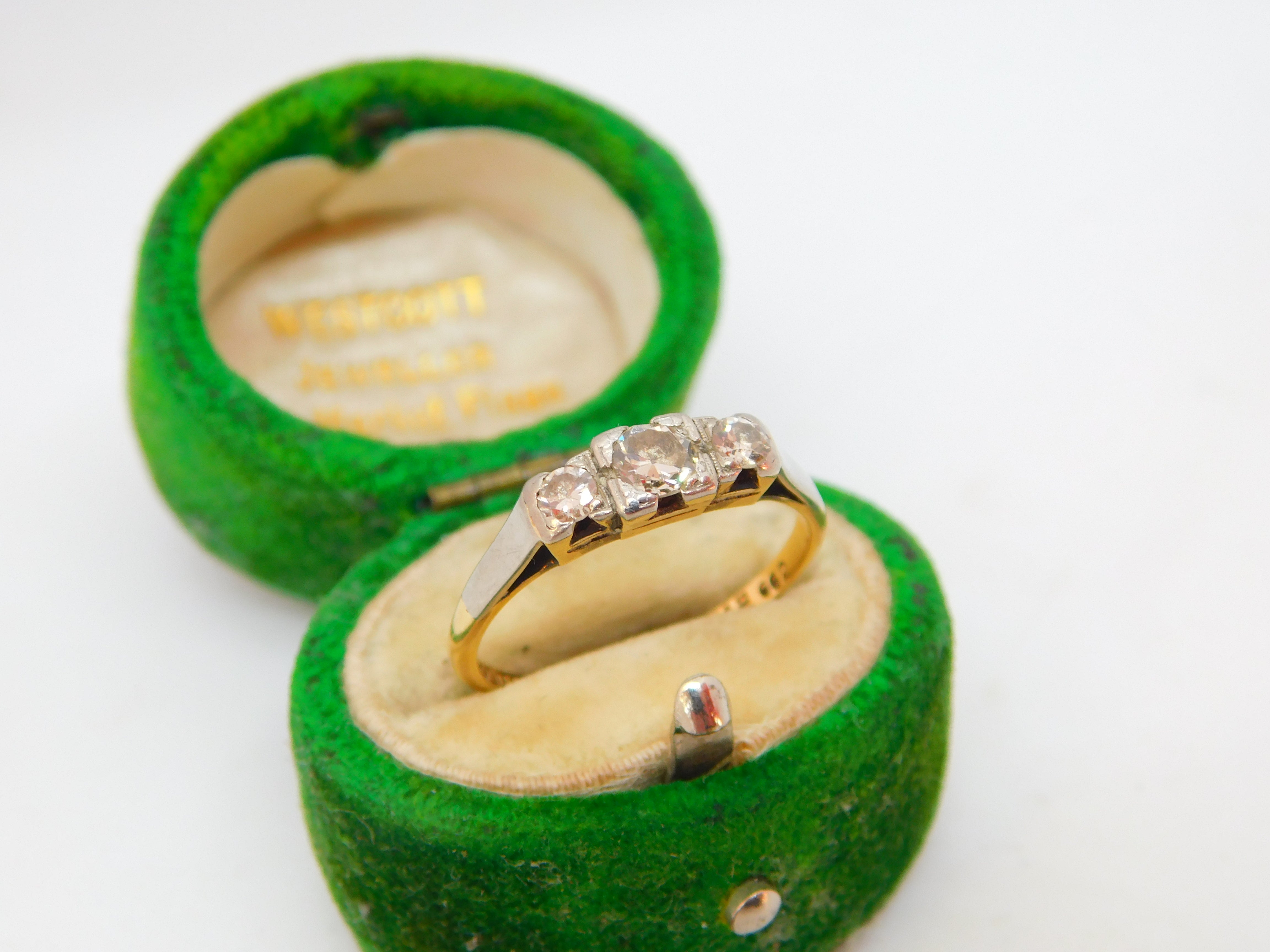 Victorian 18ct Yellow Gold & 0.4ct Three-Stone Dress Ring Antique c1890