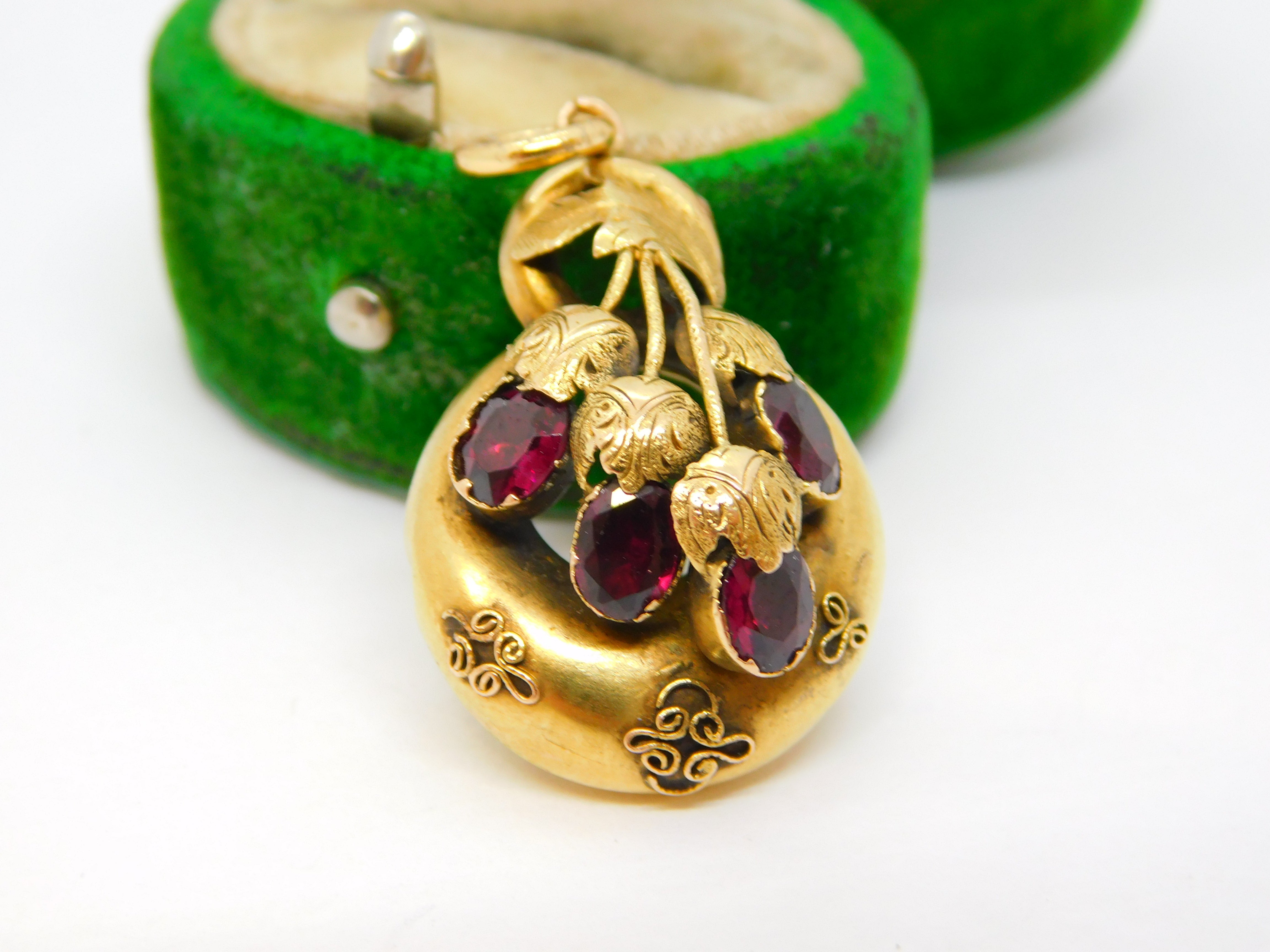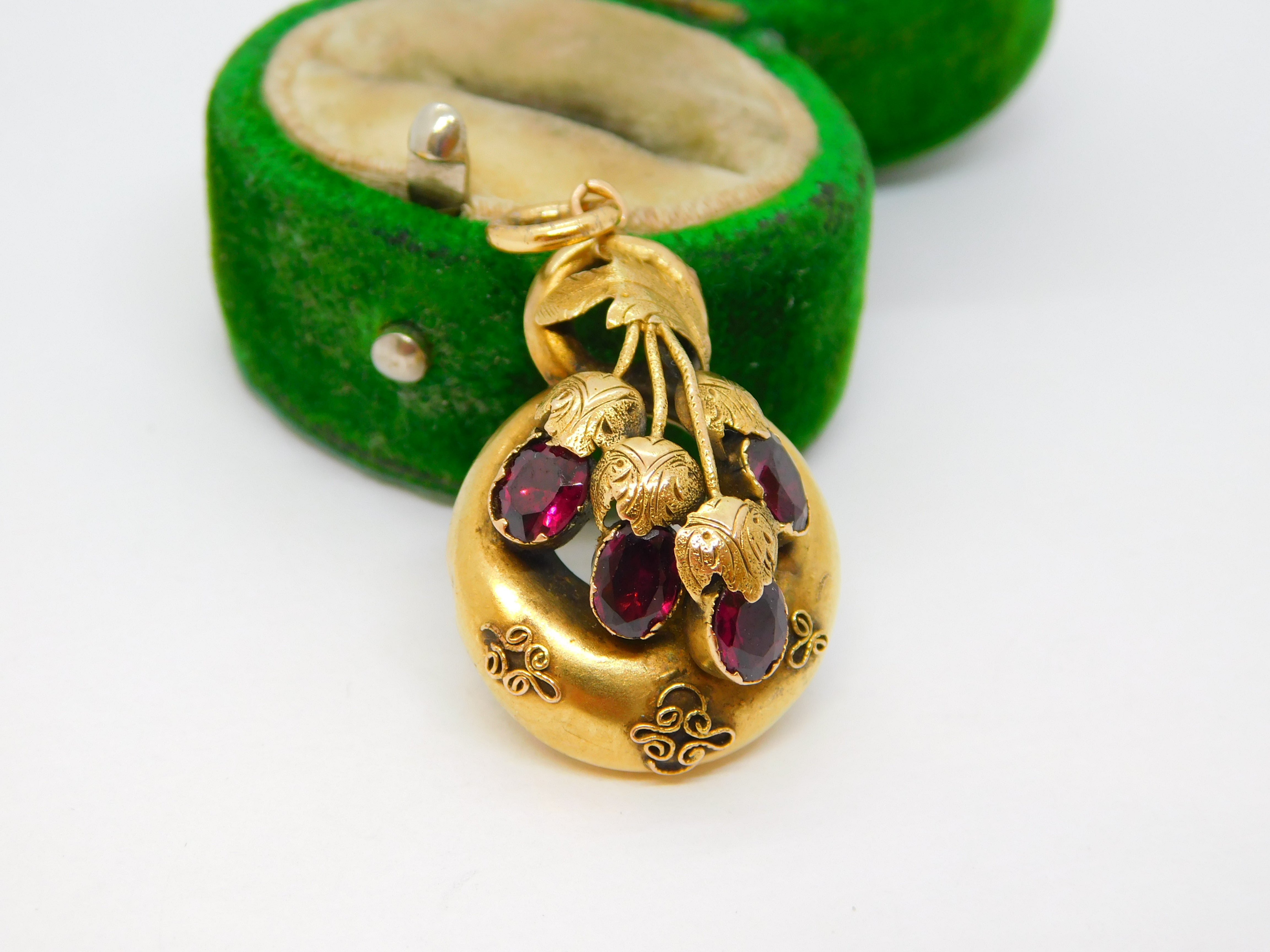 Details: A fantastic and wonderfully designed antique Victorian 18ct yellow gold floral pattern drop pendant set with four almandine garnets c1860, the gold has been XRF tested as it is unmarked. This is a wonderful item that would make a perfect gift or addition to any collection. The BOX pictured is for PRESENTATION ONLY and is NOT included in the listings but used to frame the pictures unless specifically stated otherwise.
