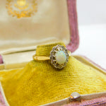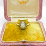 Victorian 18ct Yellow Gold, Cabochon Opal & Diamond Floral Cluster Ring c1890
