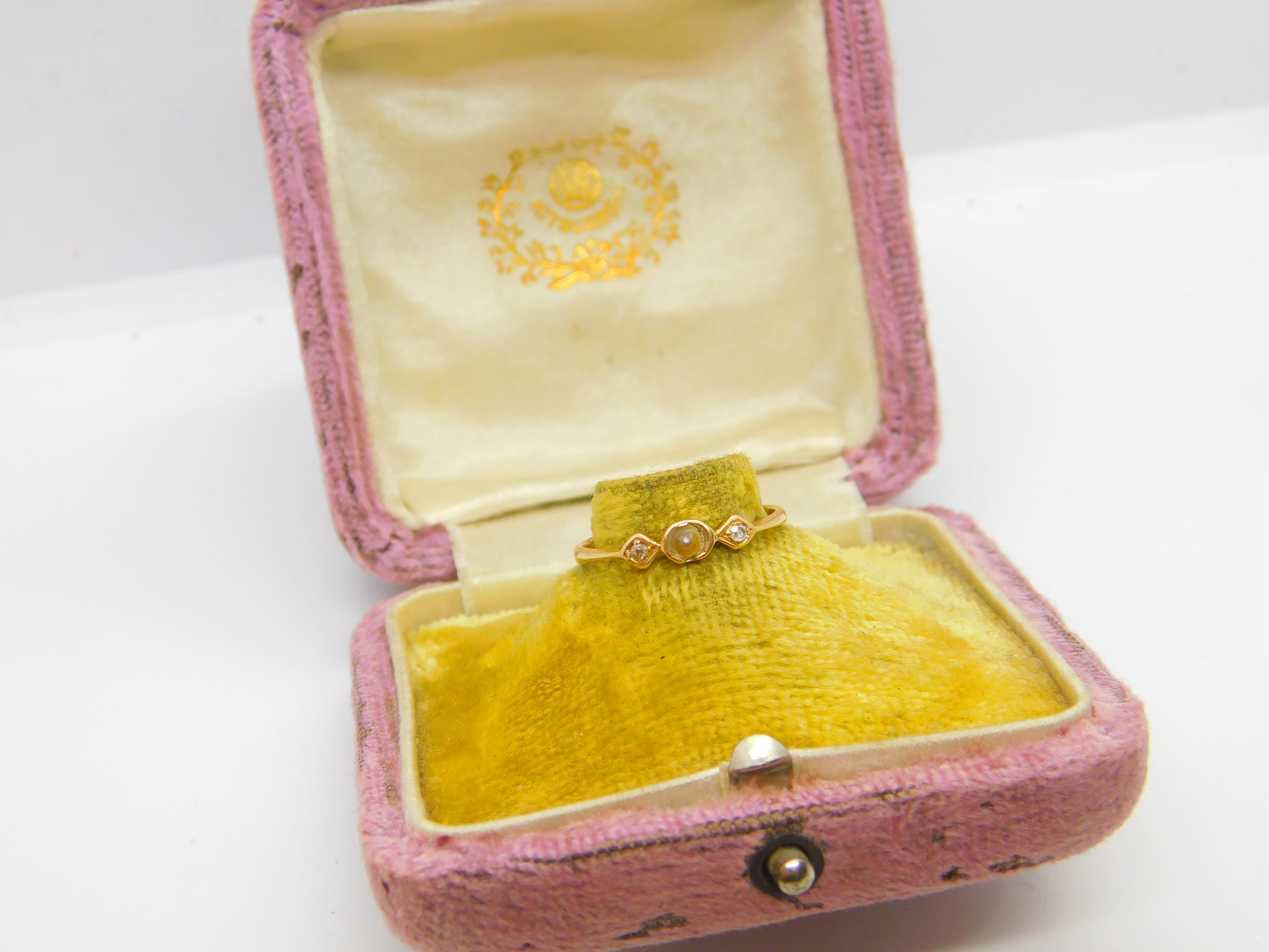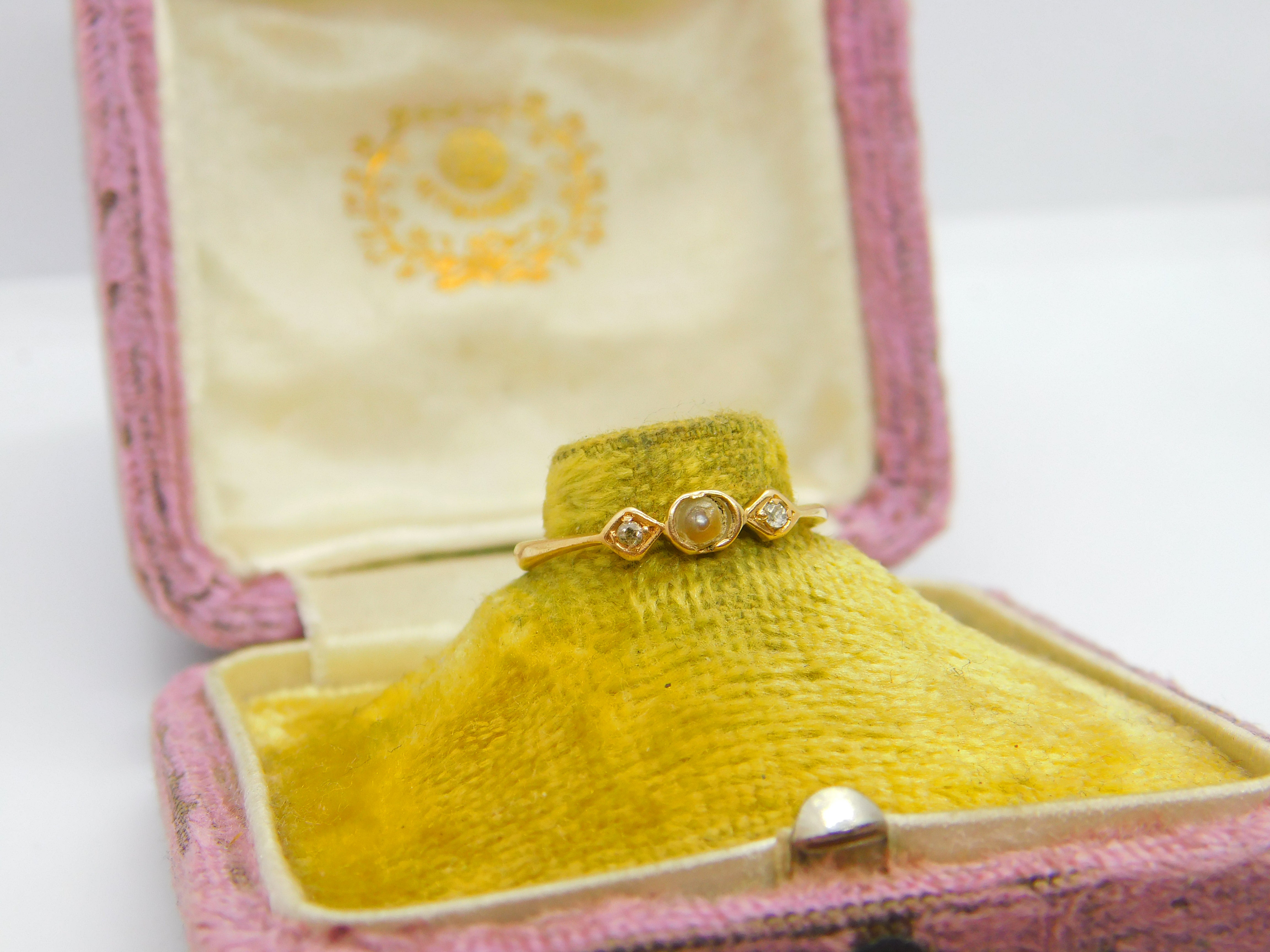 Details: A fantastic and wonderfully designed antique Victorian 18ct yellow gold small diamond & pearl set mourning ring with faint engraved name to the reverse c1880. The gold has been XRF tested. This is a wonderful item that would make a perfect gift or addition to any collection. The BOX pictured is for PRESENTATION ONLY and is NOT included in the listings but used to frame the pictures unless specifically stated otherwise.