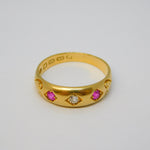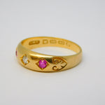 Victorian 18ct Yellow Gold, Diamond & Ruby Boat Ring Antique 1892 Birmingham