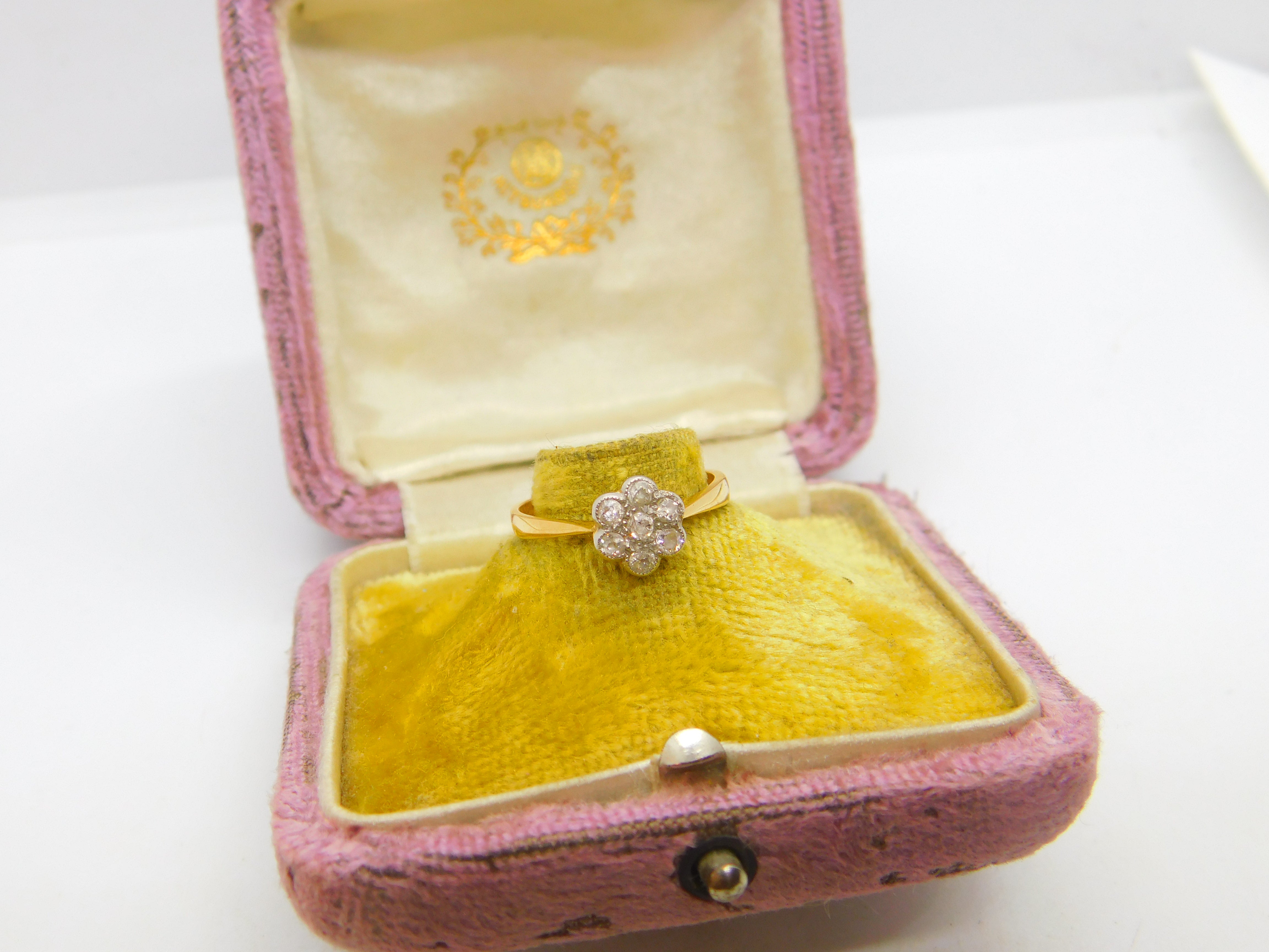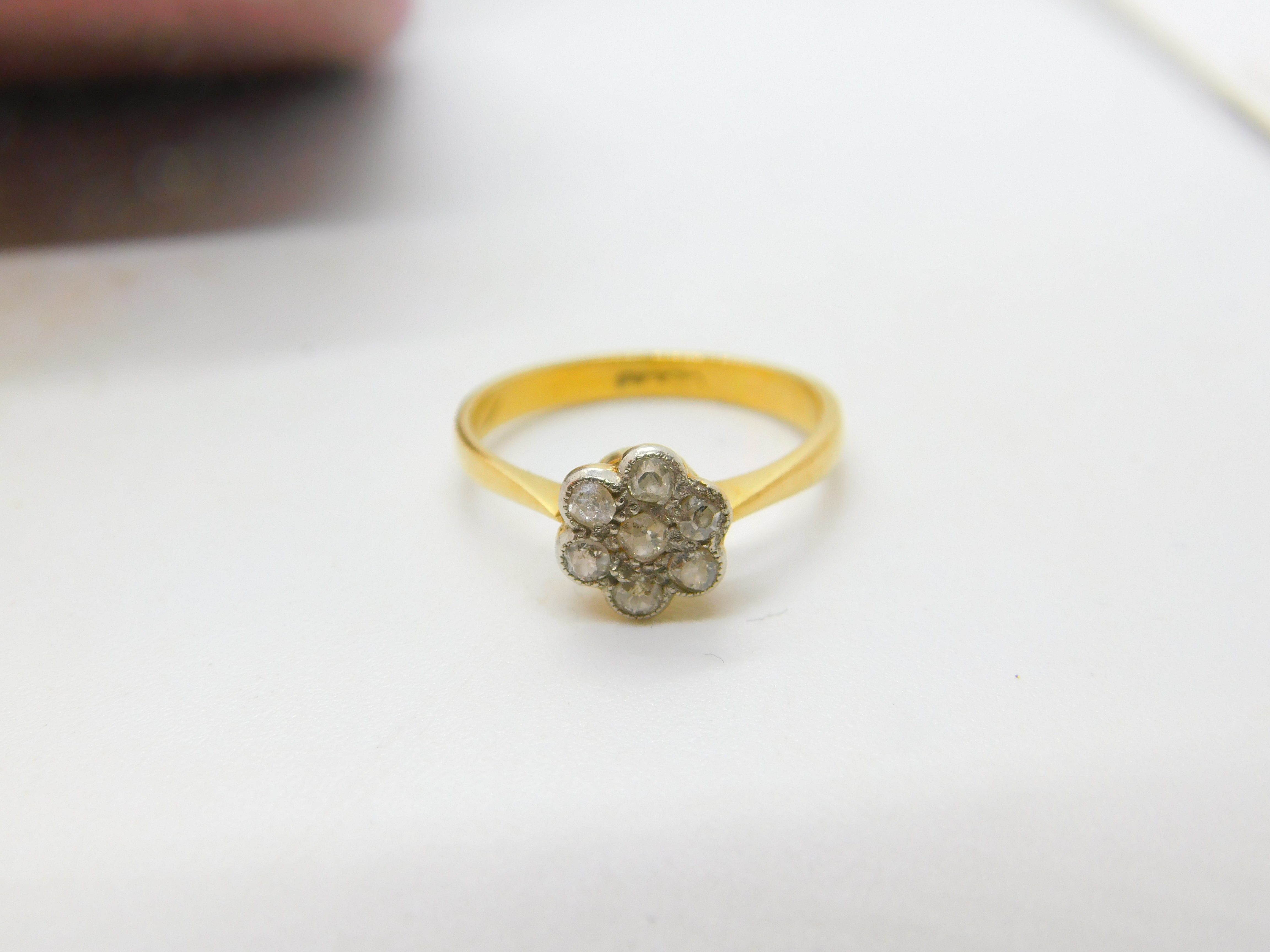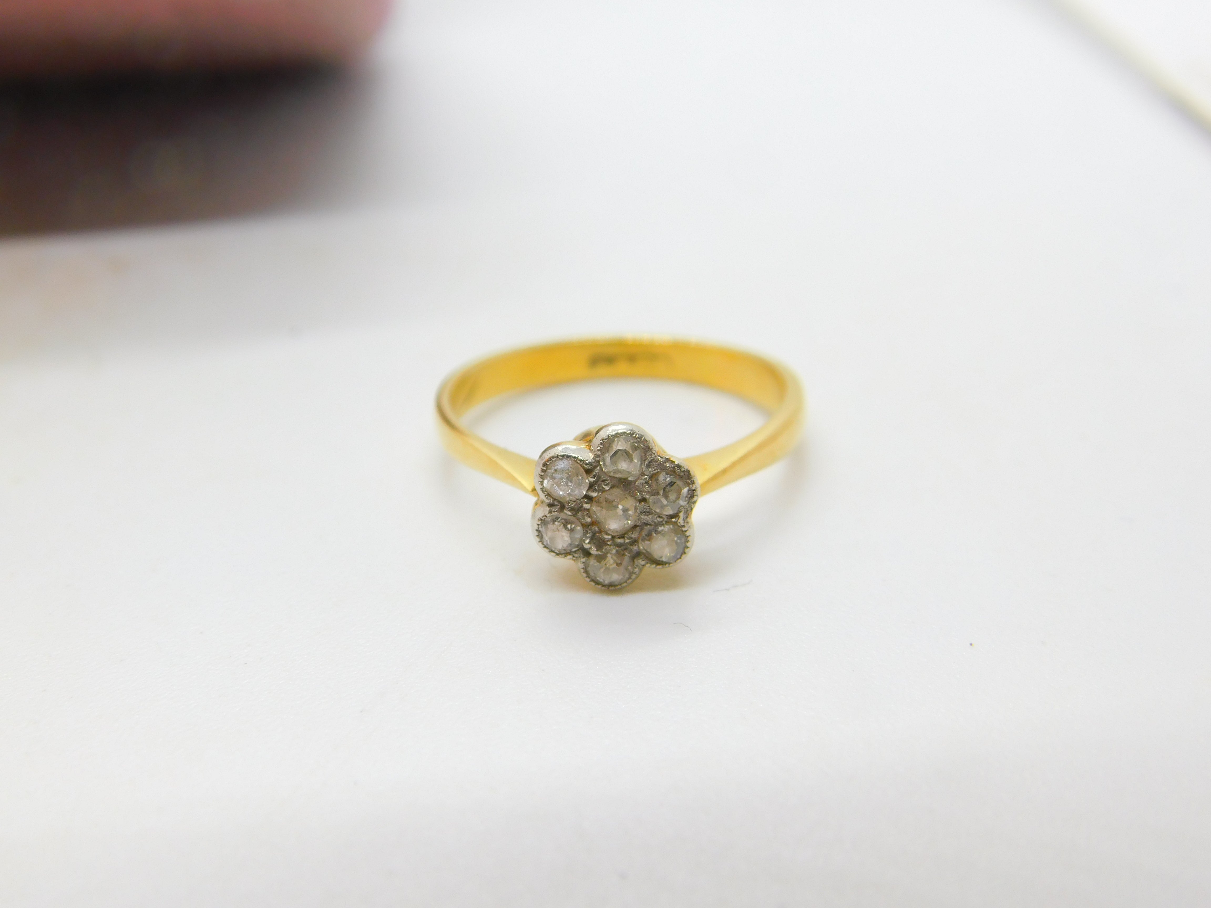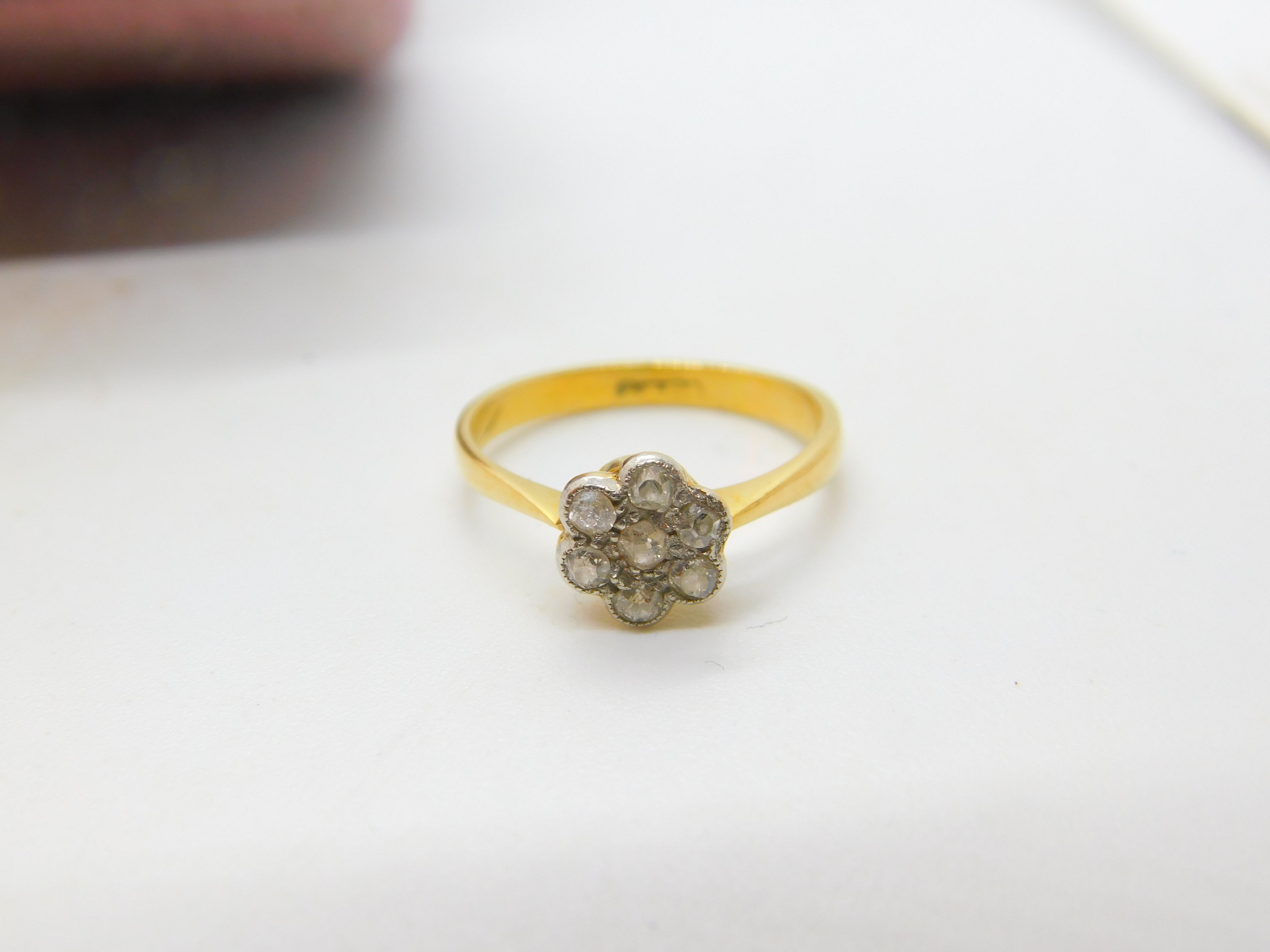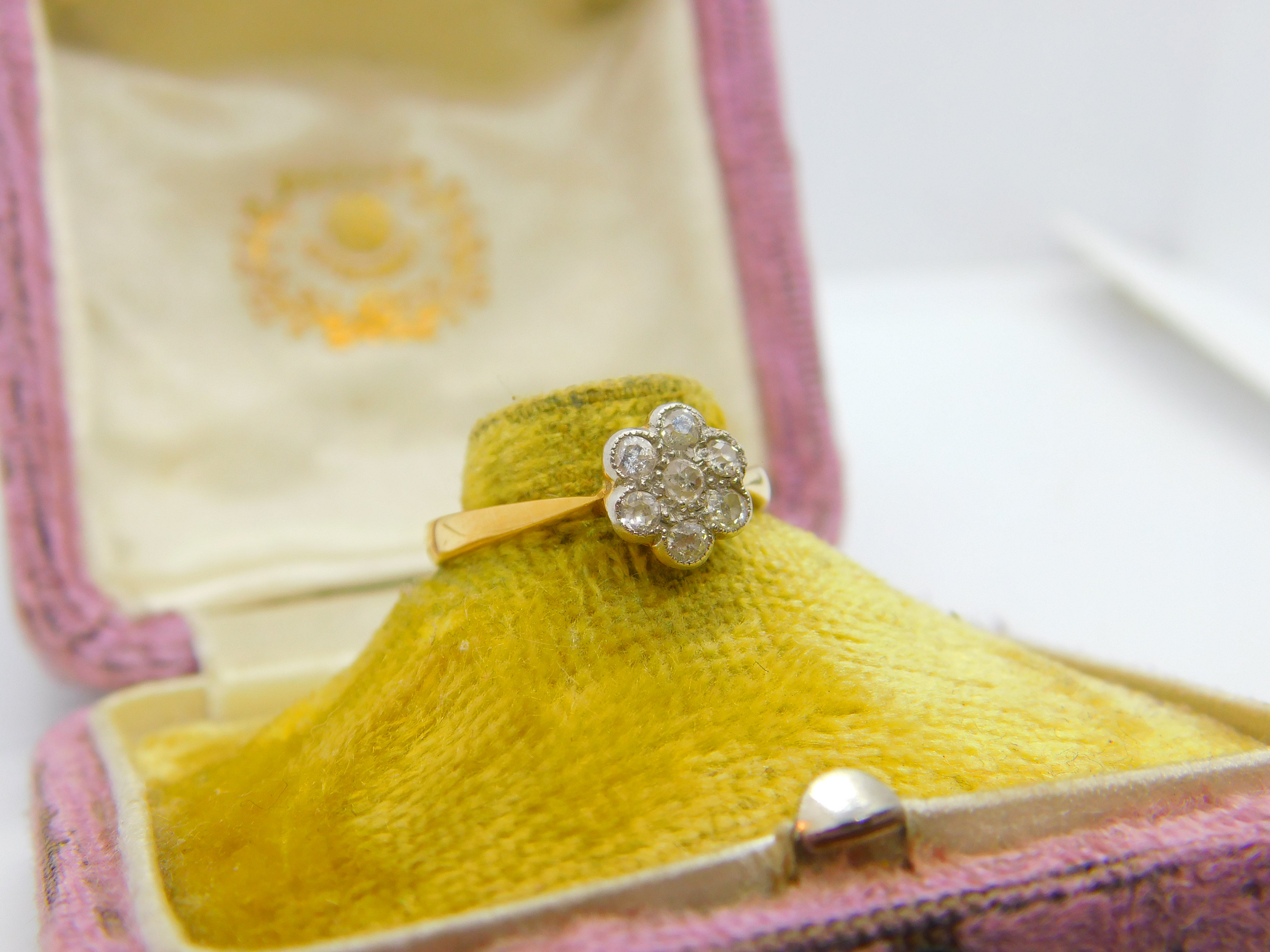 Details: A fantastic and wonderfully designed antique Victorian 18ct yellow gold daisy flower floral cluster ring set with diamonds hallmarked to the interior band c1880, the diamonds have been tested. This is a wonderful item that would make a perfect gift or addition to any collection. The BOX pictured is for PRESENTATION ONLY and is NOT included in the listings but used to frame the pictures unless specifically stated otherwise.