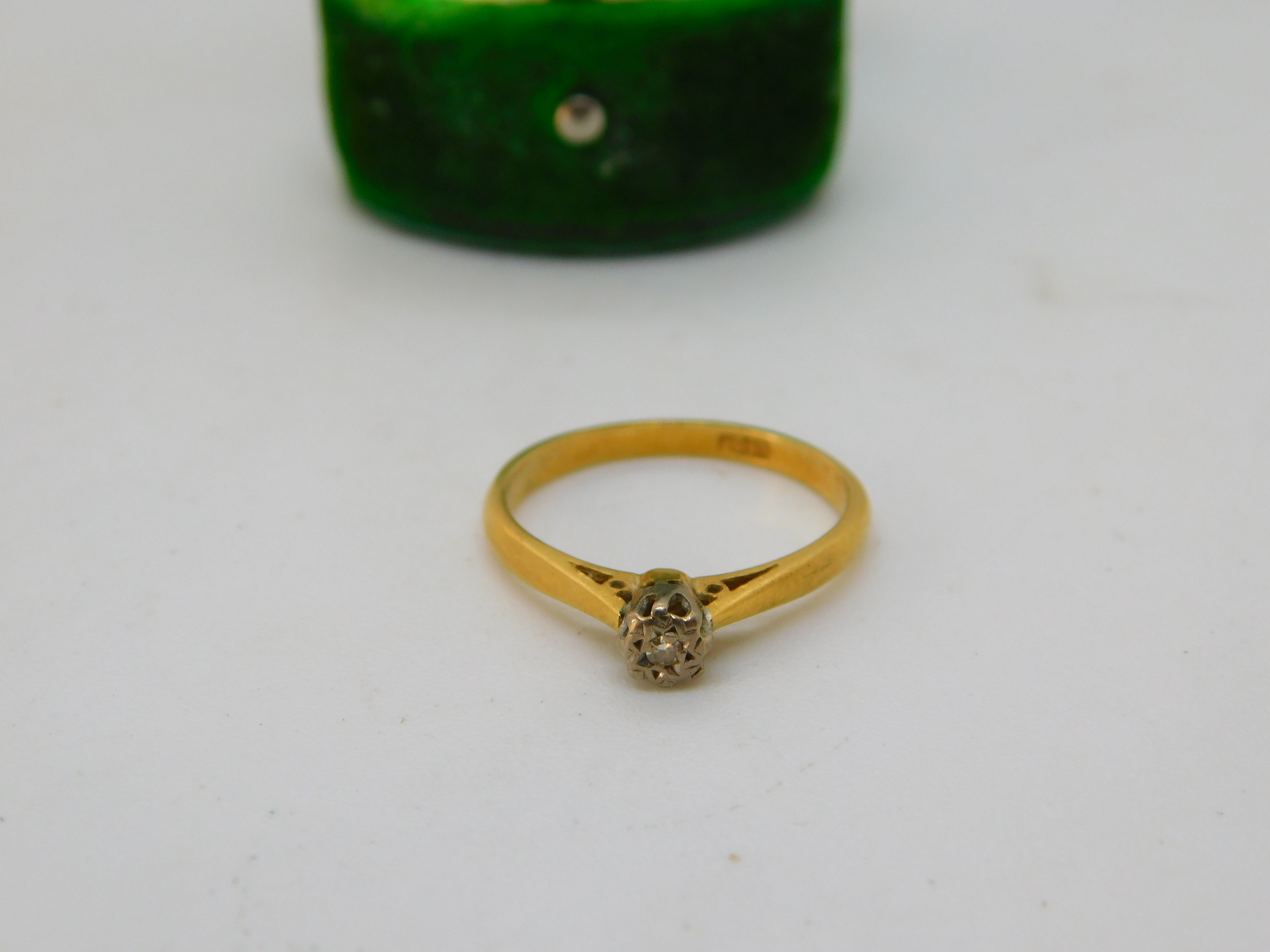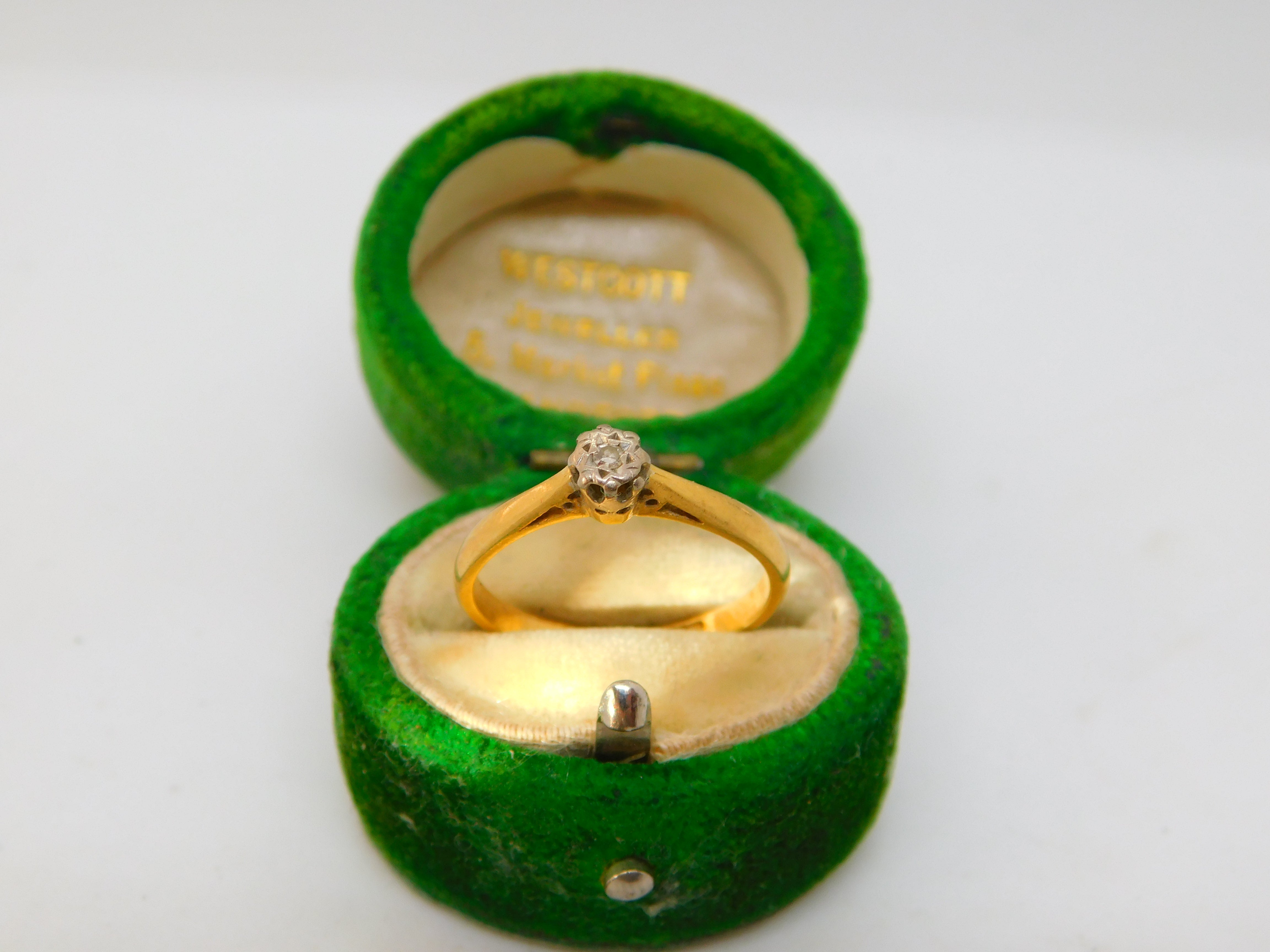Victorian 18ct Yellow Gold Diamond Set Solitaire Ring Antique c1880