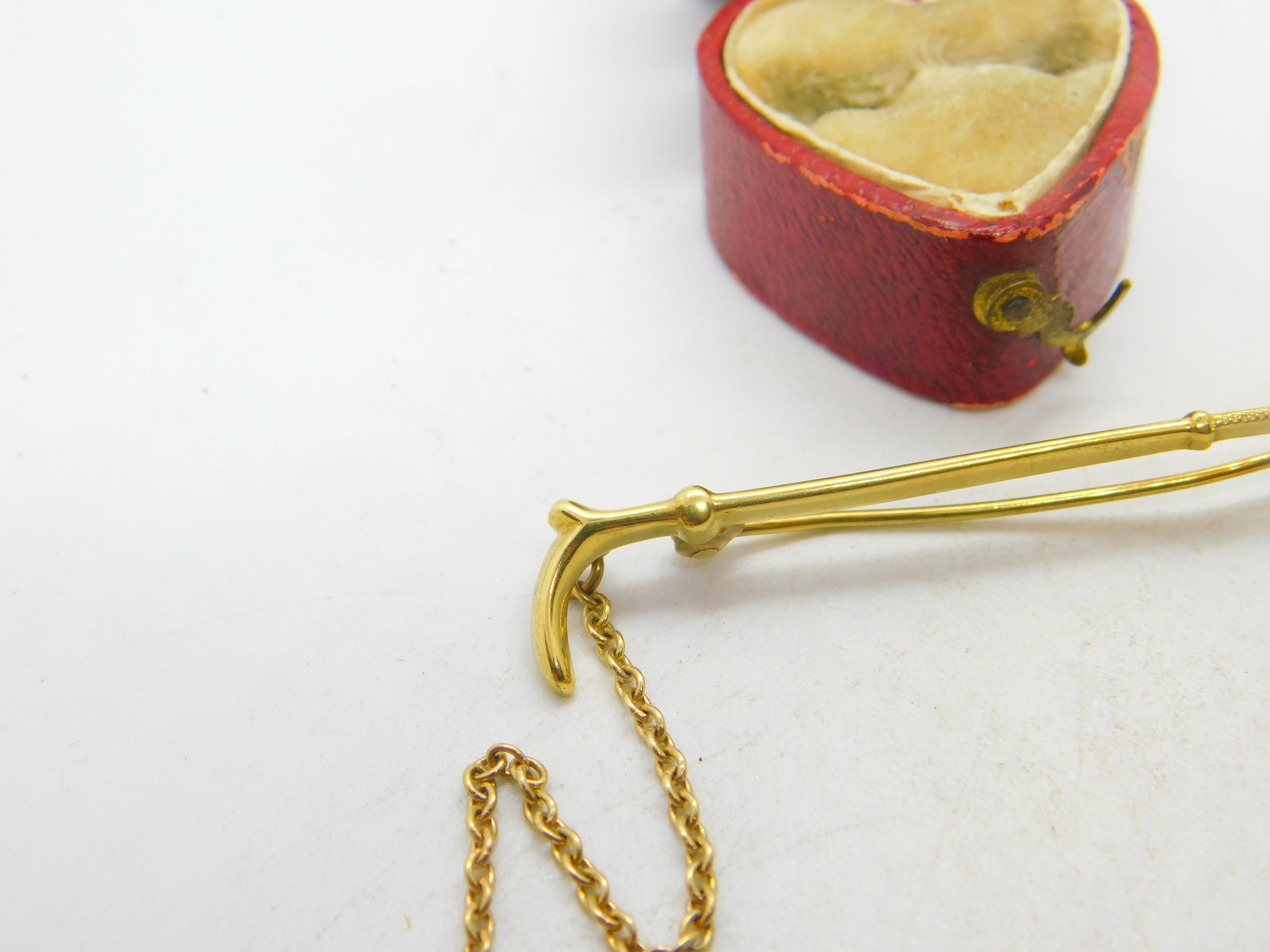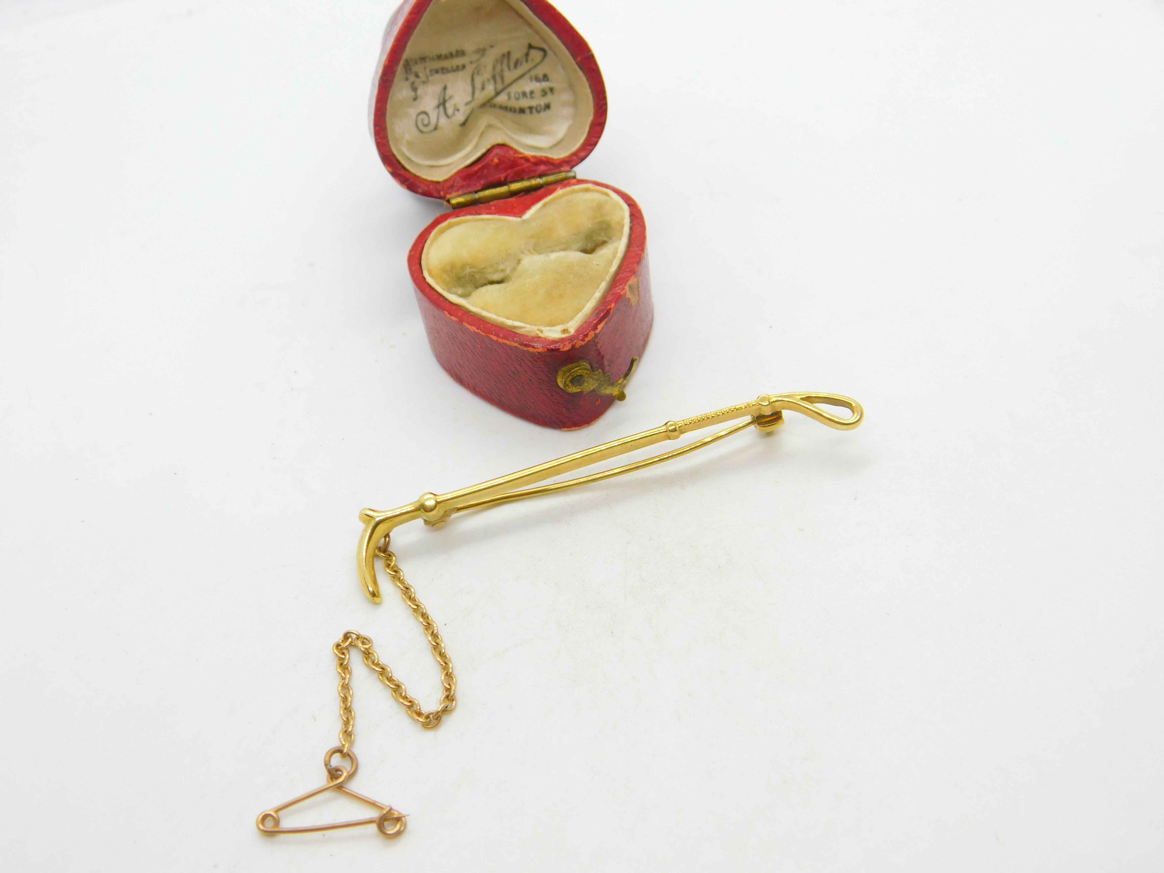Victorian 18ct Yellow Gold Hunting Crop Stock Pin or Brooch Antique c1900