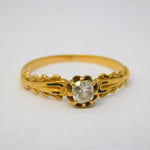 Victorian 18ct Yellow Gold Old-Cut 0.2ct Diamond Mourning Ring Antique c1840