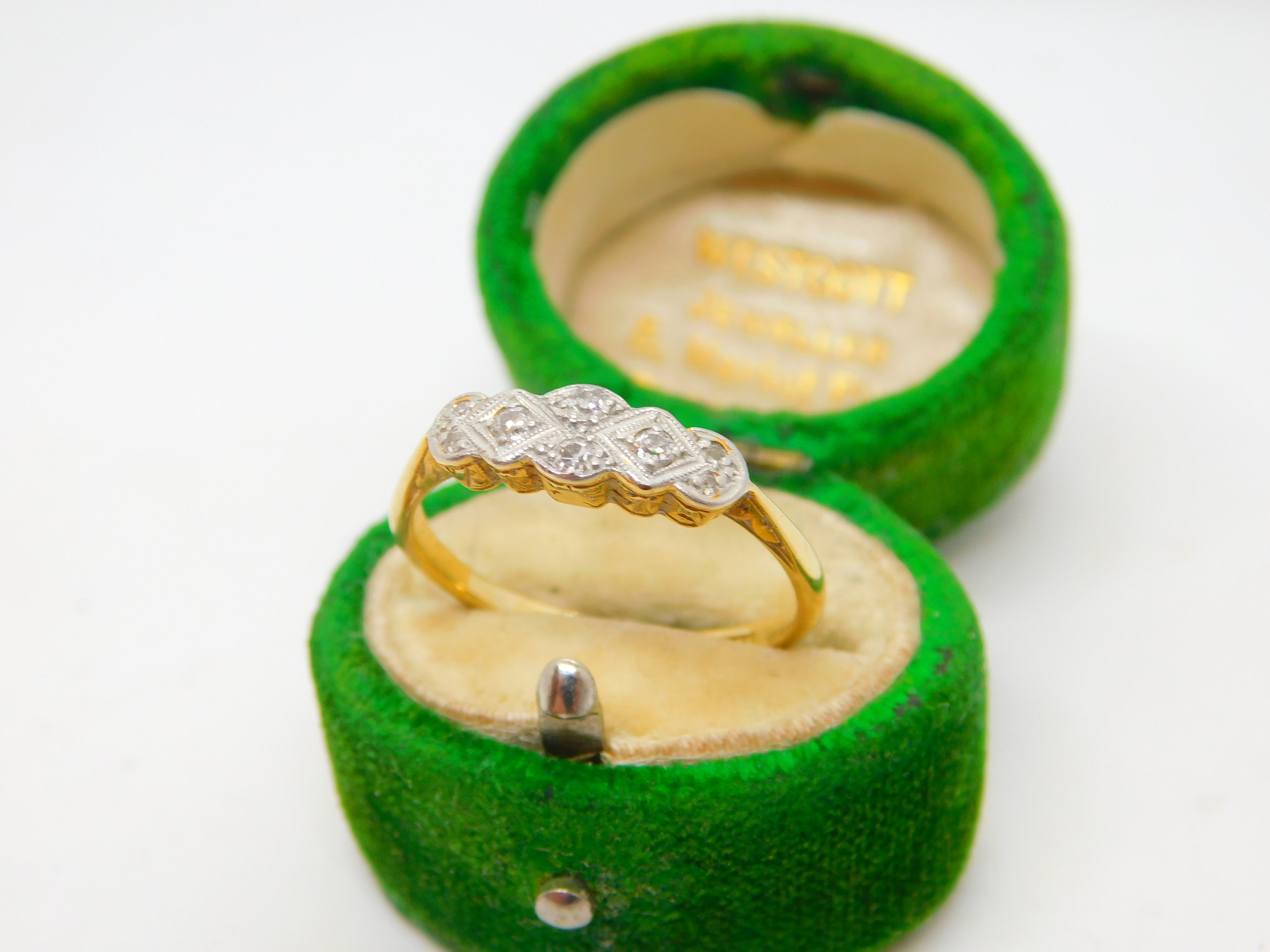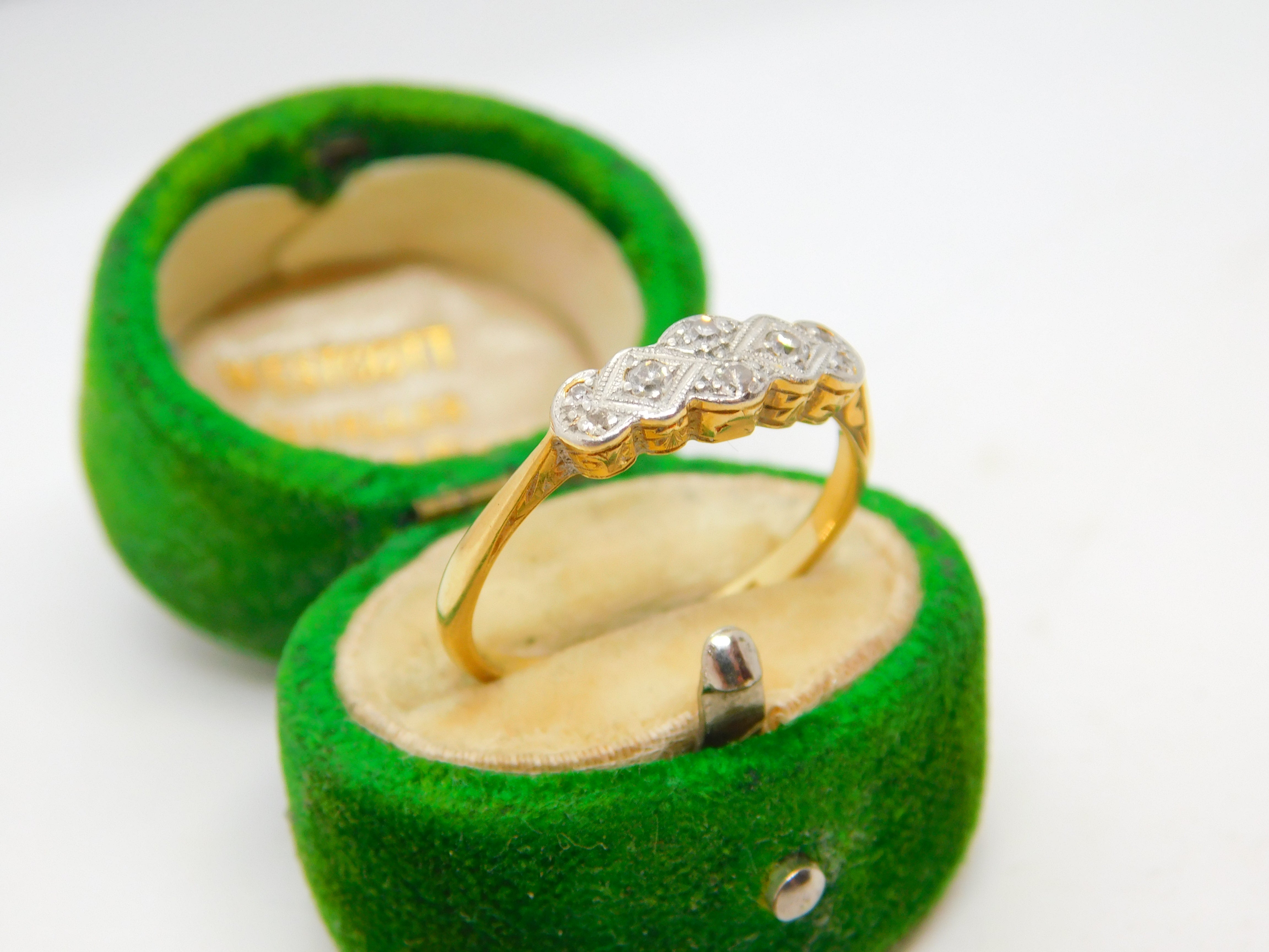 Details: A fantastic and wonderfully designed antique Victorian 18ct yellow gold dress ring platinum set with old cut diamonds hallmarked to the interior band c1890, the diamonds have all been tested. This is a wonderful item that would make a perfect gift or addition to any collection. The BOX pictured is for PRESENTATION ONLY and is NOT included in the listings but used to frame the pictures unless specifically stated otherwise.