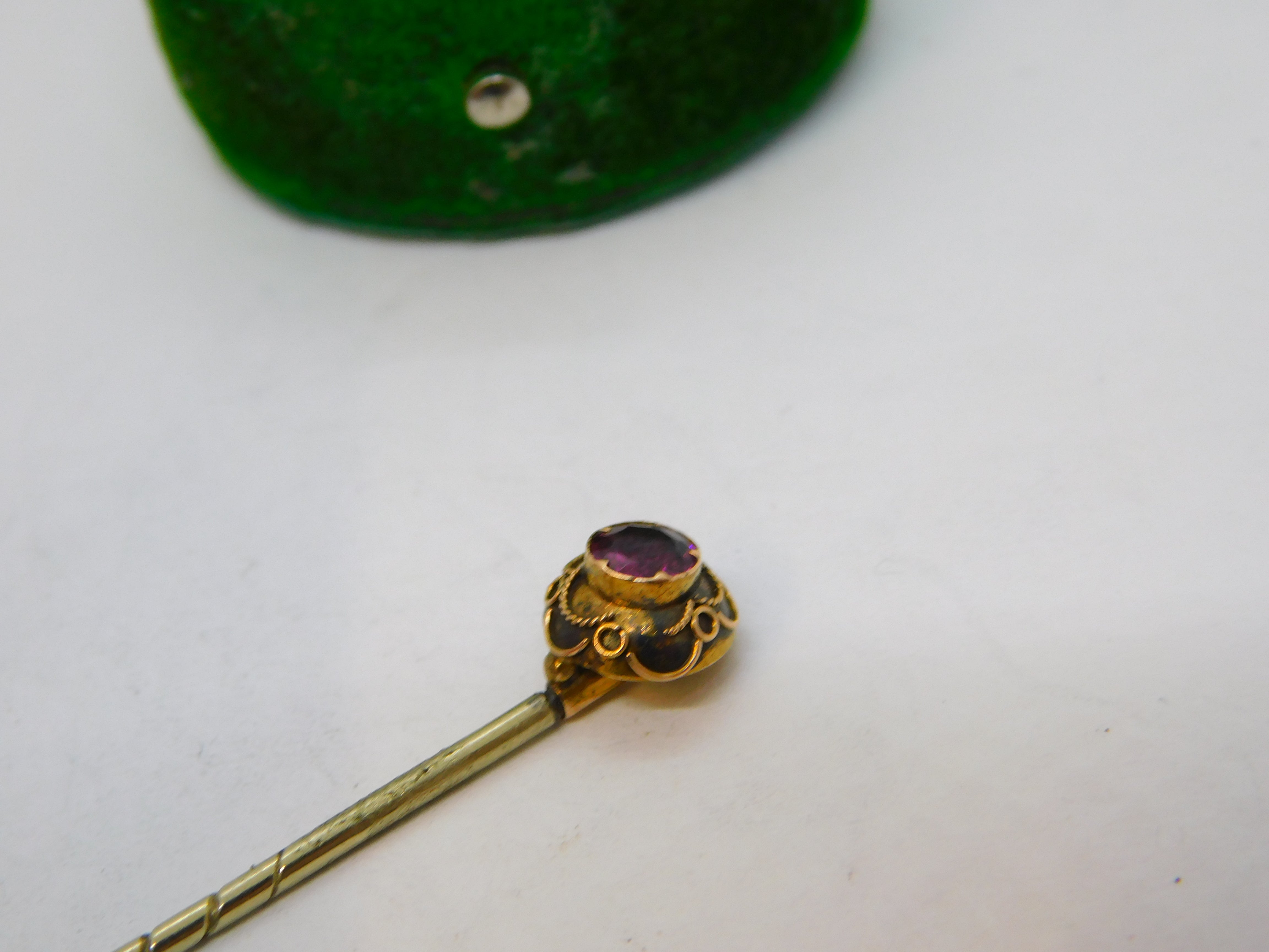 Victorian 18ct Yellow Gold & Pink Topaz Set Stick Pin Antique c1860