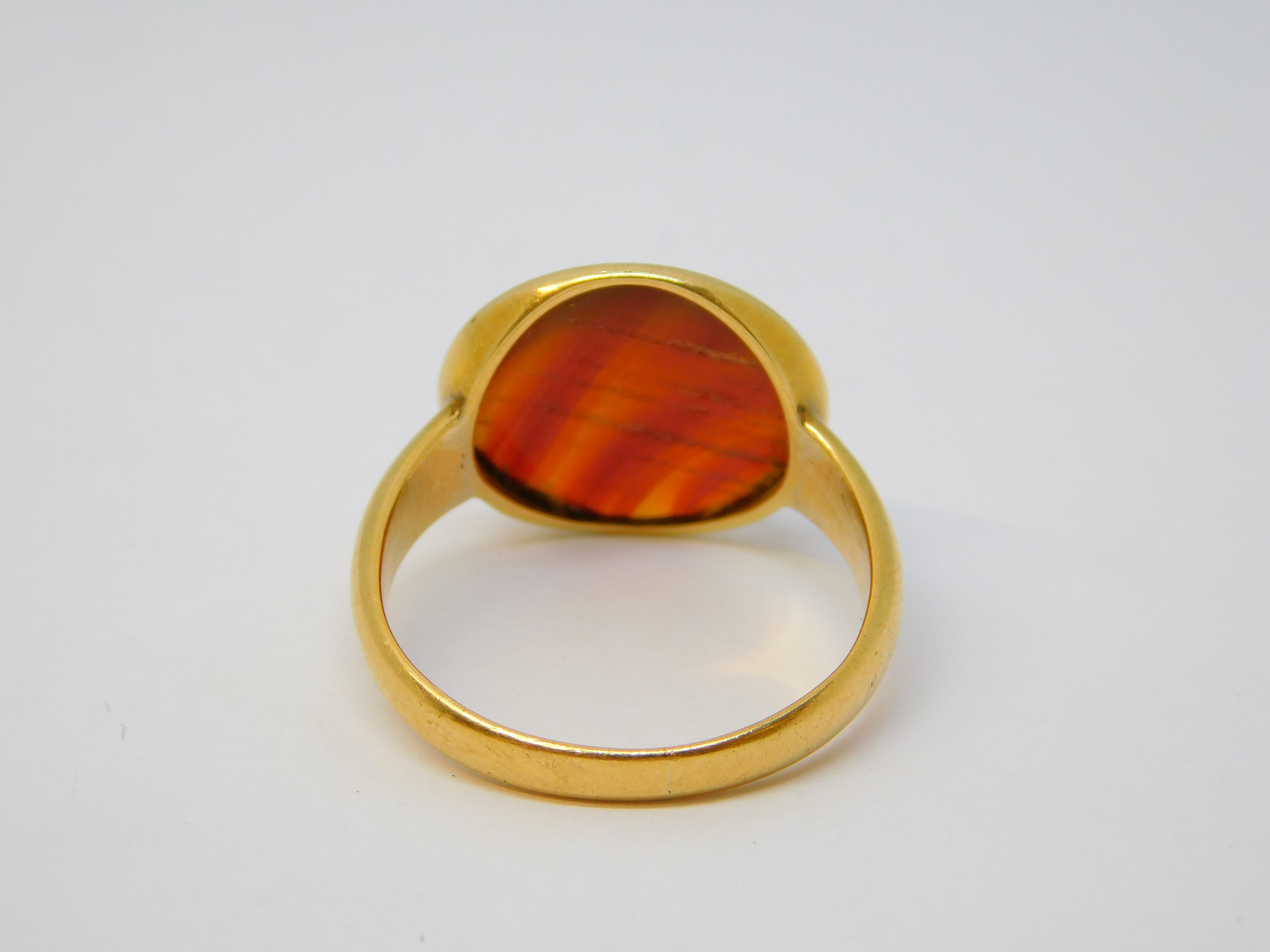 Victorian 18ct Yellow Gold Red Carnelian Agate Set Signet Ring Antique c1860