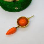 Victorian 18ct Yellow Gold Red Coral Torpedo Drop Pendant Antique c1860
