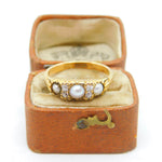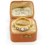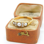 Victorian 18ct Yellow Gold, Rose Cut Diamond & Pearl Boat Ring Antique c1890