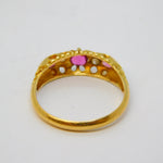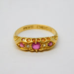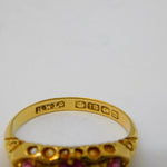 Victorian 18ct Yellow Gold, Ruby & Diamond Boat Ring Antique 1886 Birmingham