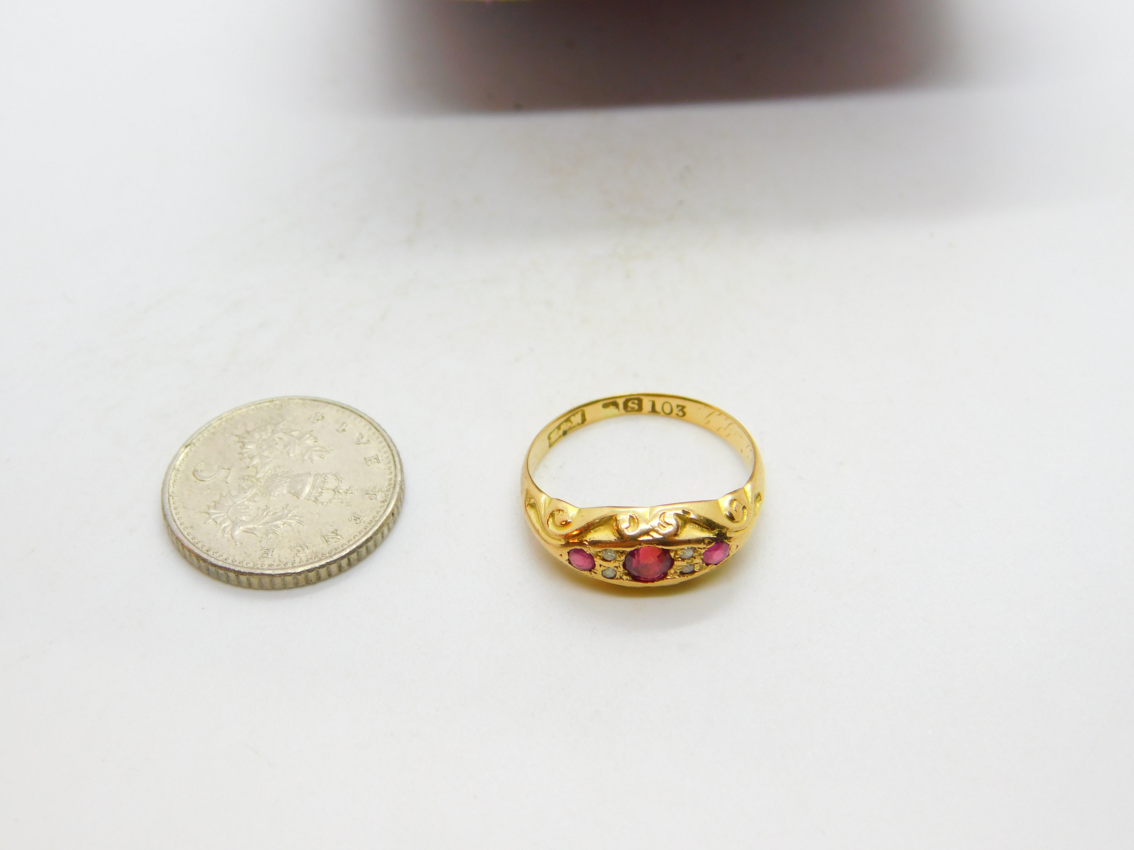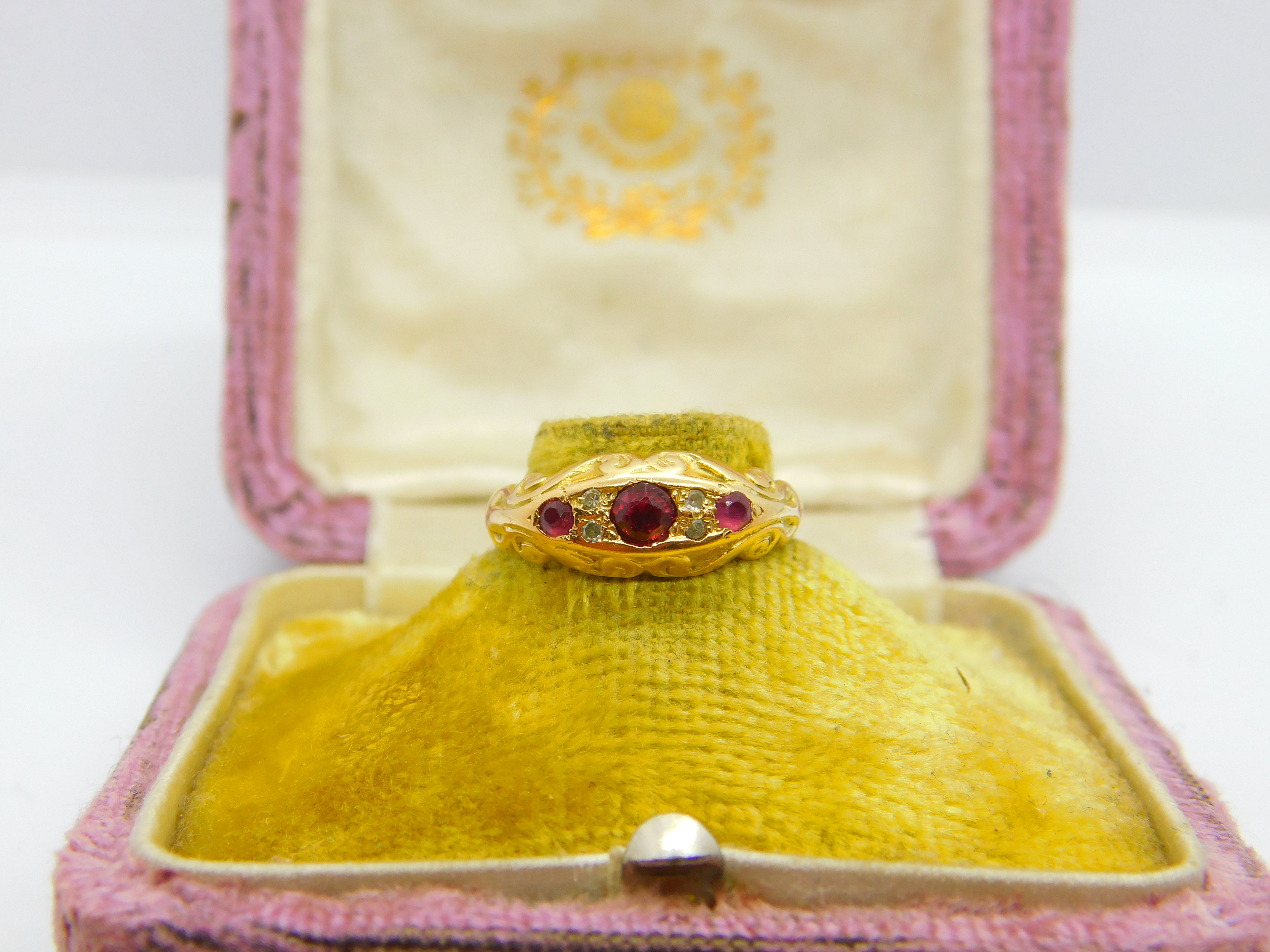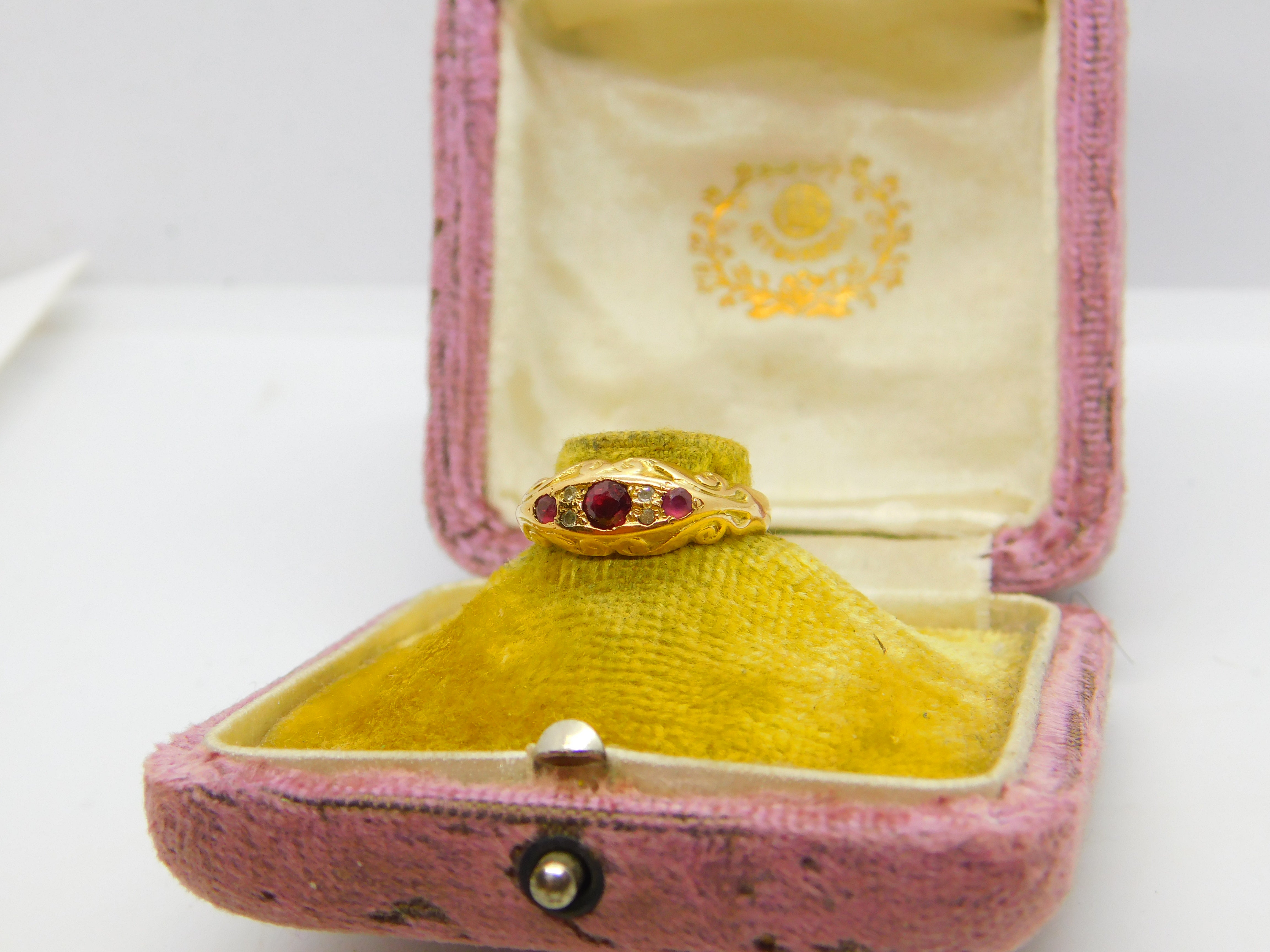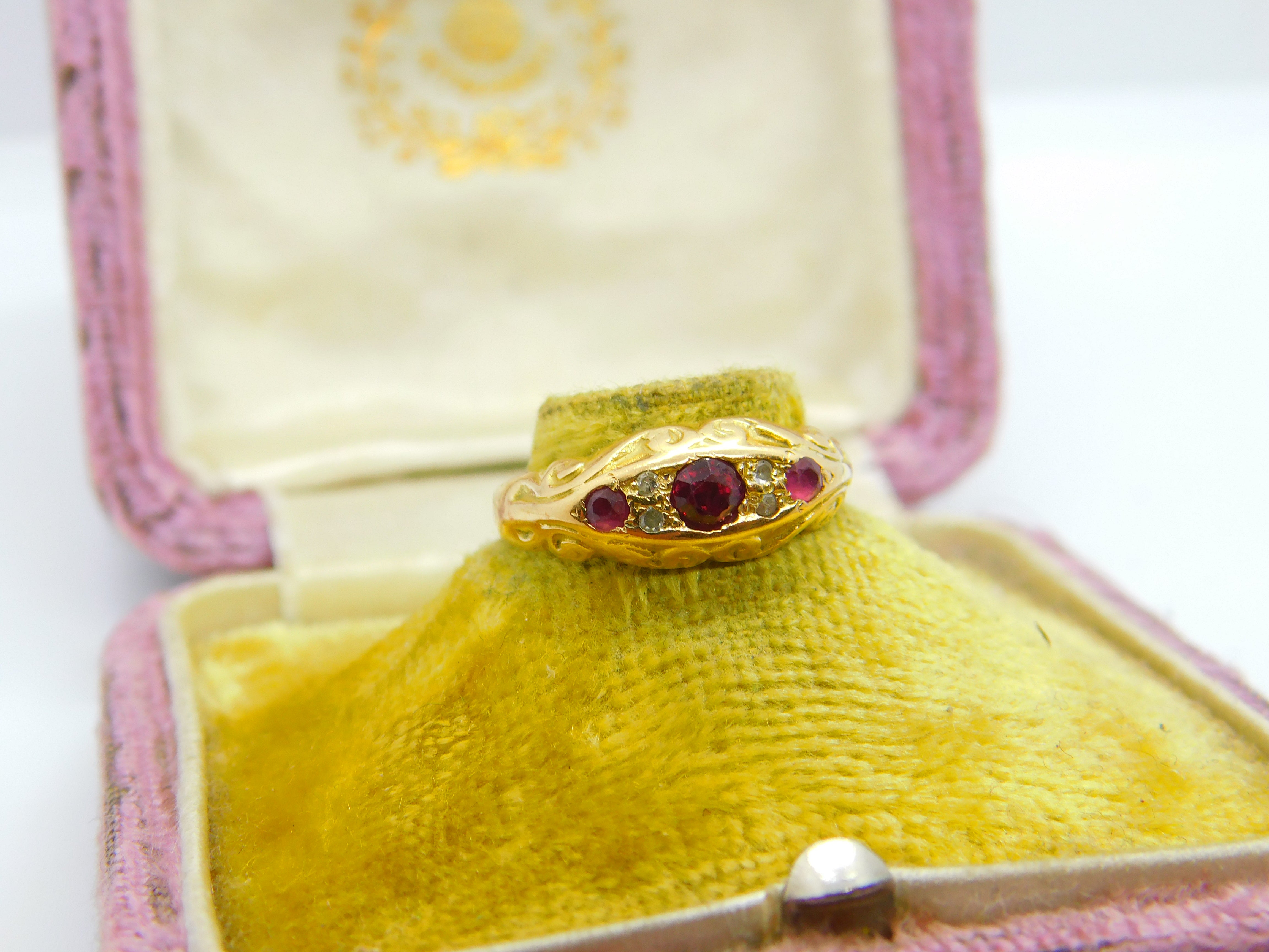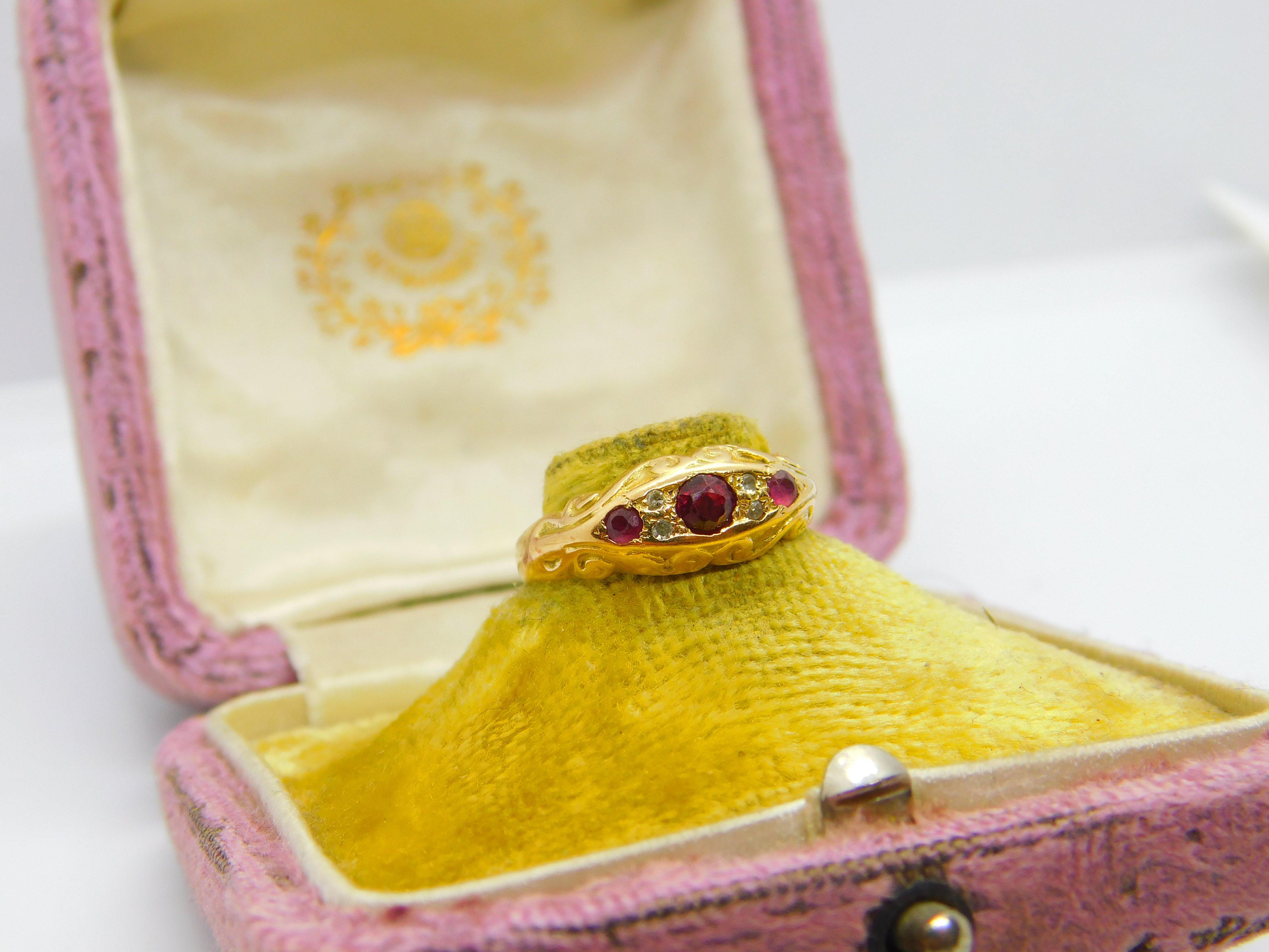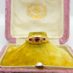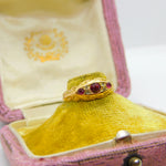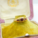 Victorian 18ct Yellow Gold, Ruby & Diamond Boat Ring Antique c1880