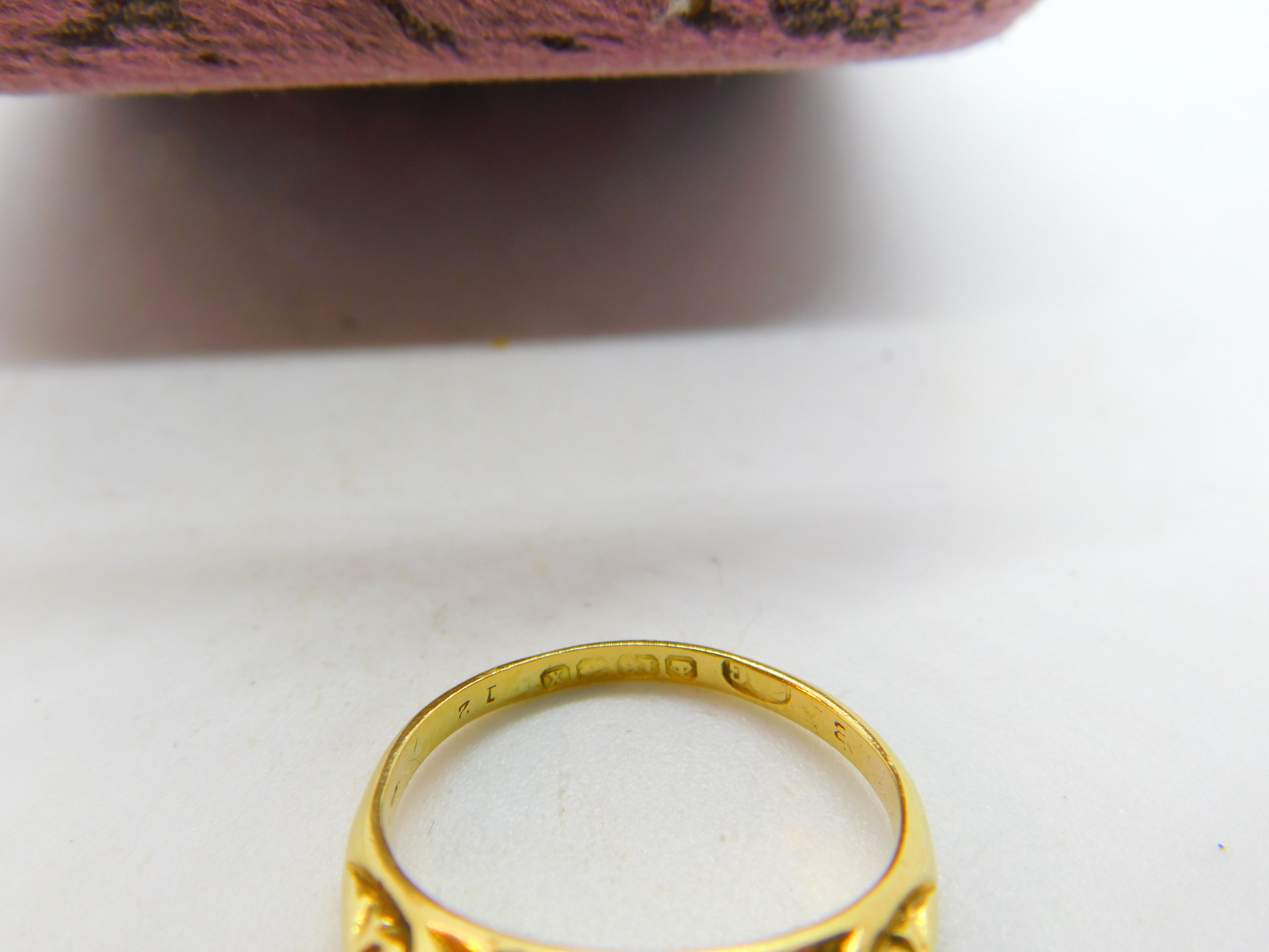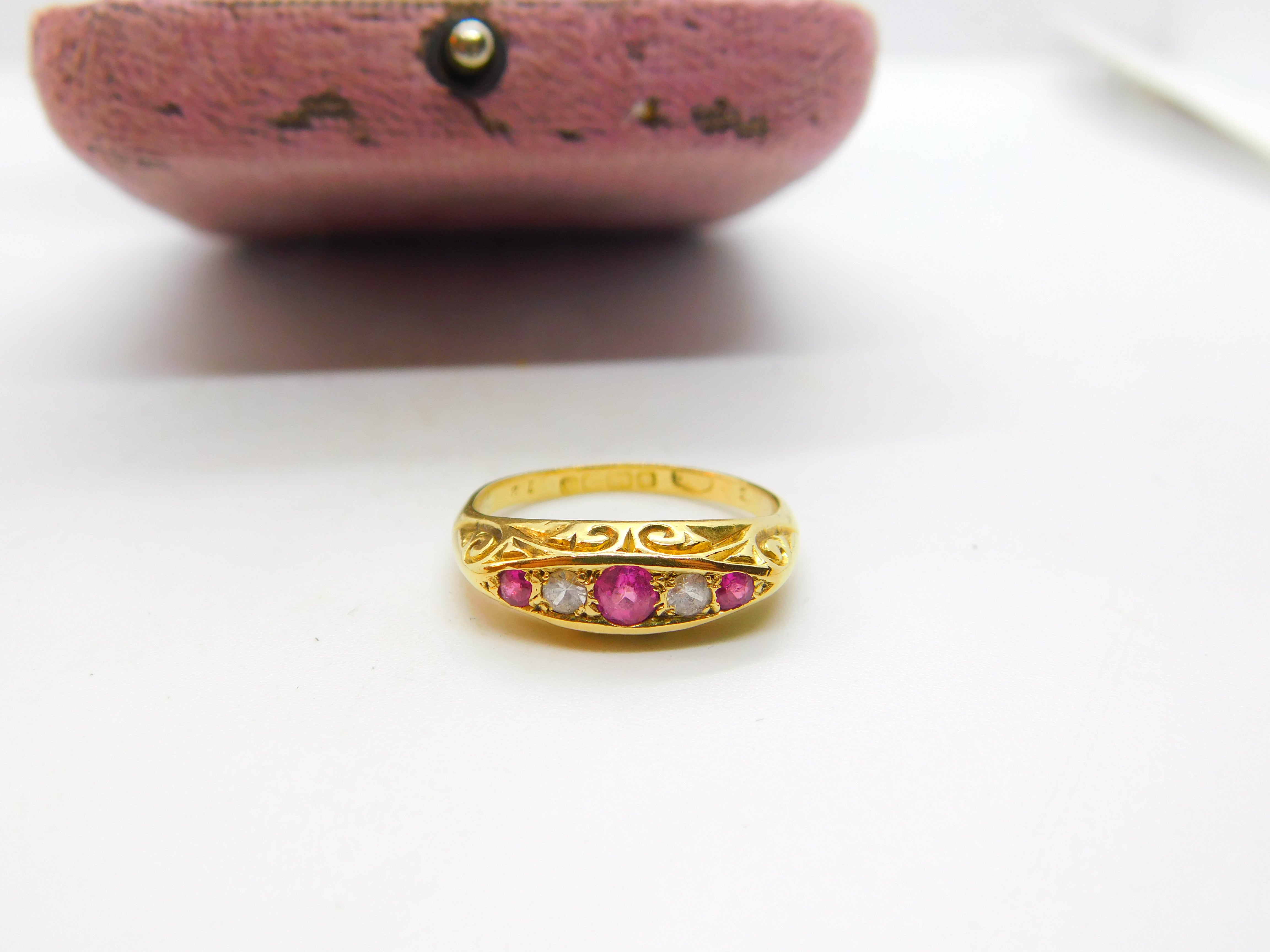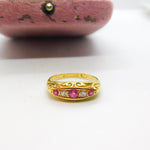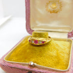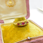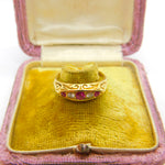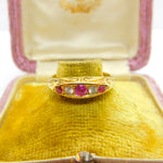 Victorian 18ct Yellow Gold, Ruby & White Spinel Boat Ring 1872 Antique