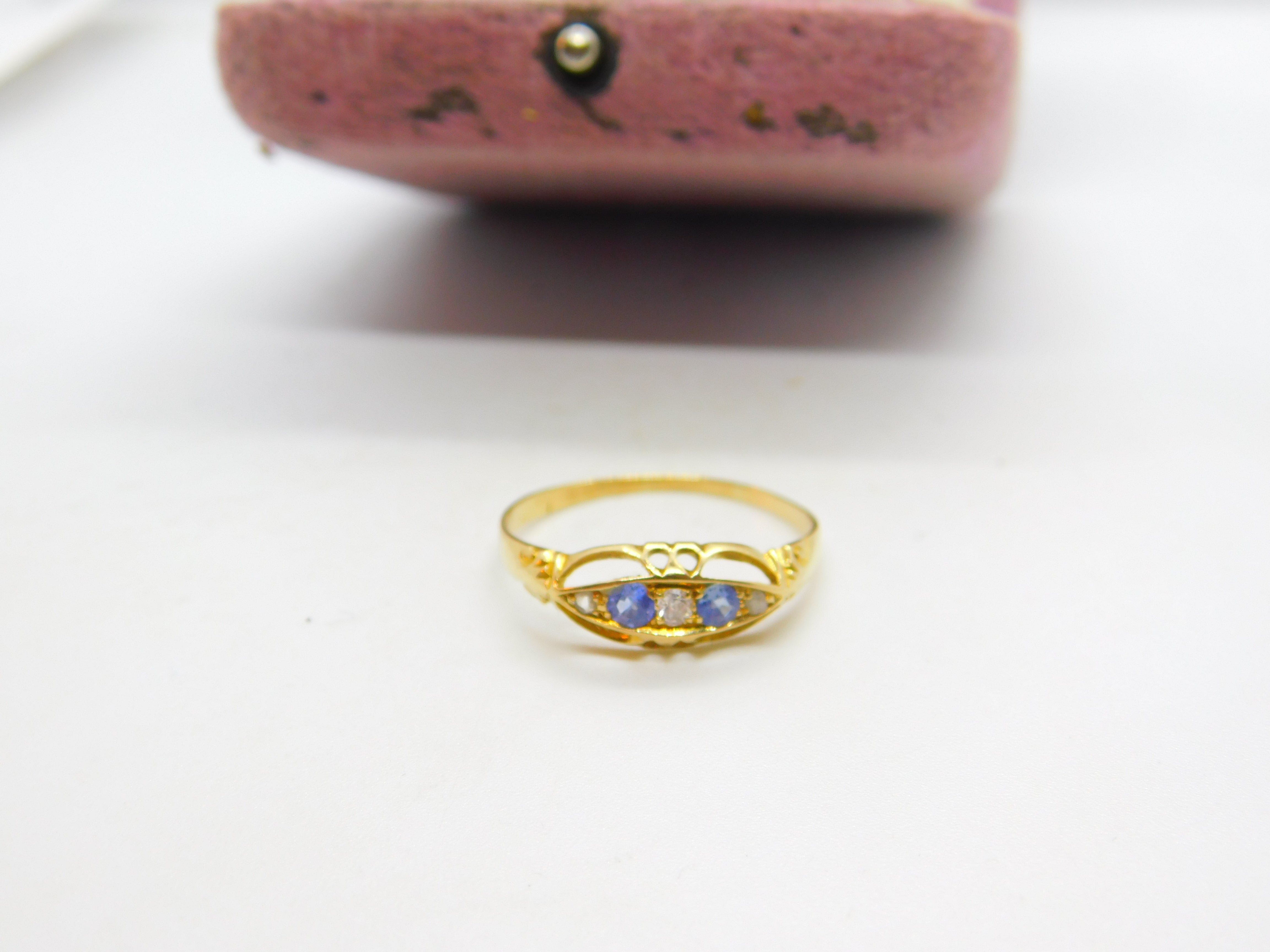 Victorian 18ct Yellow Gold, Sapphire & Diamond Boat Ring Antique c1890