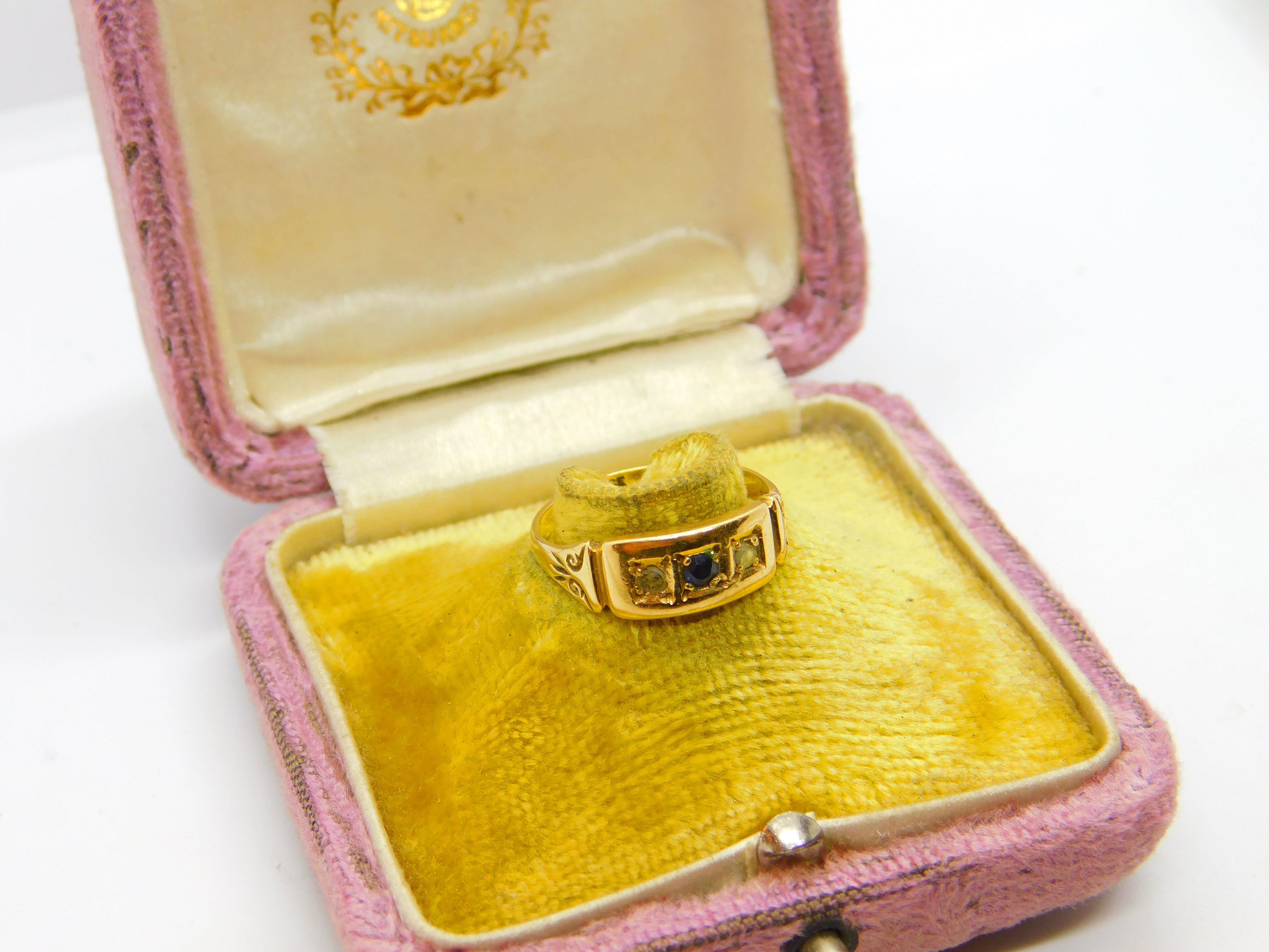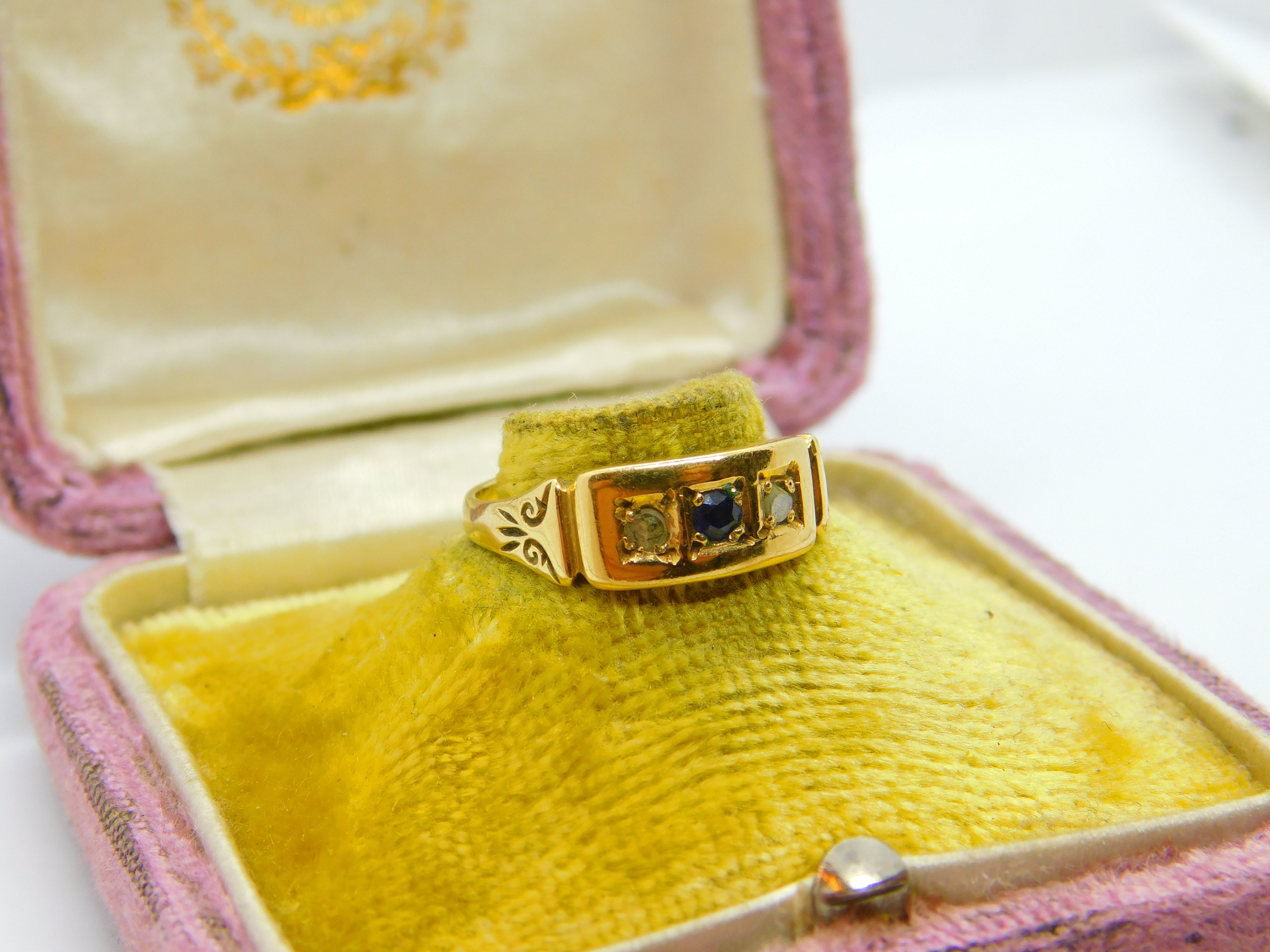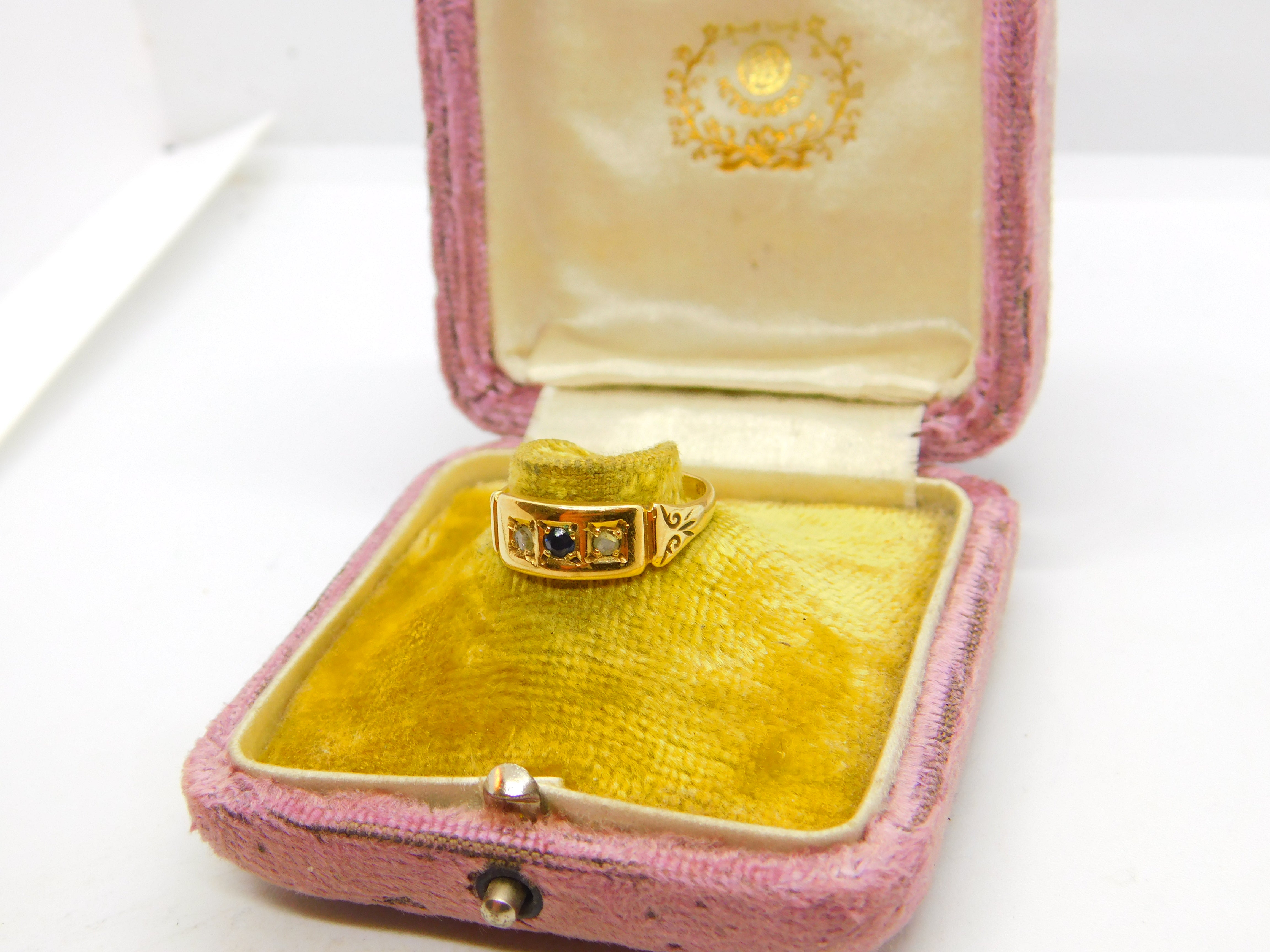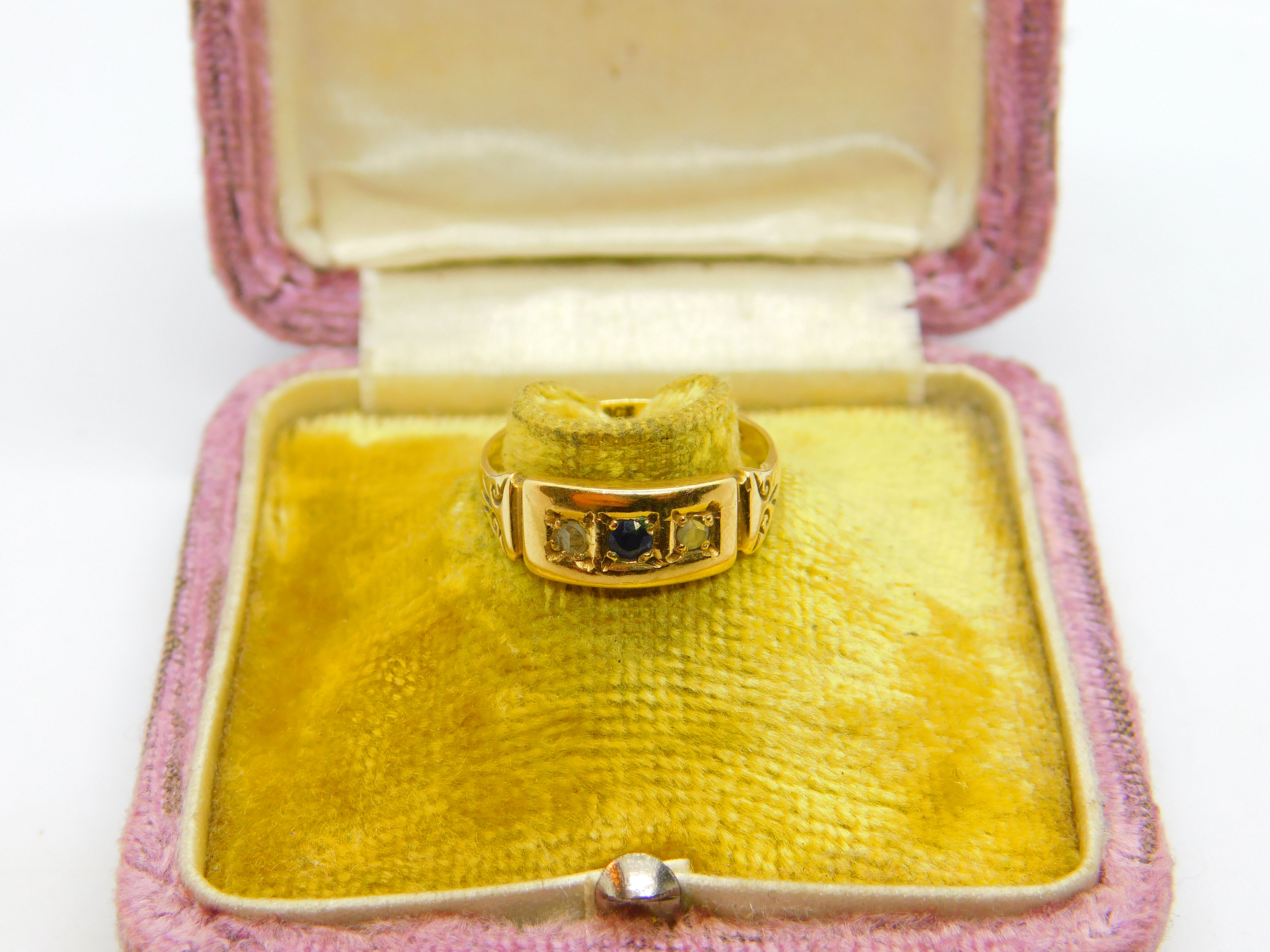 Victorian 18ct Yellow Gold, Sapphire & Diamond Boat Ring c1880 Antique