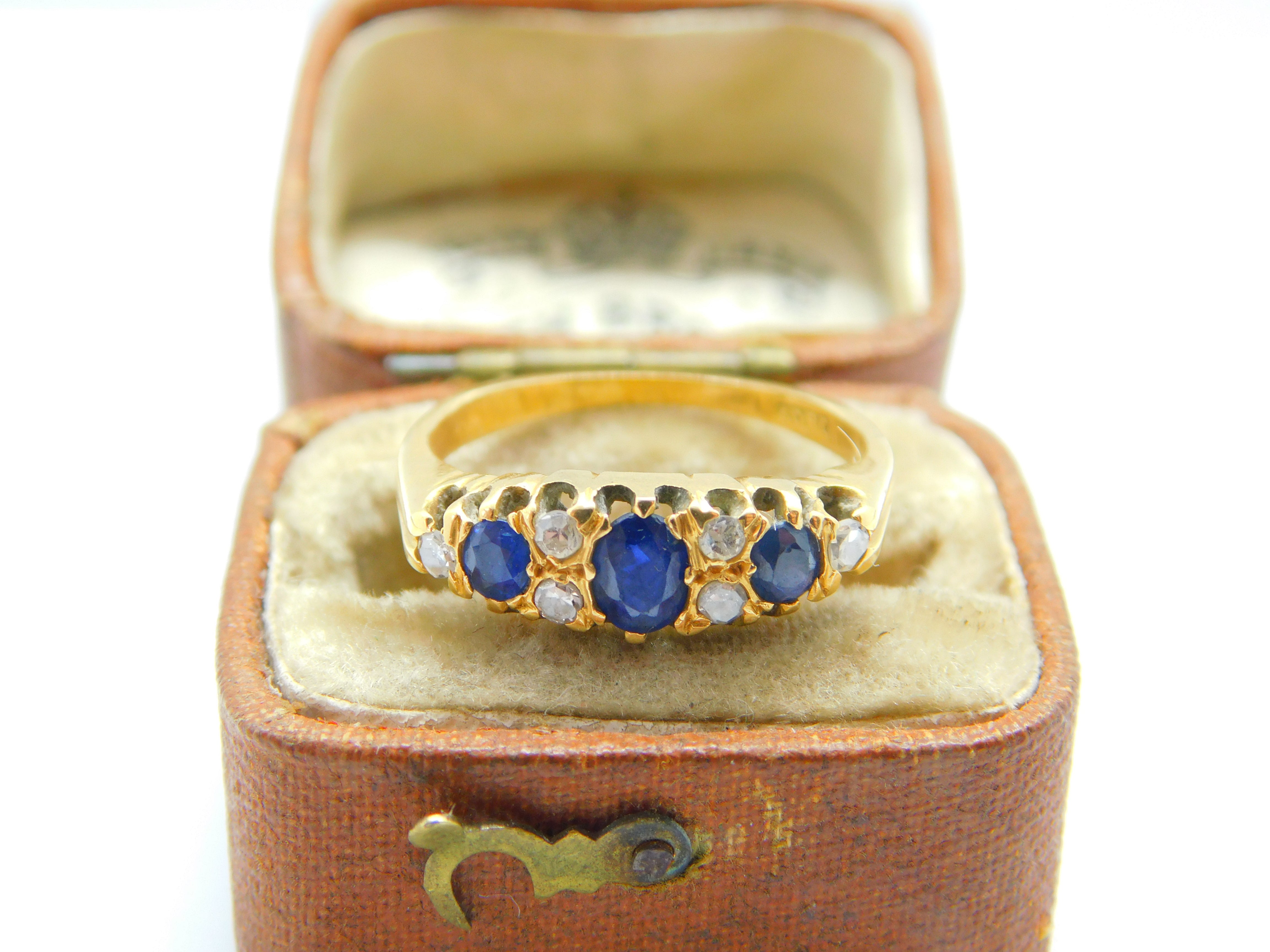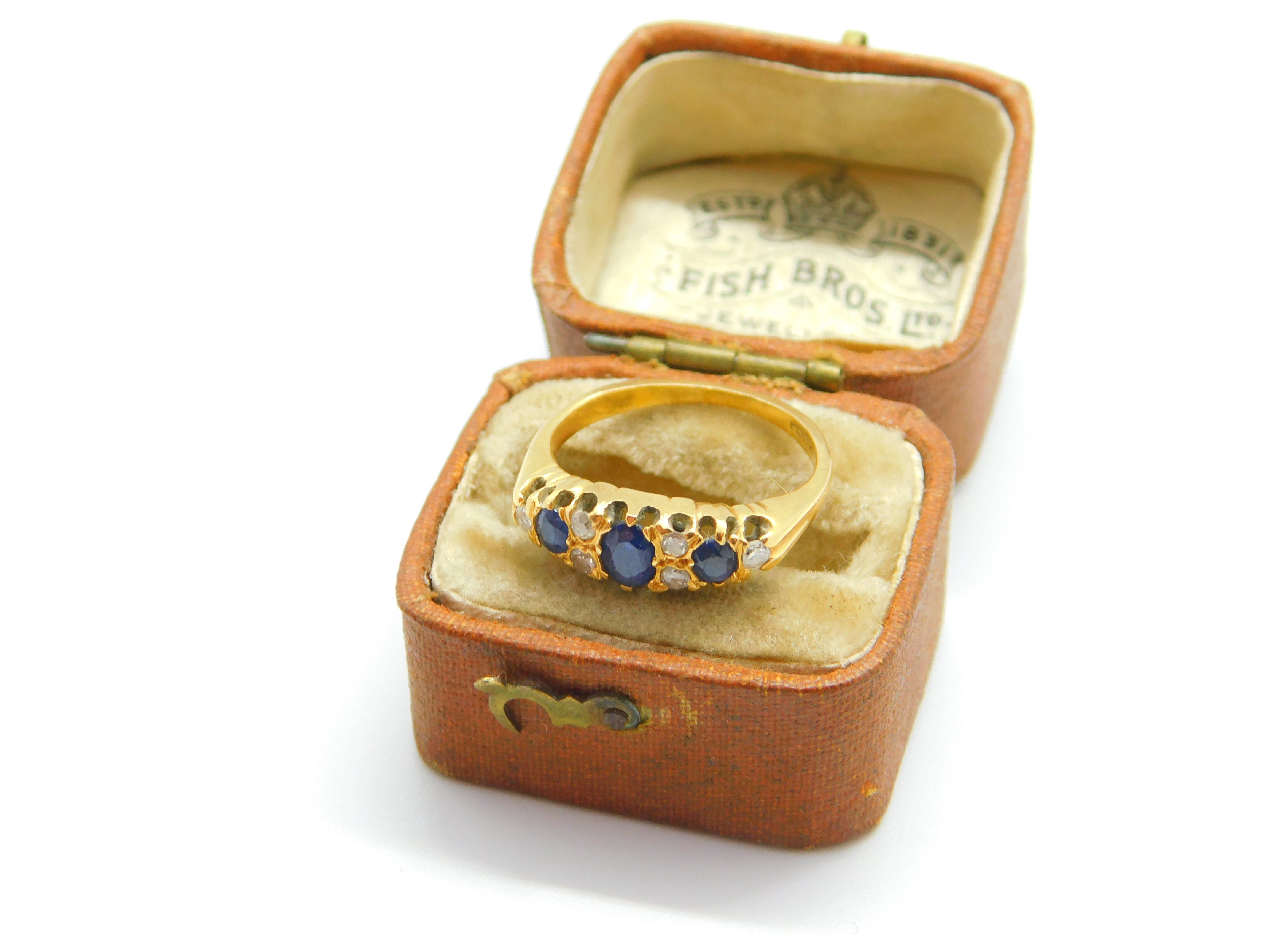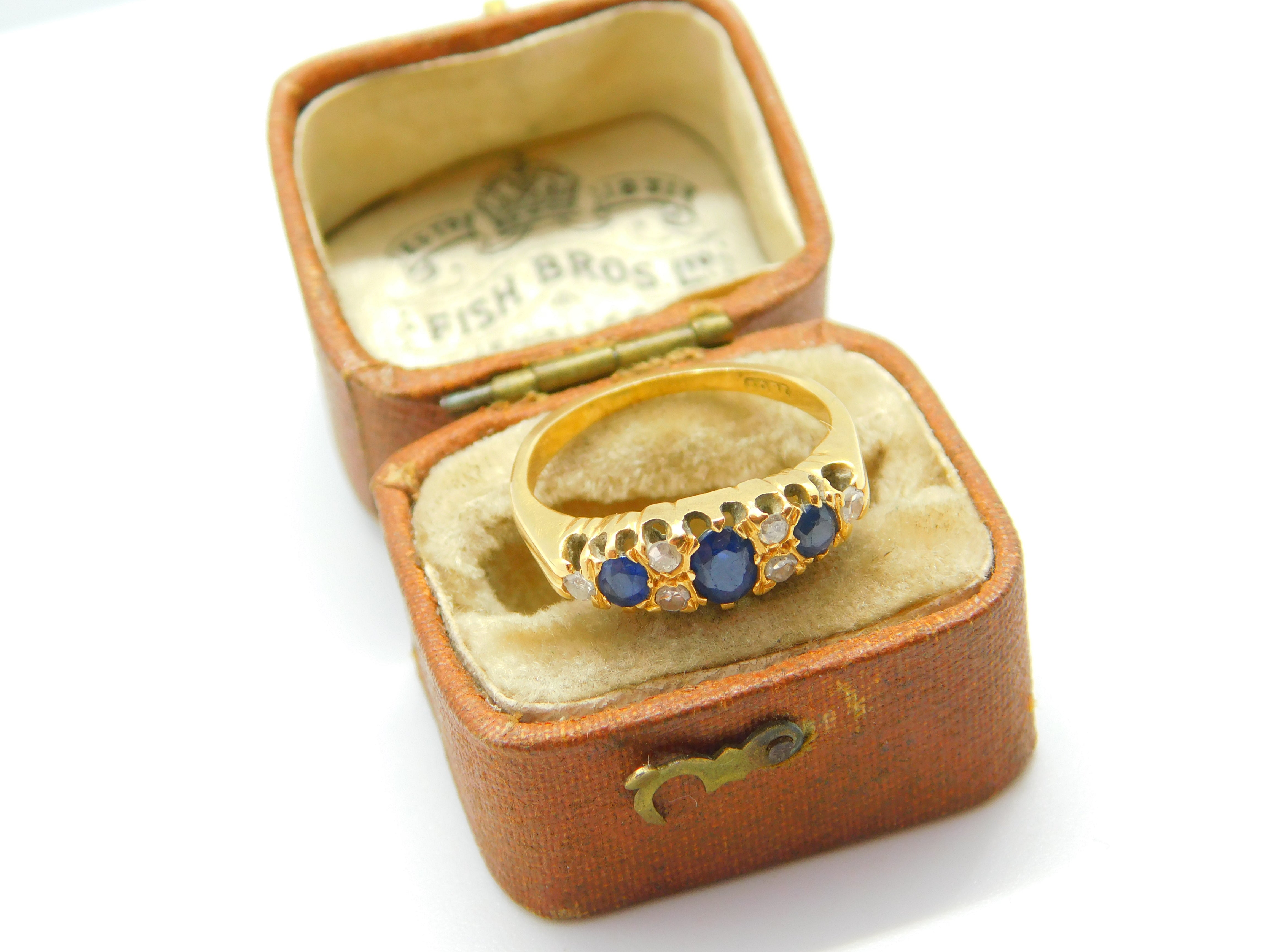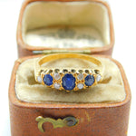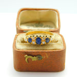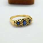 Victorian 18ct Yellow Gold, Sapphire & Diamond Boat Ring c1890 Antique Size J UK