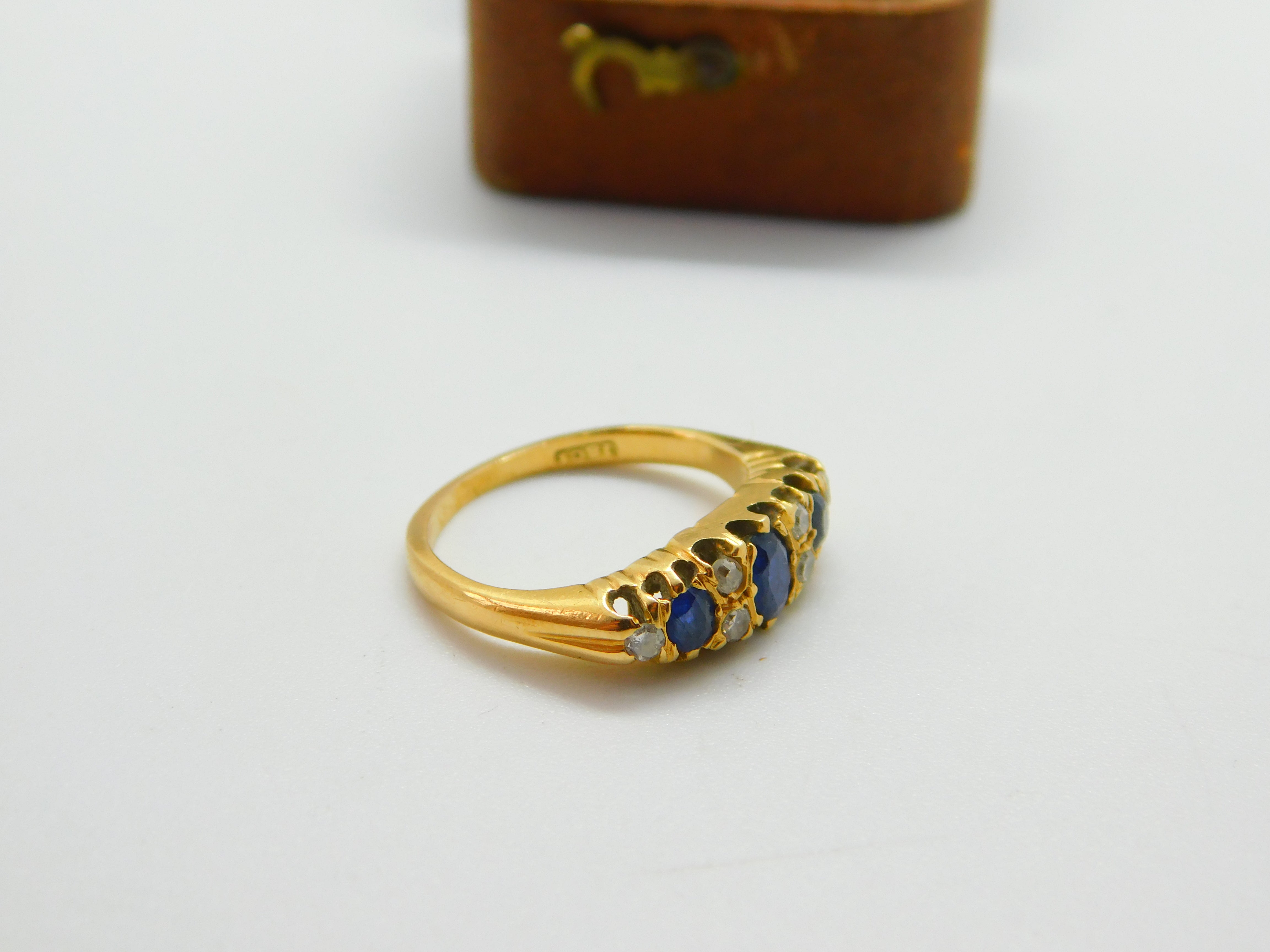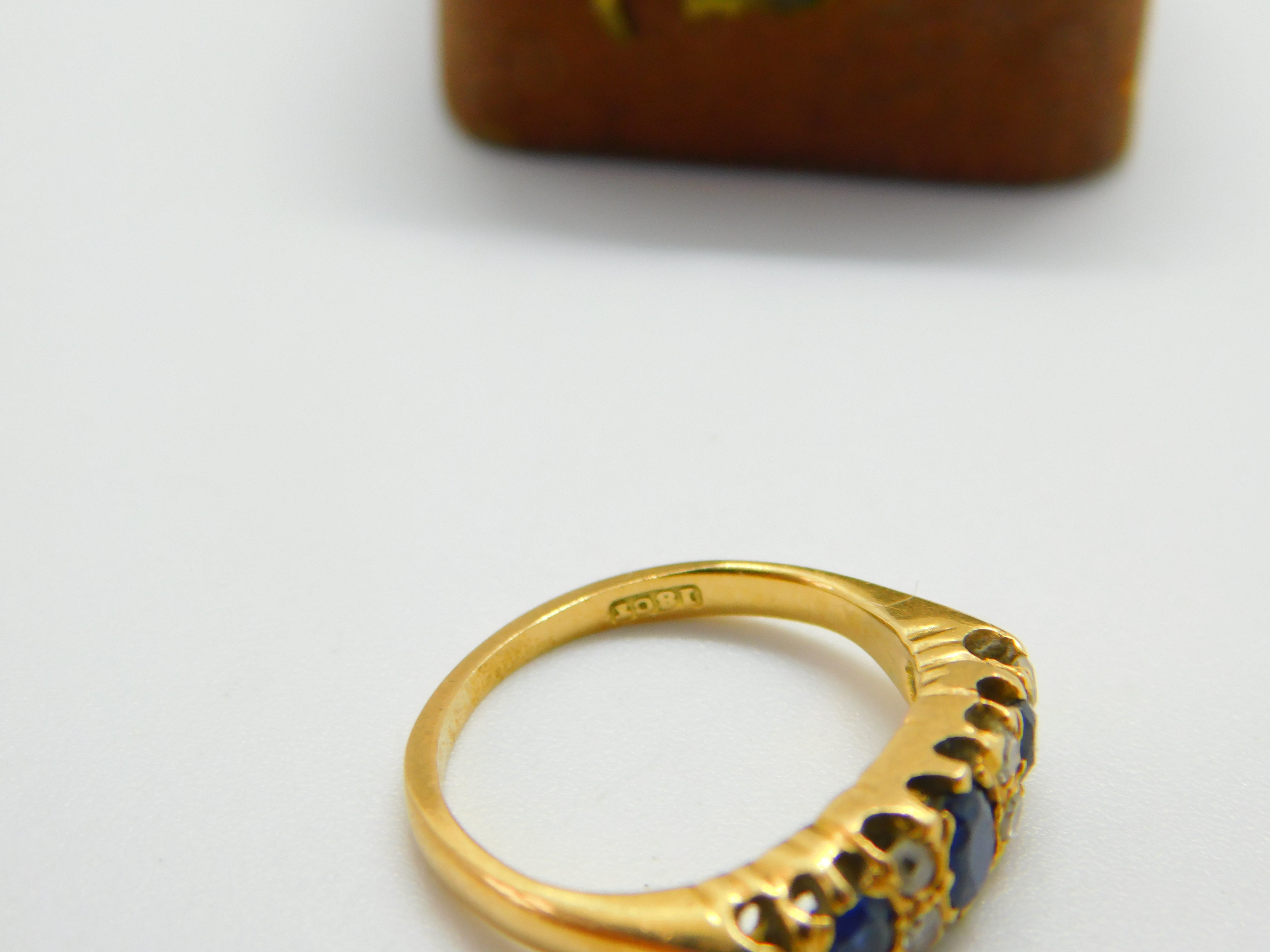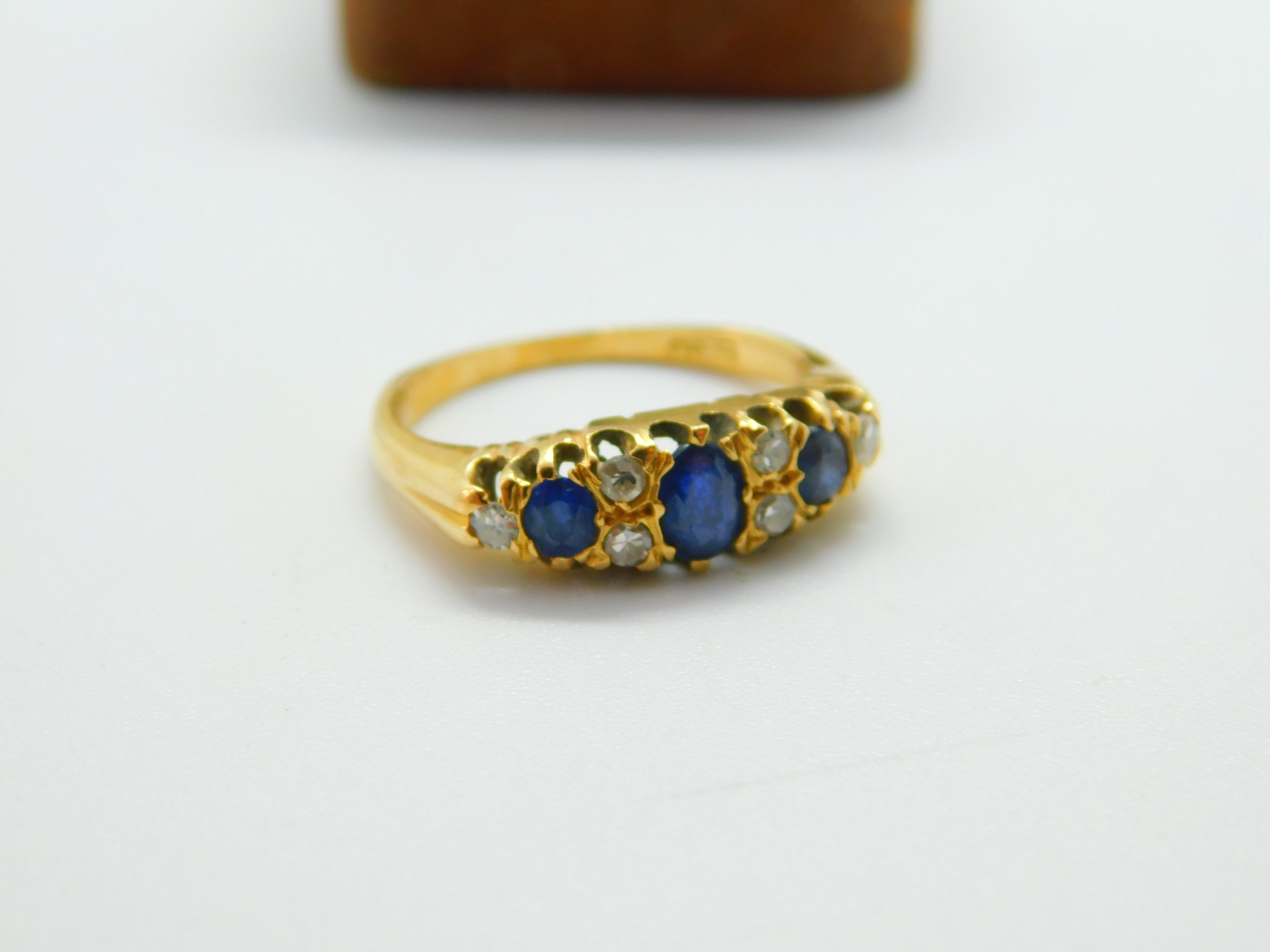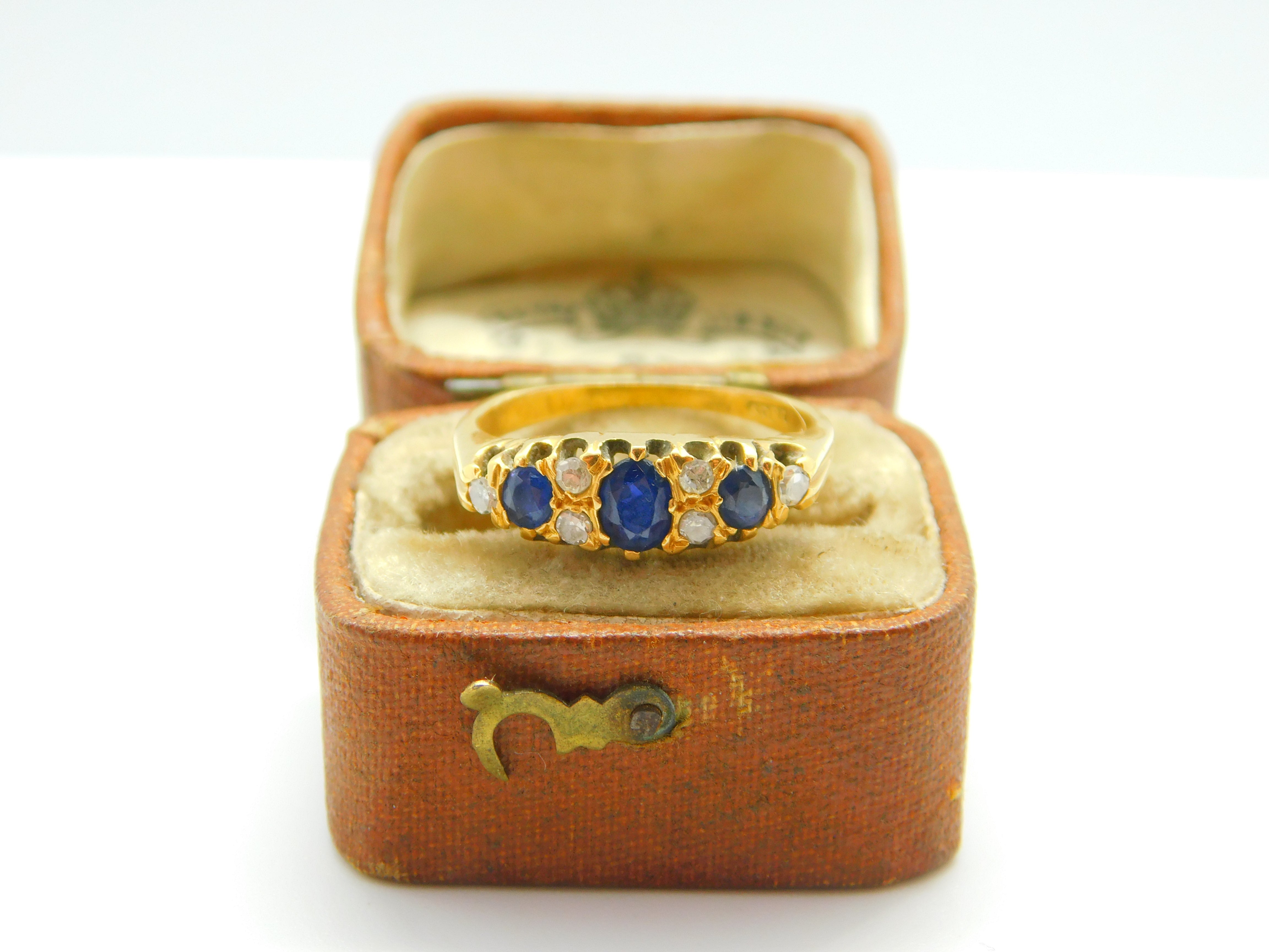 Victorian 18ct Yellow Gold, Sapphire & Diamond Boat Ring c1890 Antique Size J UK