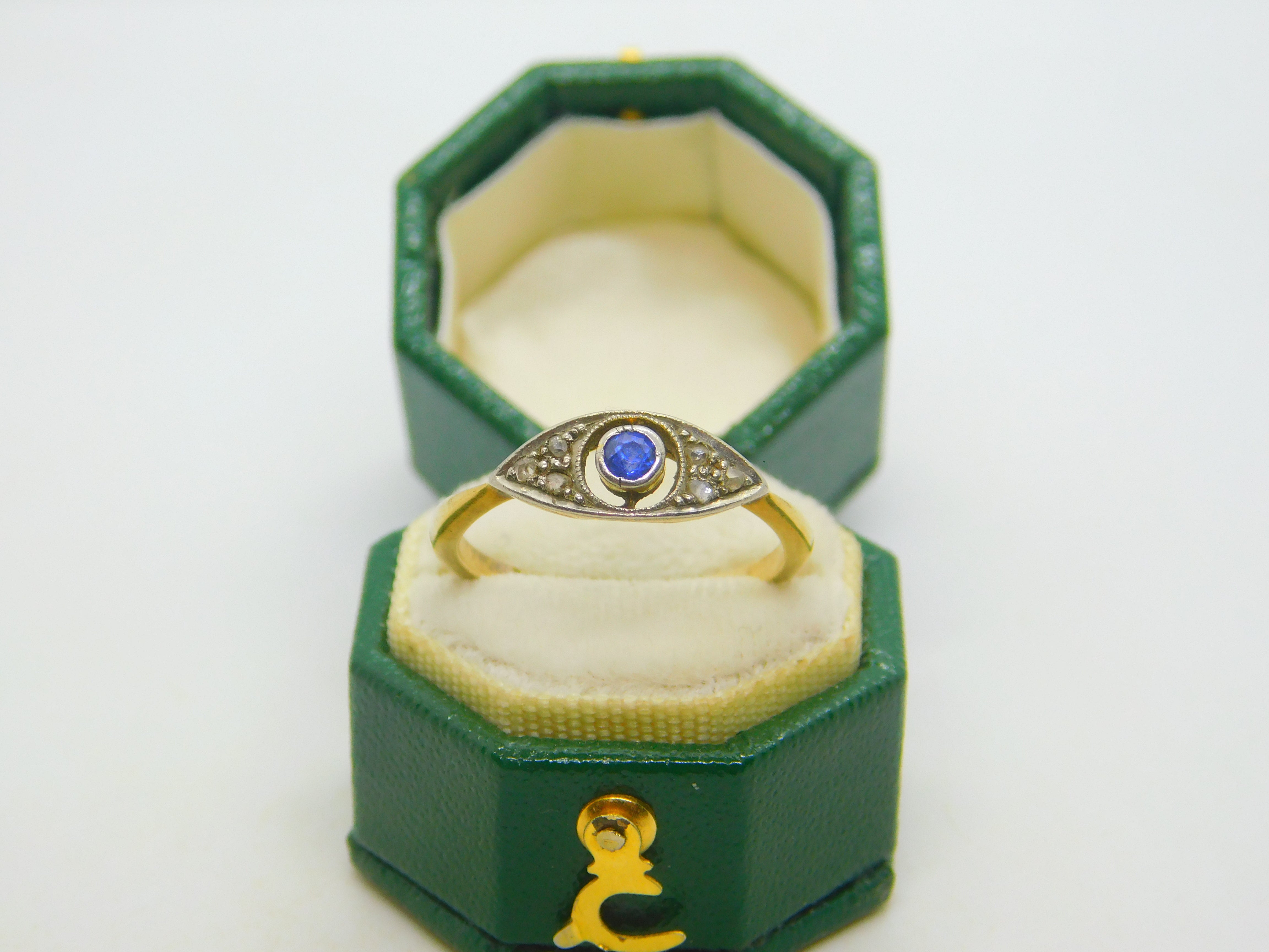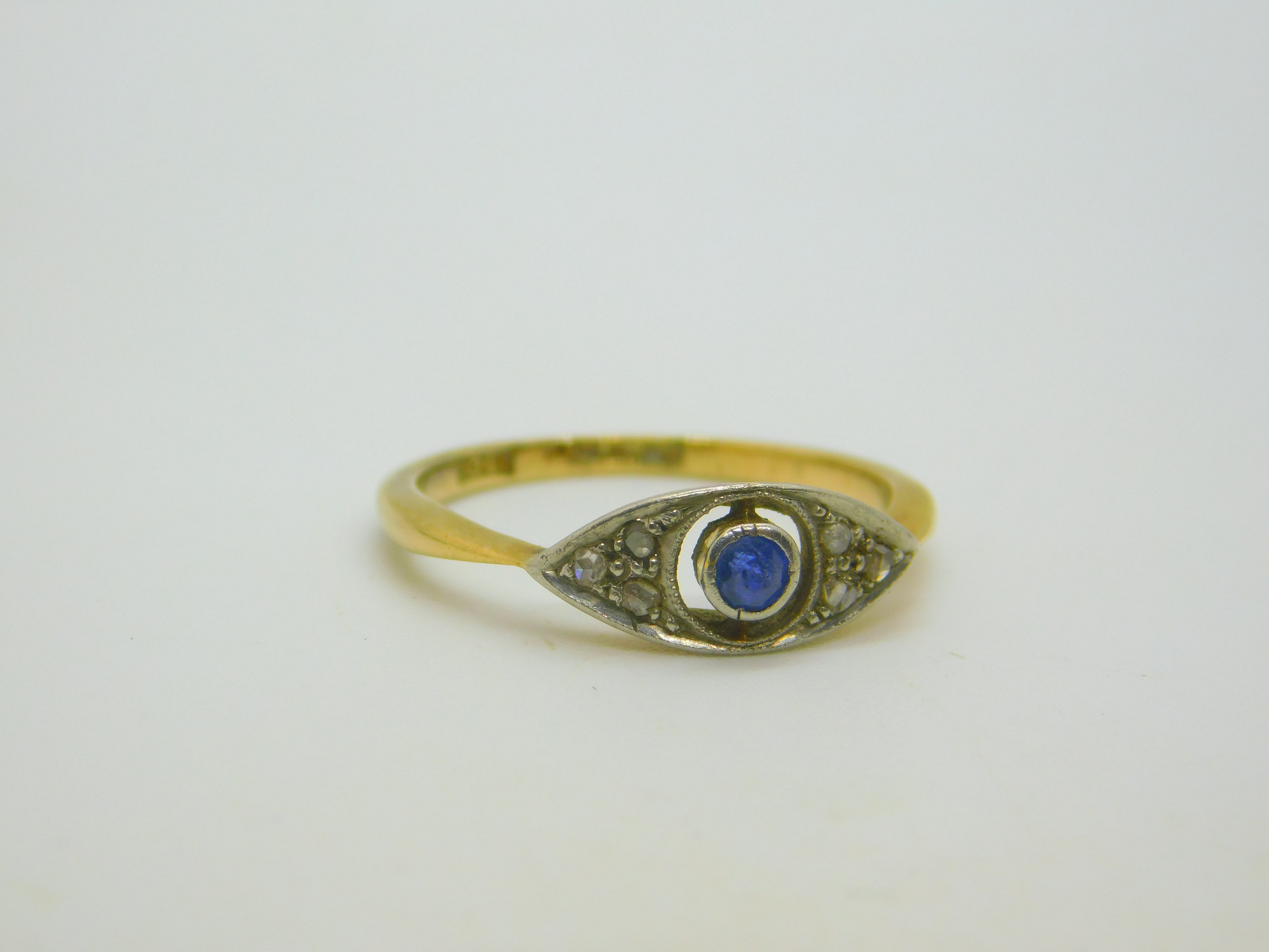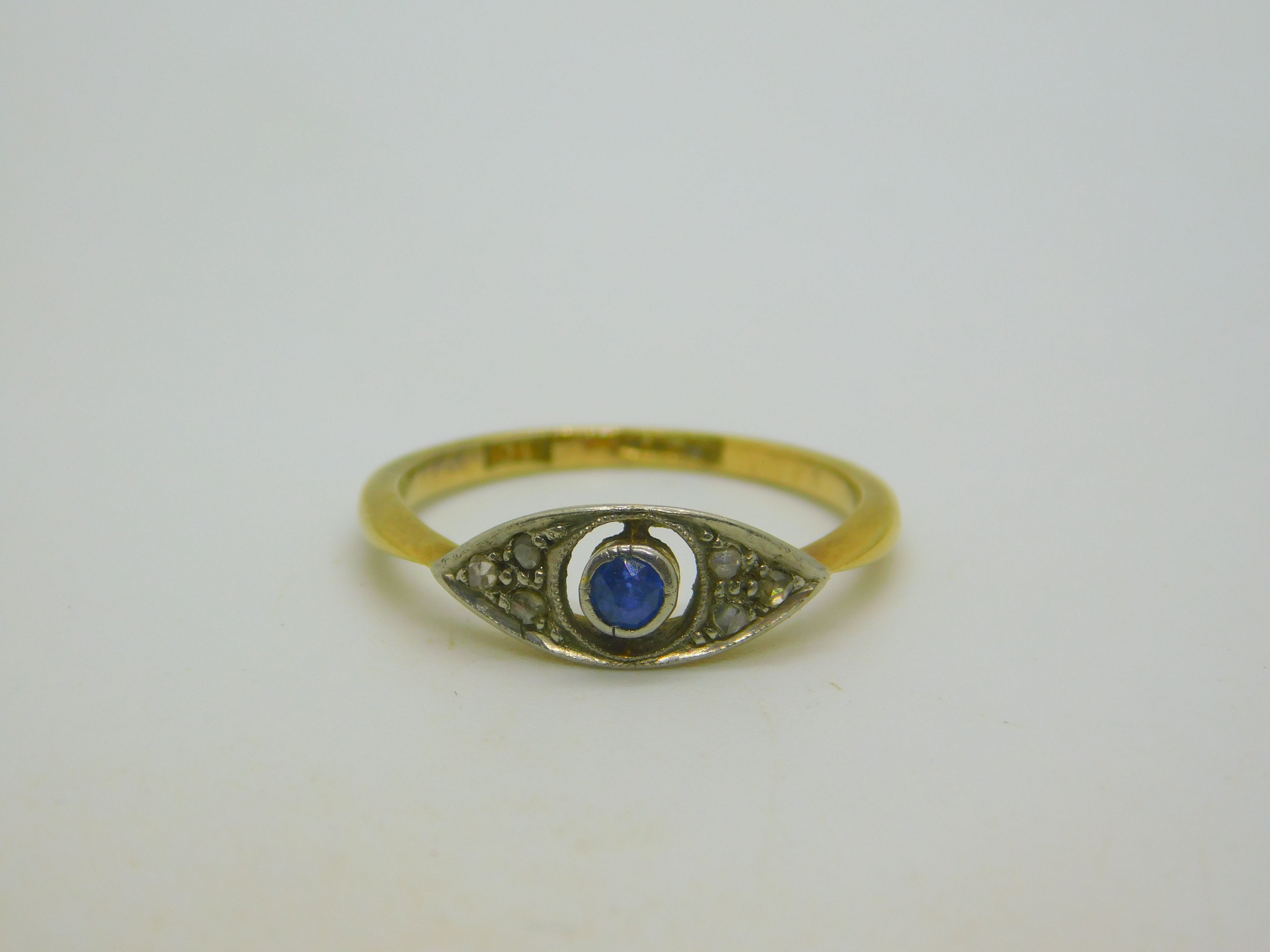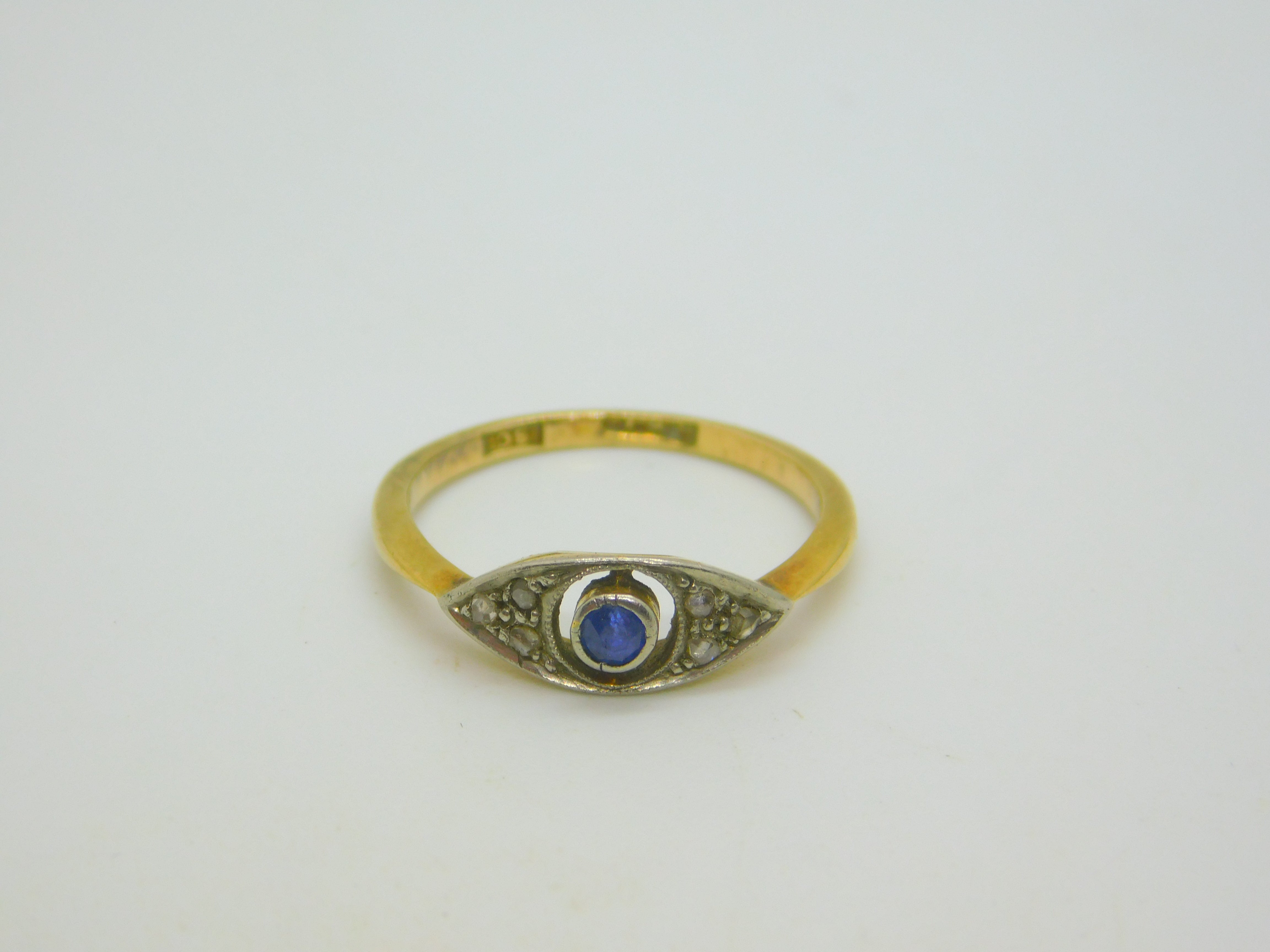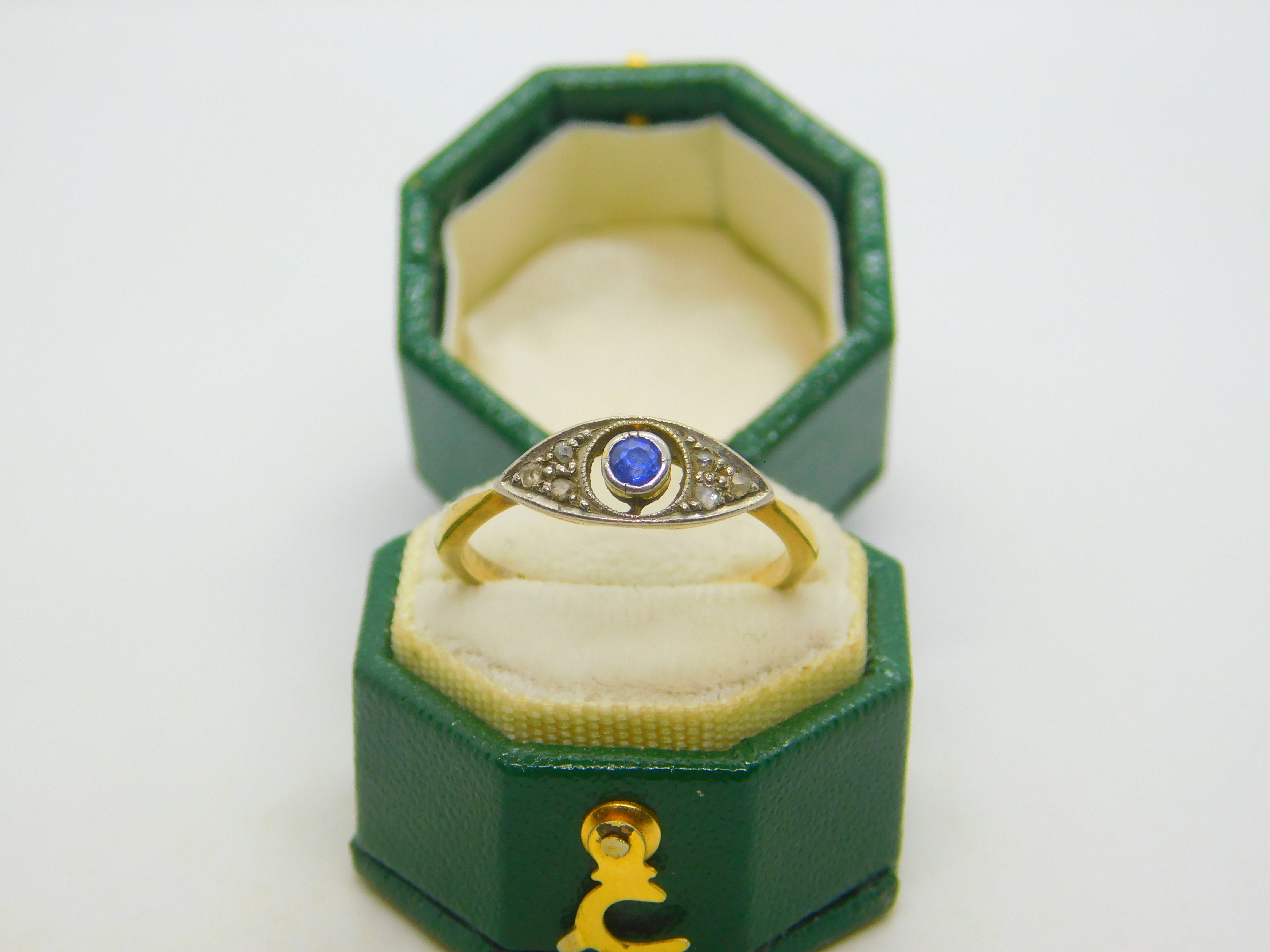 Details: A fantastic and wonderfully designed antique Victorian 18ct yellow gold dress ring set with central sapphire flanked with small diamonds hallmarked to the interior c1890, the stones have been tested. This is a wonderful item that would make a perfect gift or addition to any collection. The BOX pictured is for PRESENTATION ONLY and is NOT included in the listings but used to frame the pictures unless specifically stated otherwise.