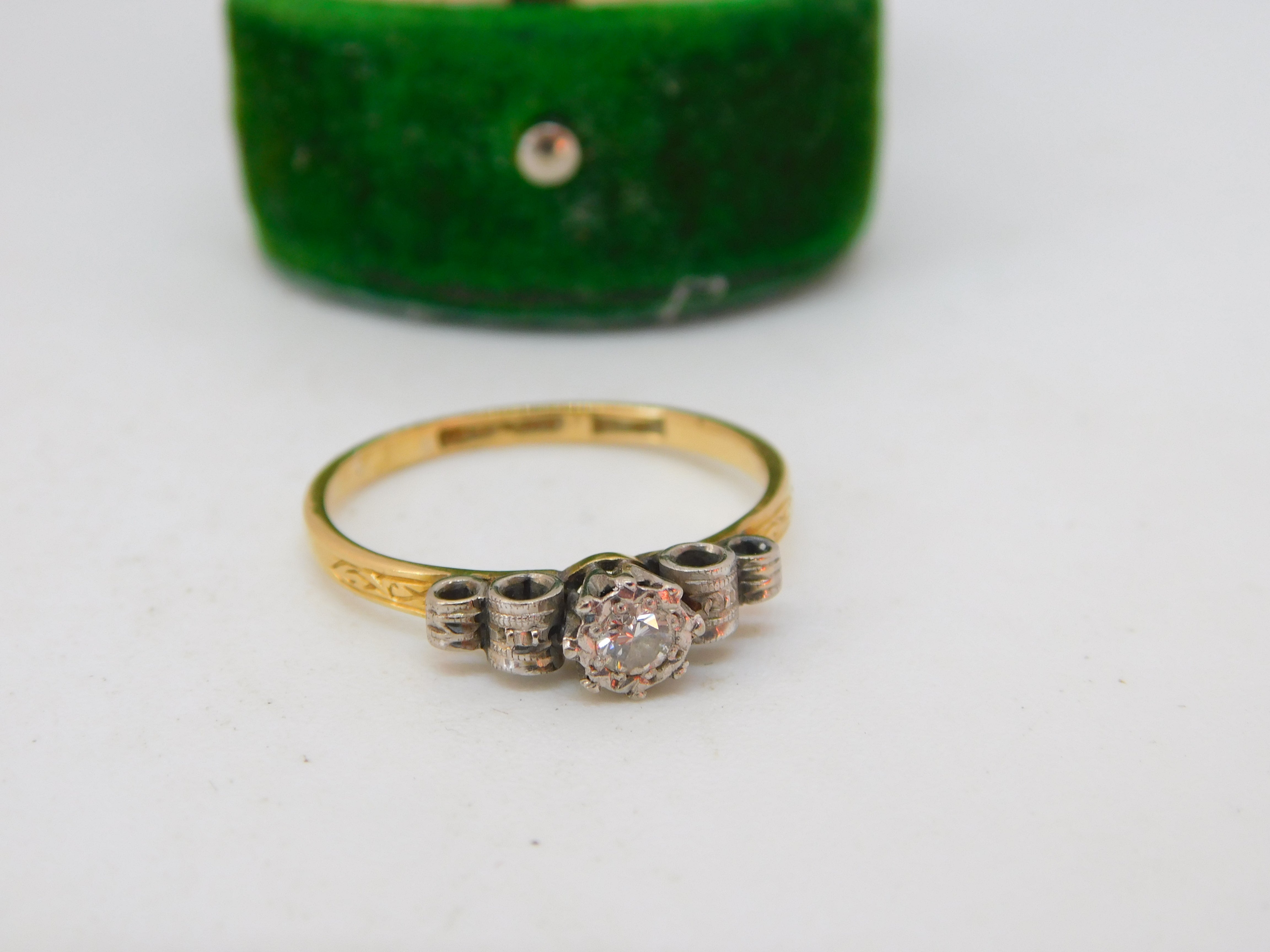 Details: A fantastic and wonderfully designed antique Victorian 18ct yellow gold & platinum scrolled shoulder solitaire ring set with central 0.1ct diamond c1890 hallmarked to the interior. This is a wonderful item that would make a perfect gift or addition to any collection. The BOX pictured is for PRESENTATION ONLY and is NOT included in the listings but used to frame the pictures unless specifically stated otherwise.