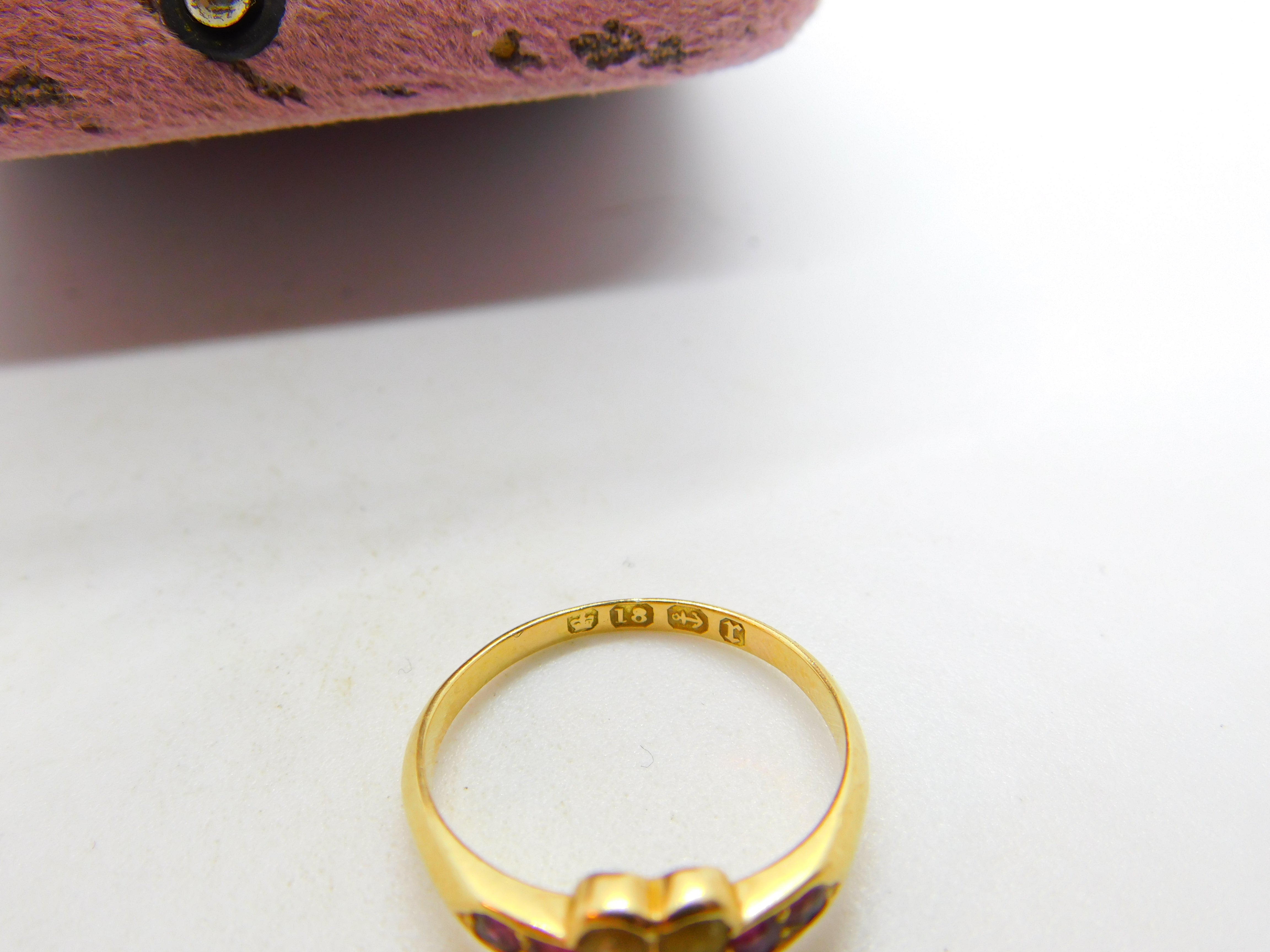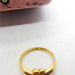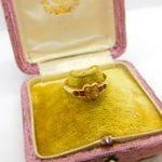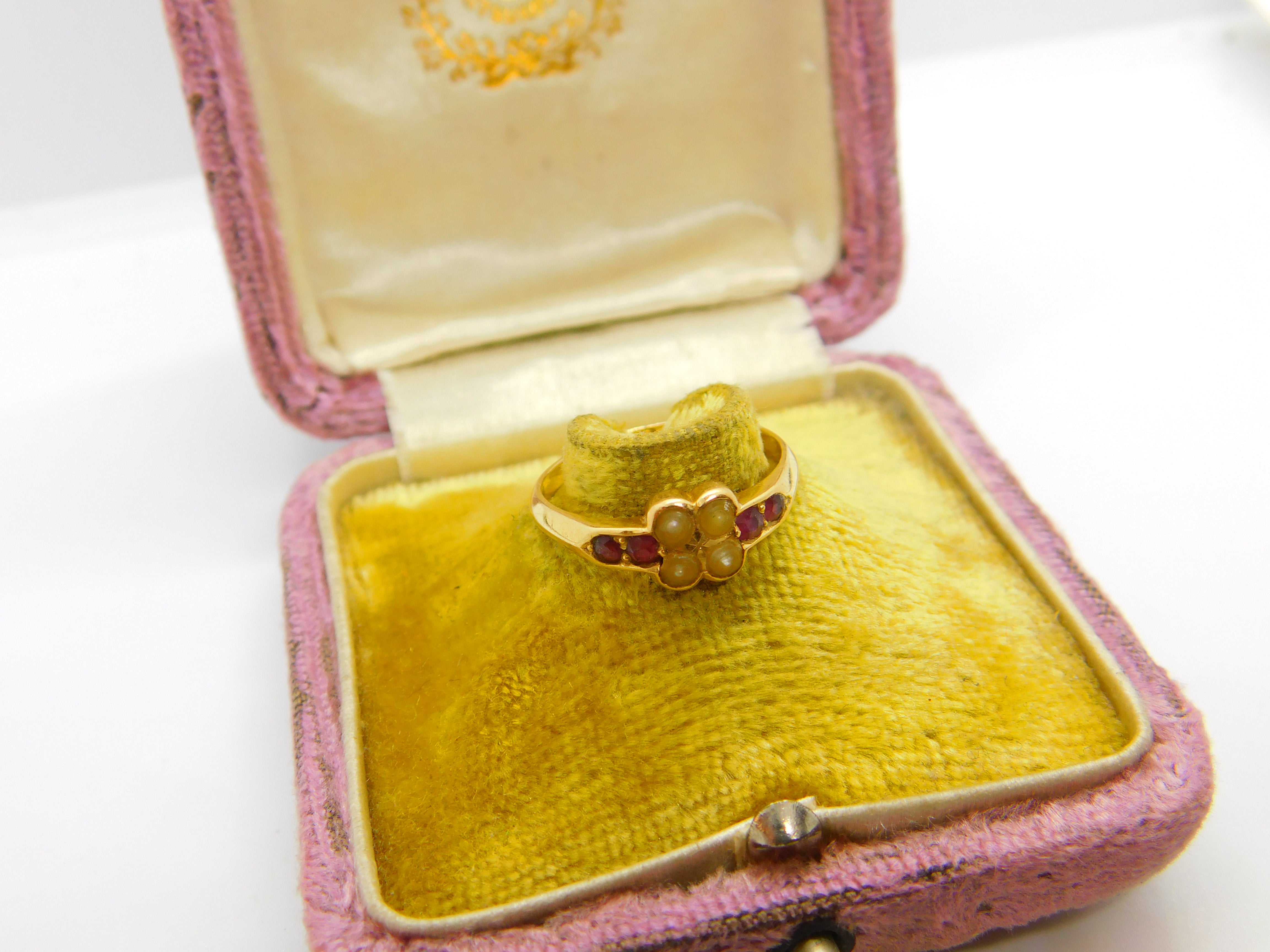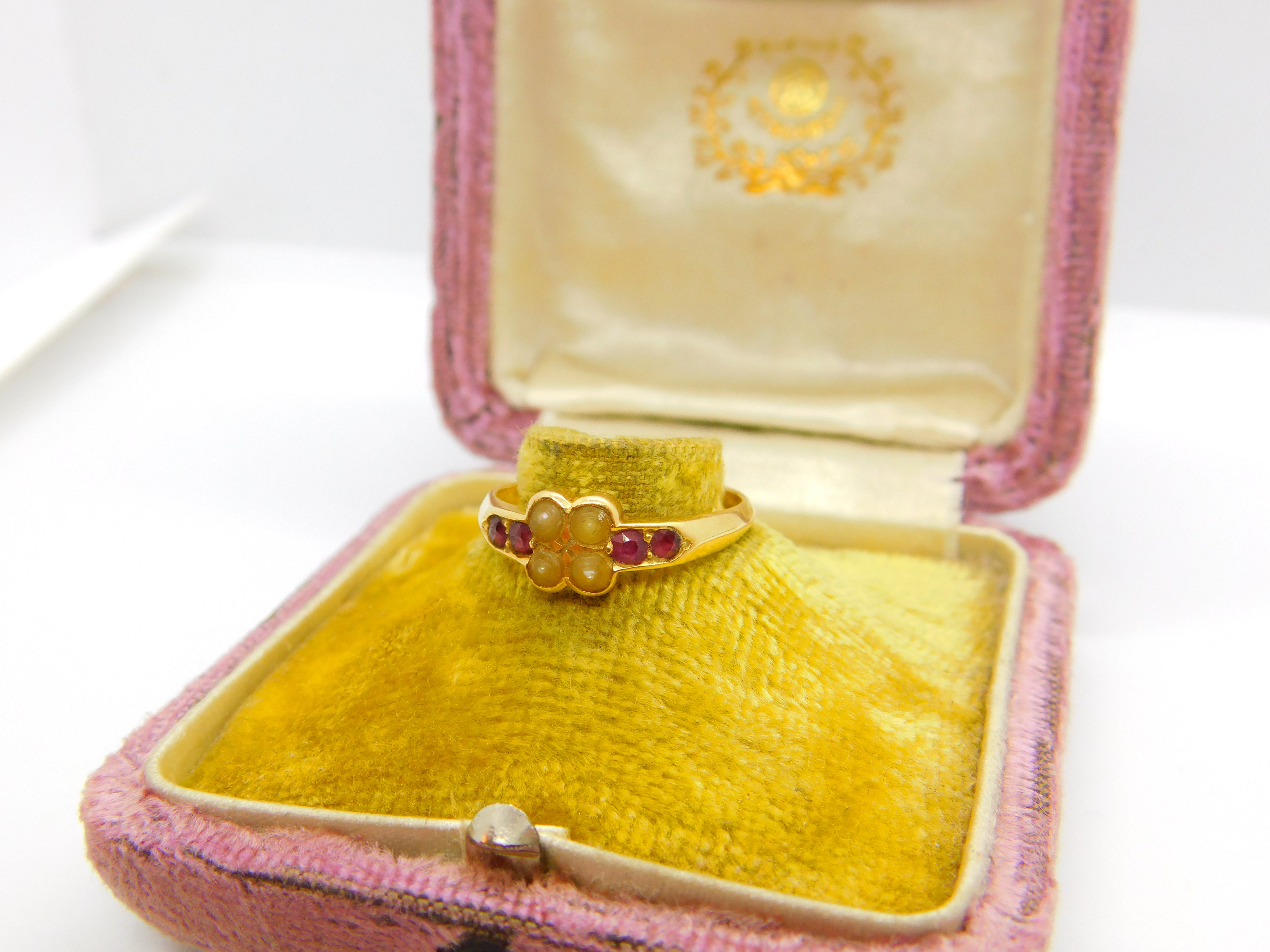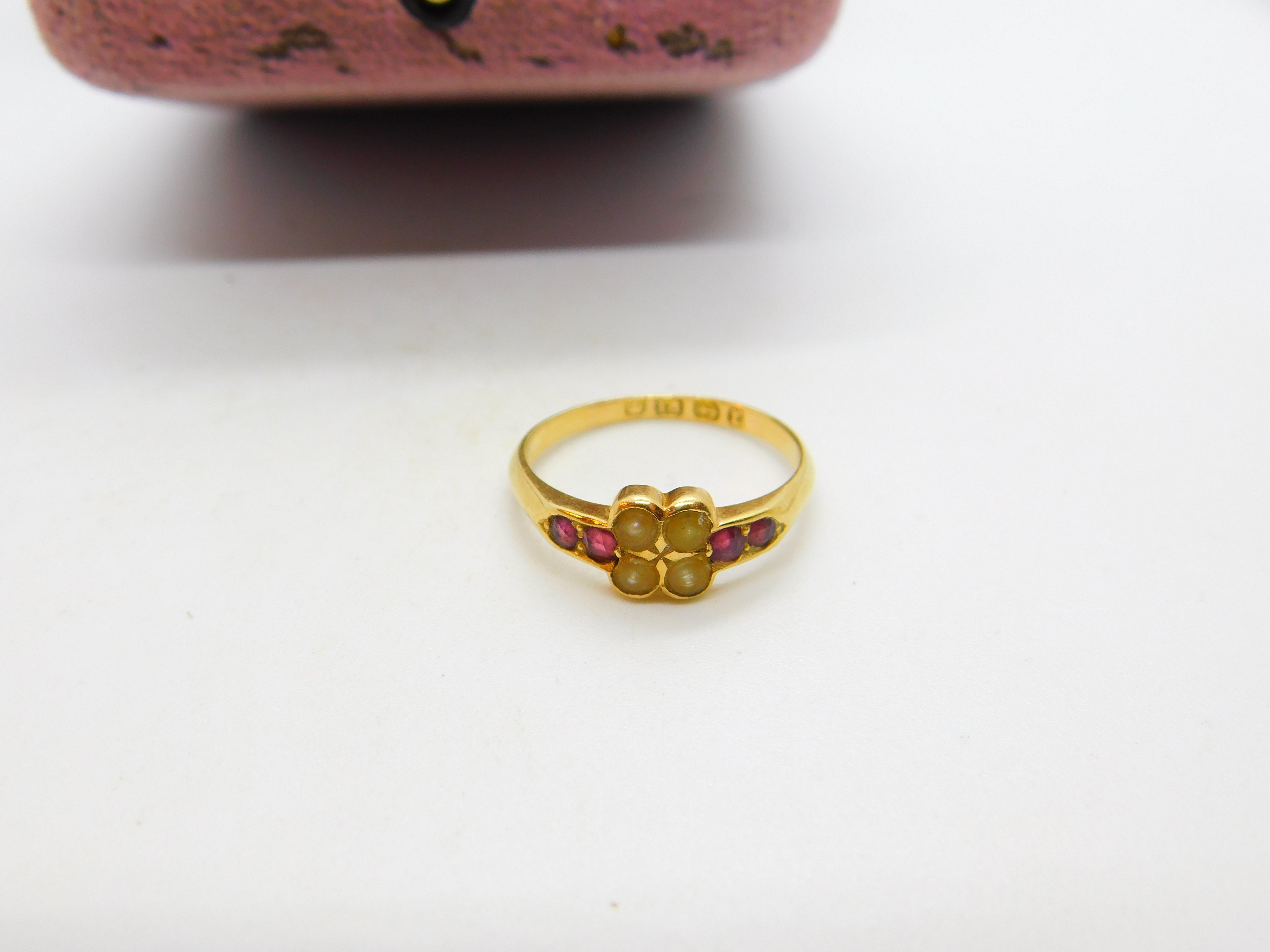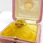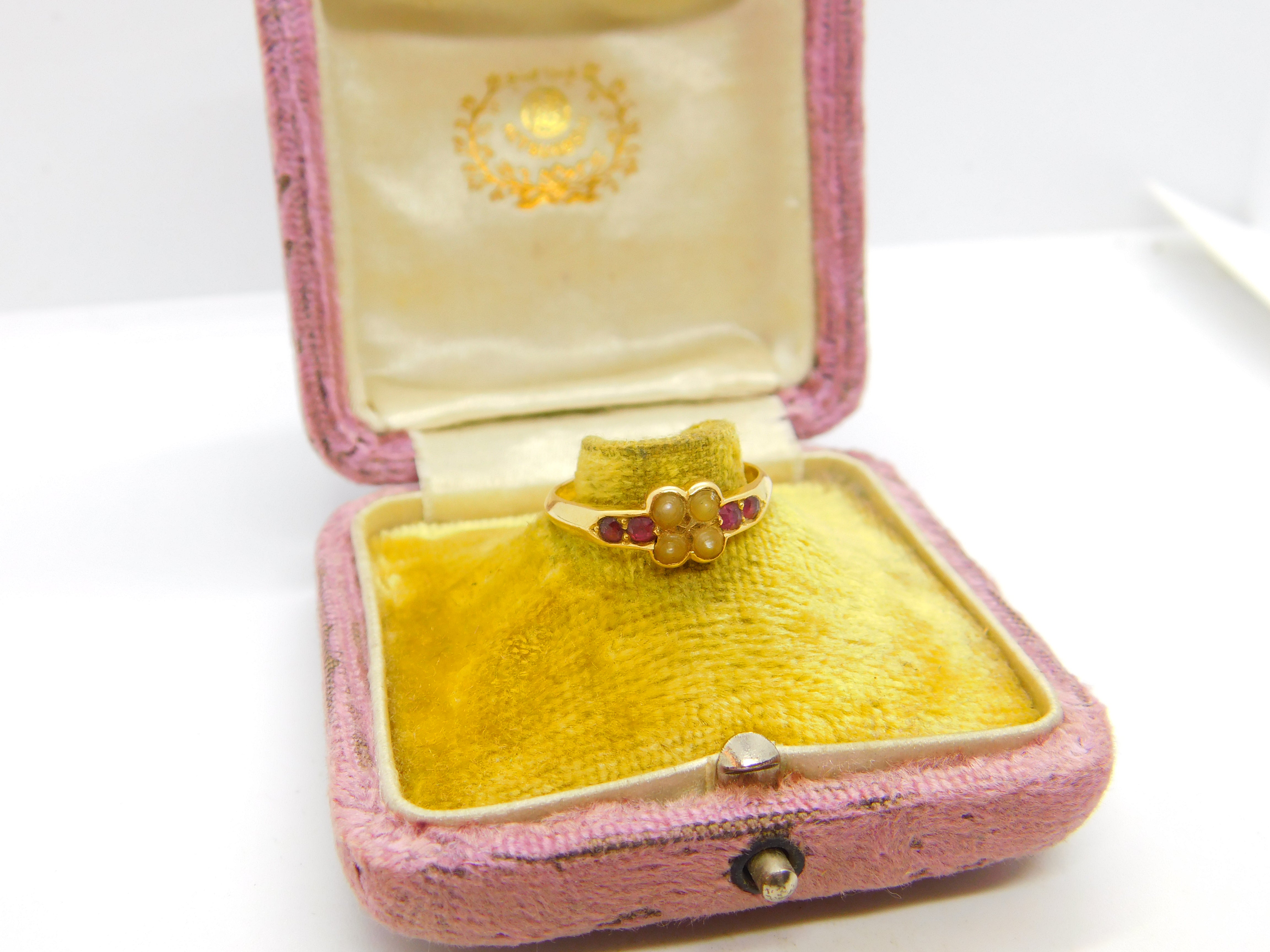 Victorian 18ct Yellow Gold, Seed Pearl & Ruby Floral Ring 1891 Birmingham