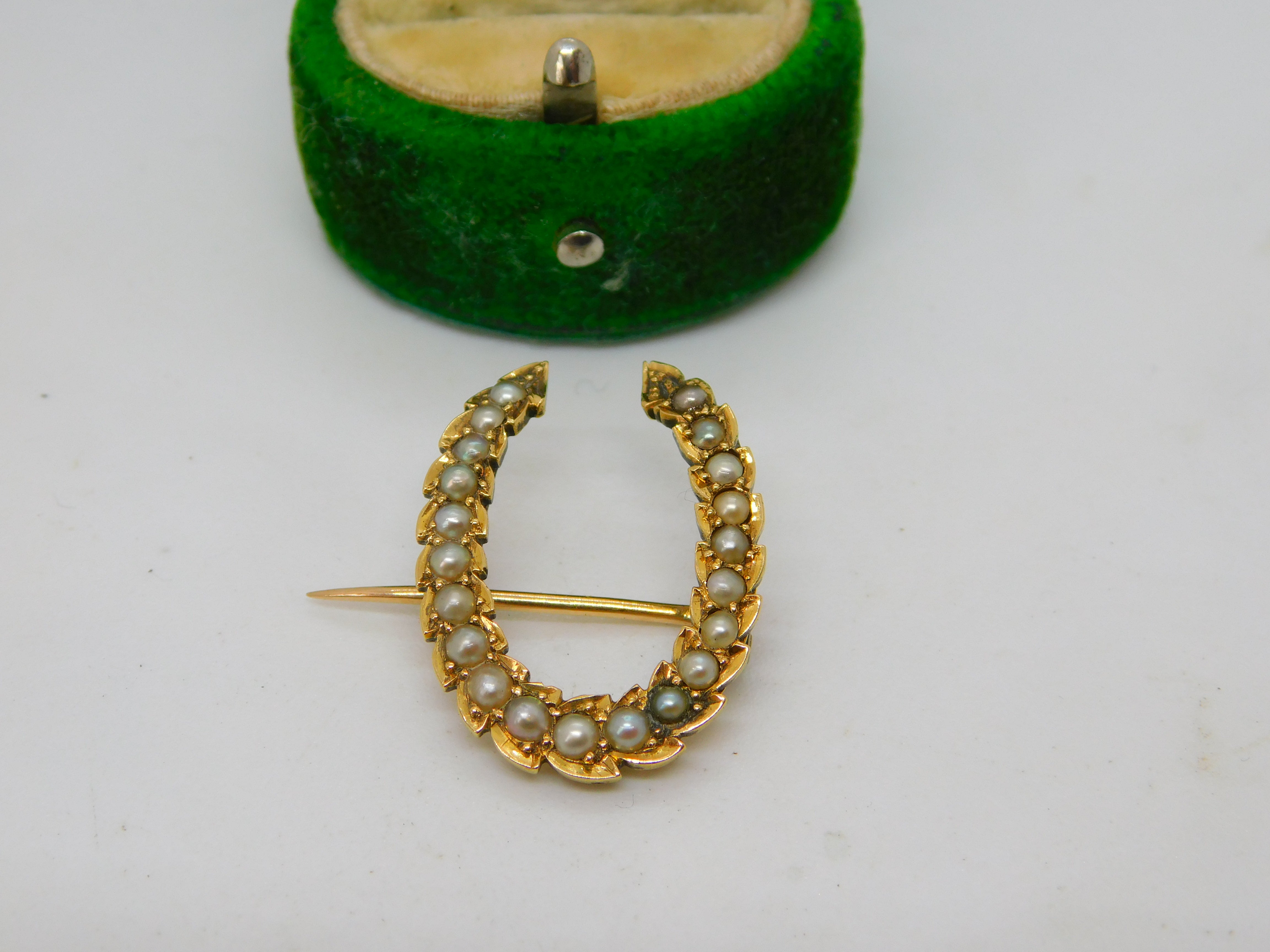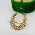 Victorian 18ct Yellow Gold & Seed Pearl Set Horseshoe Brooch Antique c1860