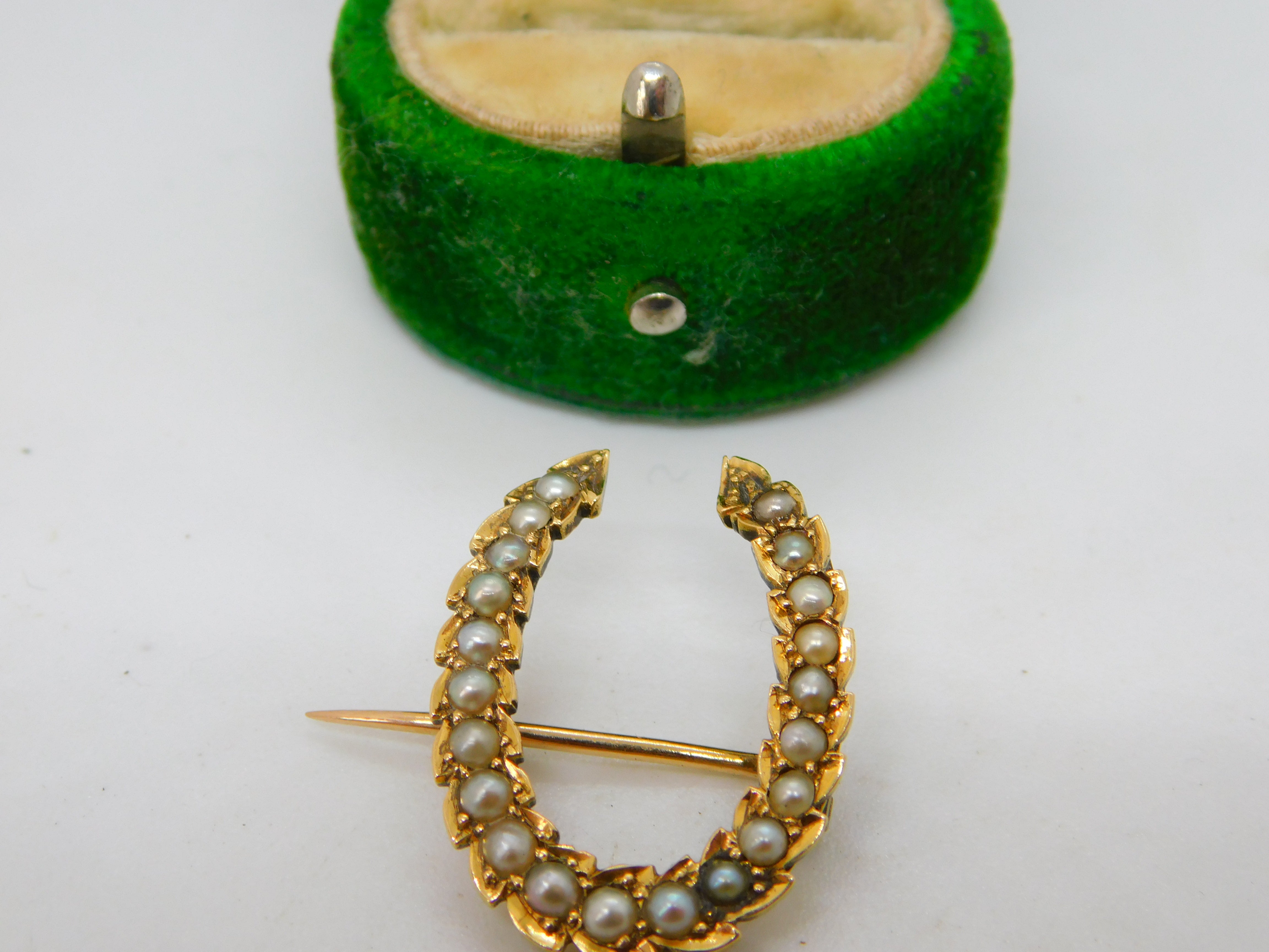 Details: A fantastic and wonderfully designed antique Victorian 18ct yellow gold horseshoe brooch set with seed pearls throughout c1860. This is a wonderful item that would make a perfect gift or addition to any collection. The BOX pictured is for PRESENTATION ONLY and is NOT included in the listings but used to frame the pictures unless specifically stated otherwise.