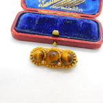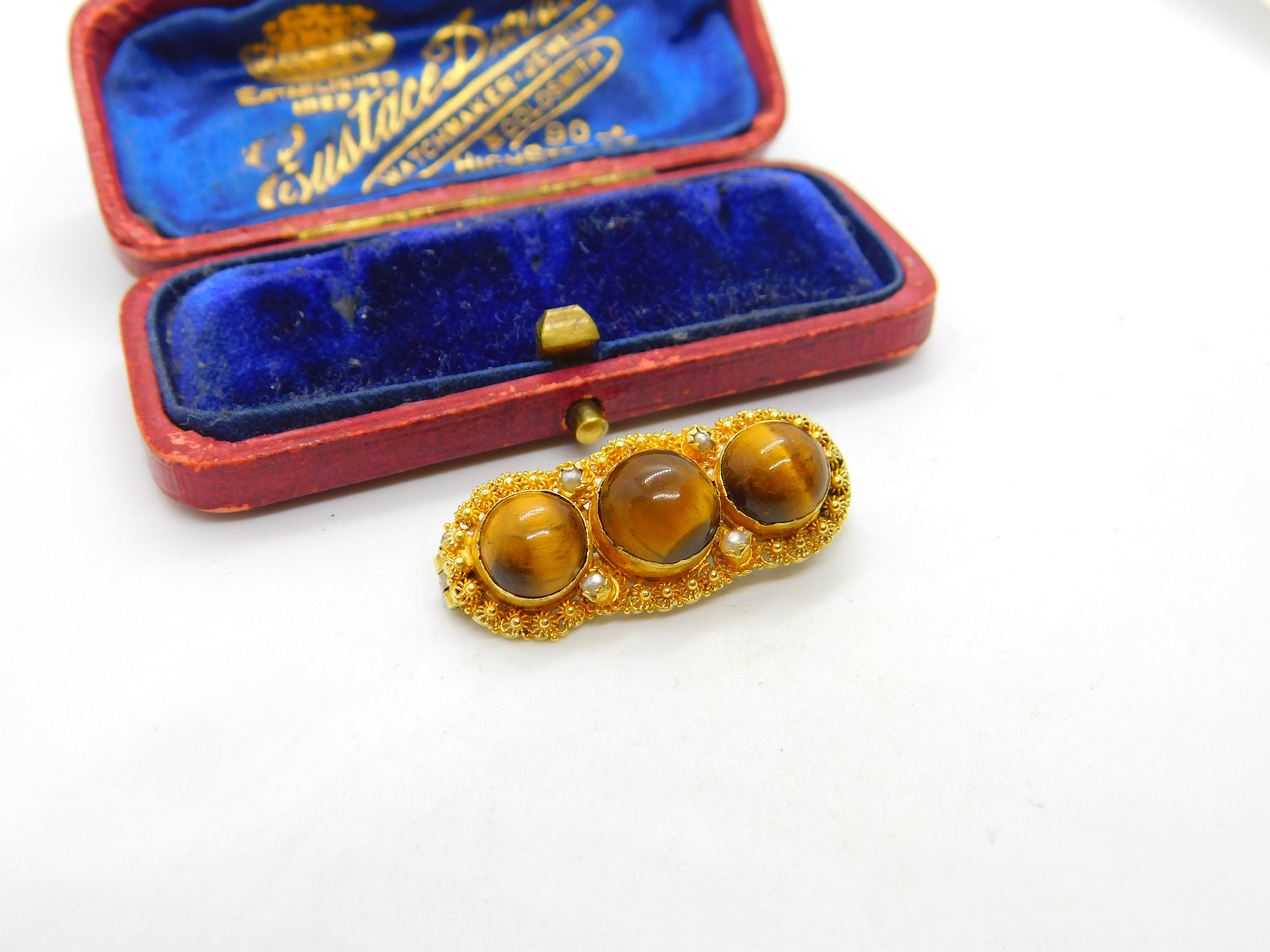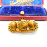 Victorian 22ct Gold Cannetille Tiger's Eye & Seed Pearl Sweetheart Brooch c1840