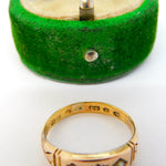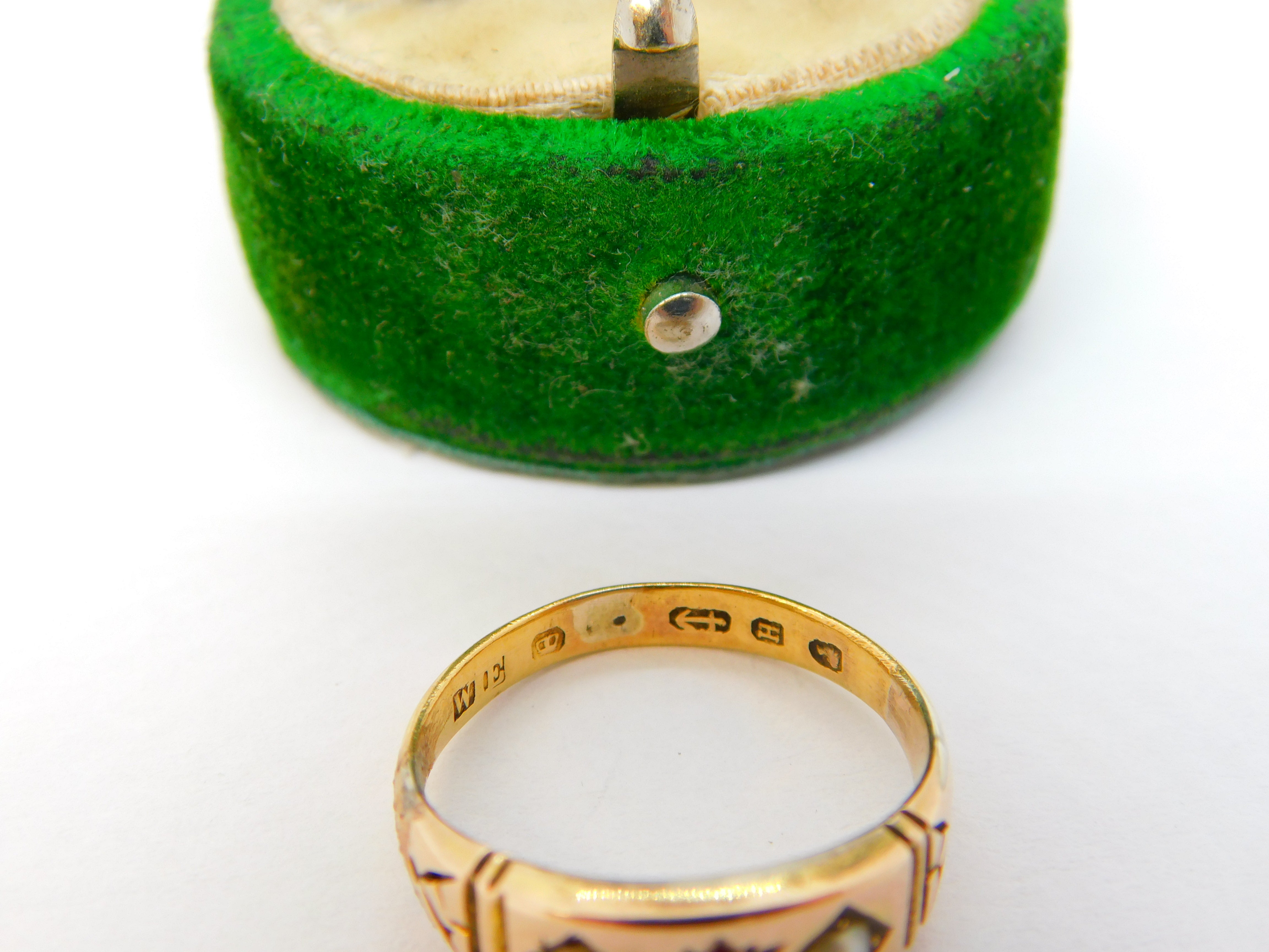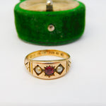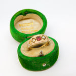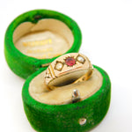 Victorian 22ct Yellow Gold, Garnet & Seed Pearl Boat Ring Antique 1857 Birmingham