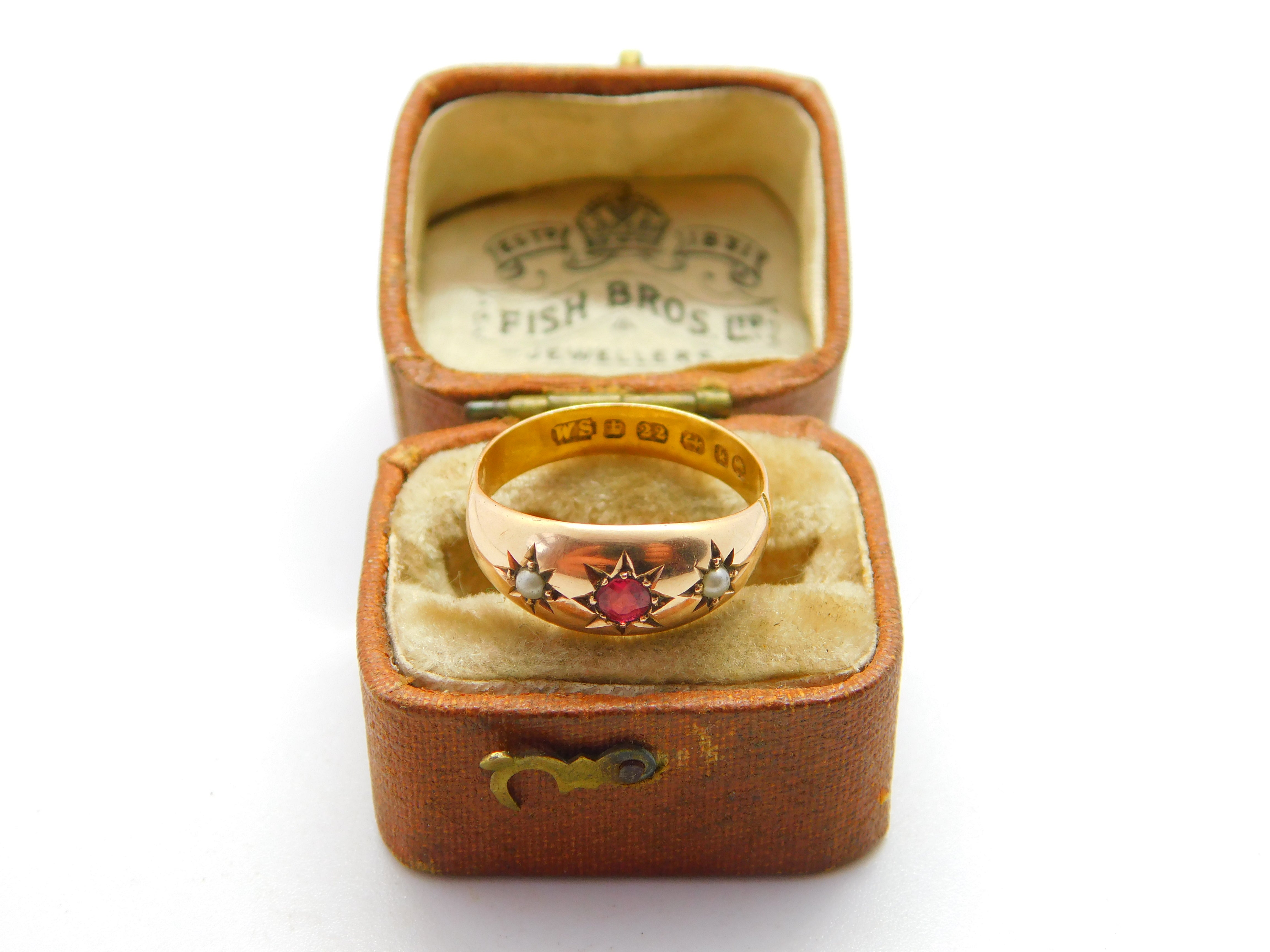 Details: A fantastic and wonderfully designed antique Victorian 22ct yellow gold boat ring set with a central ruby flanked by seed pearls hallmarked Birmingham 1884 by William Spurrier. The stones have been tested. This is a wonderful item that would make a perfect gift or addition to any collection. The BOX pictured is for PRESENTATION ONLY and is NOT included in the listings but used to frame the pictures unless specifically stated otherwise.