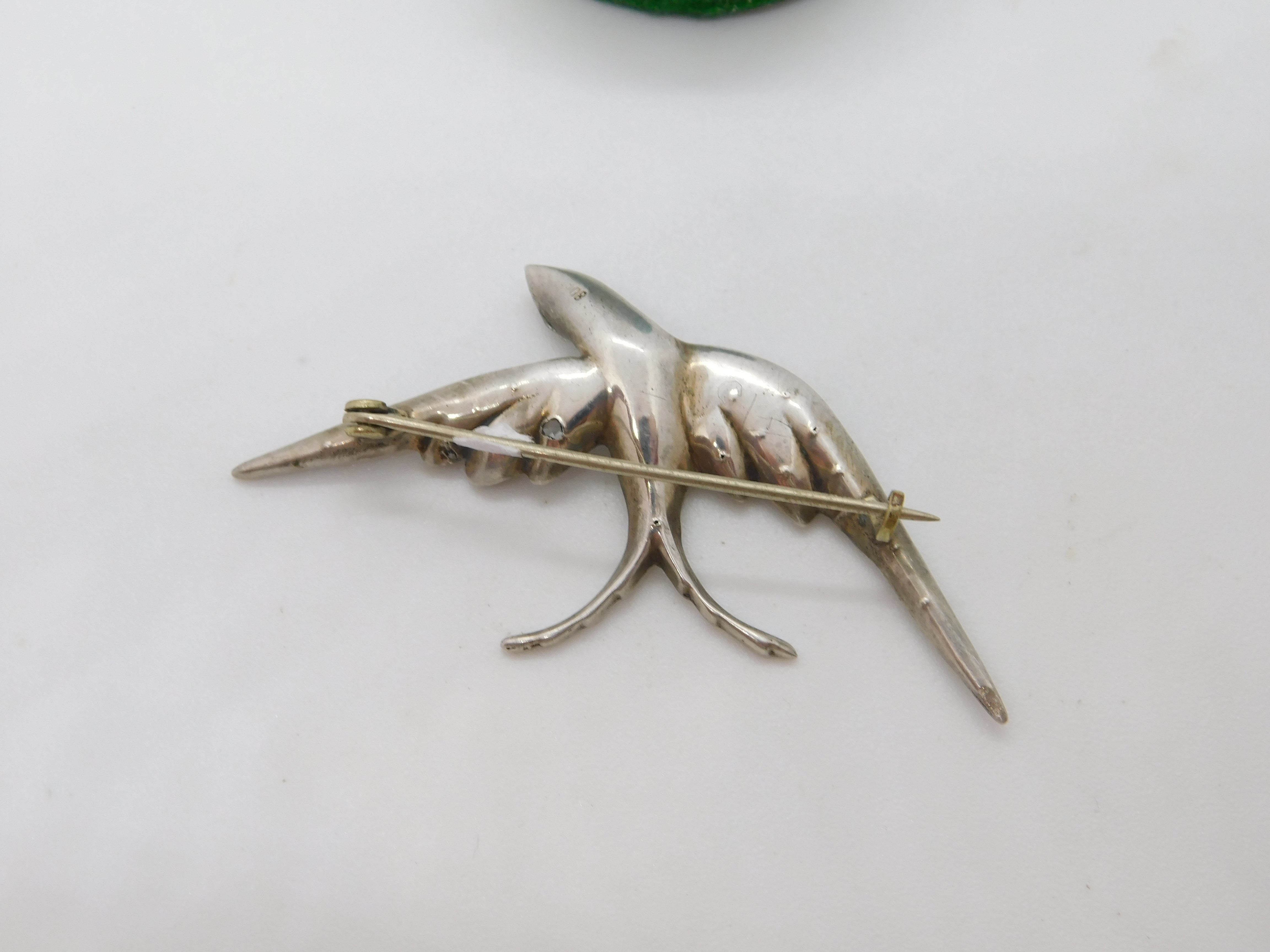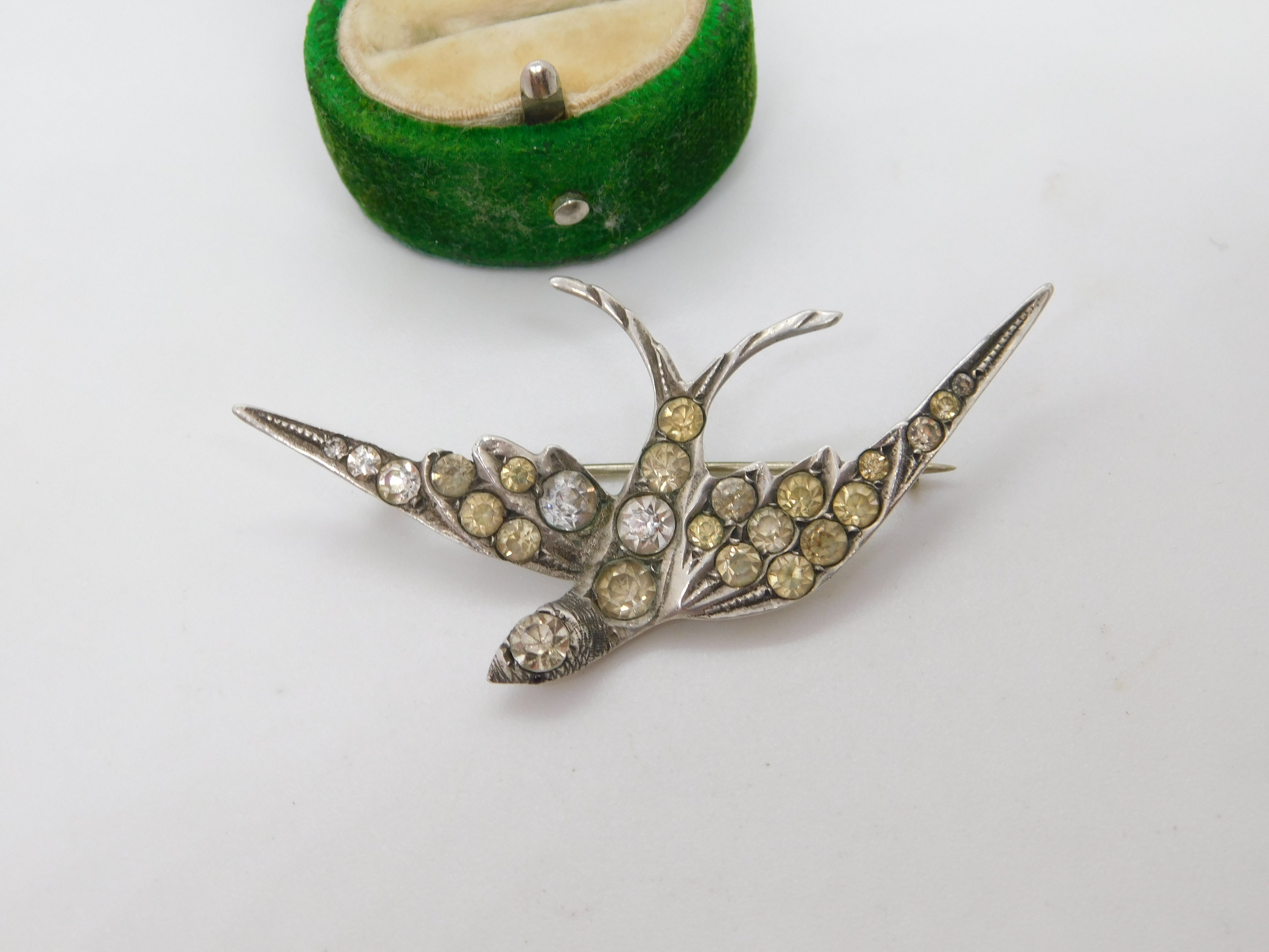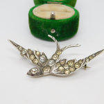Victorian .800 Silver & Paste Set Swallow Sweetheart Brooch Antique c1900