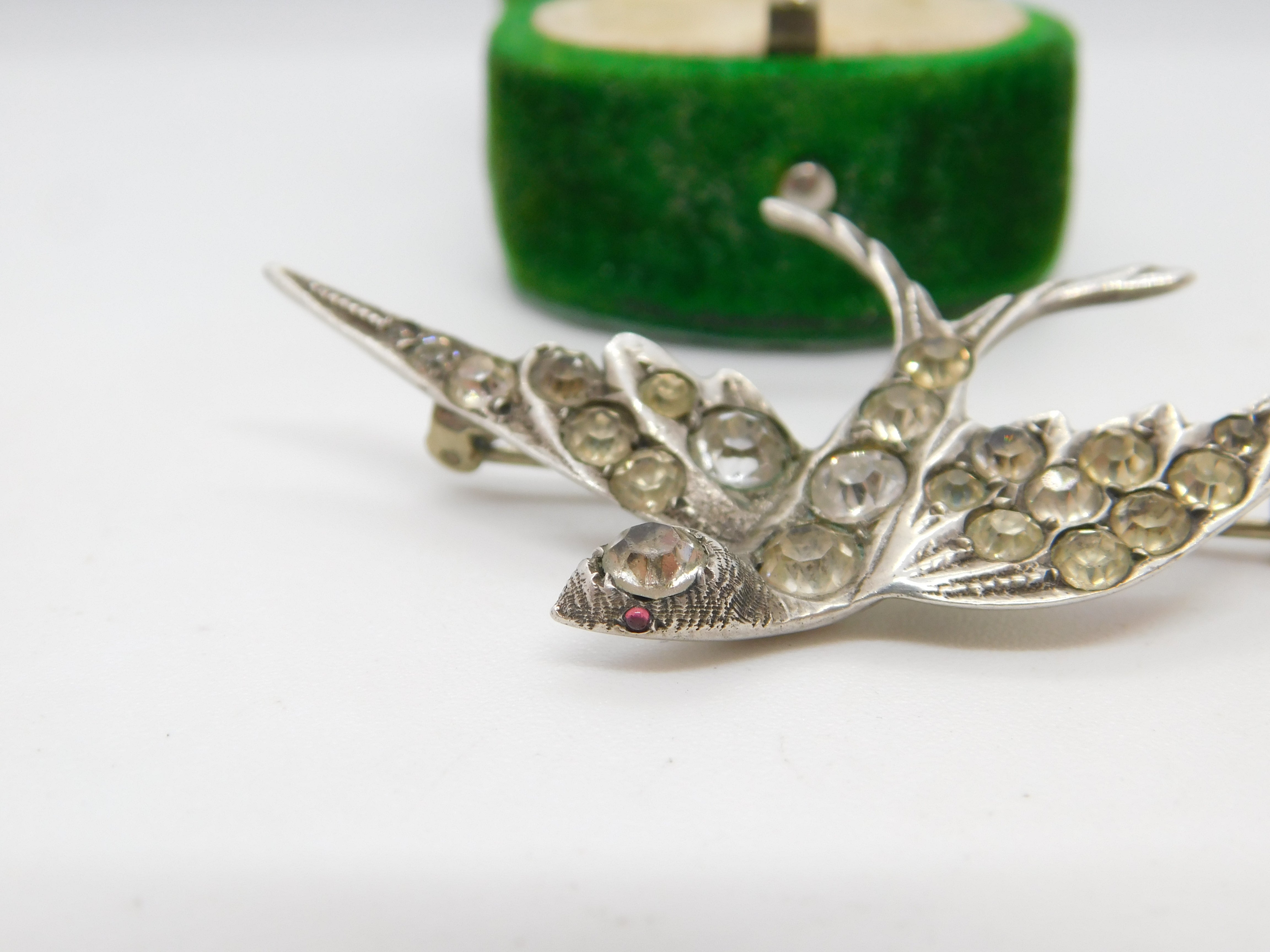 Details: A fantastic and wonderfully designed antique Victorian .800 grade silver and paste set swallow bird sweetheart brooch with lovely detailing hallmarked to the reverse c1900. This is a wonderful item that would make a perfect gift or addition to any collection. The BOX pictured is for PRESENTATION ONLY and is NOT included in the listings but used to frame the pictures unless specifically stated otherwise.
