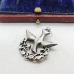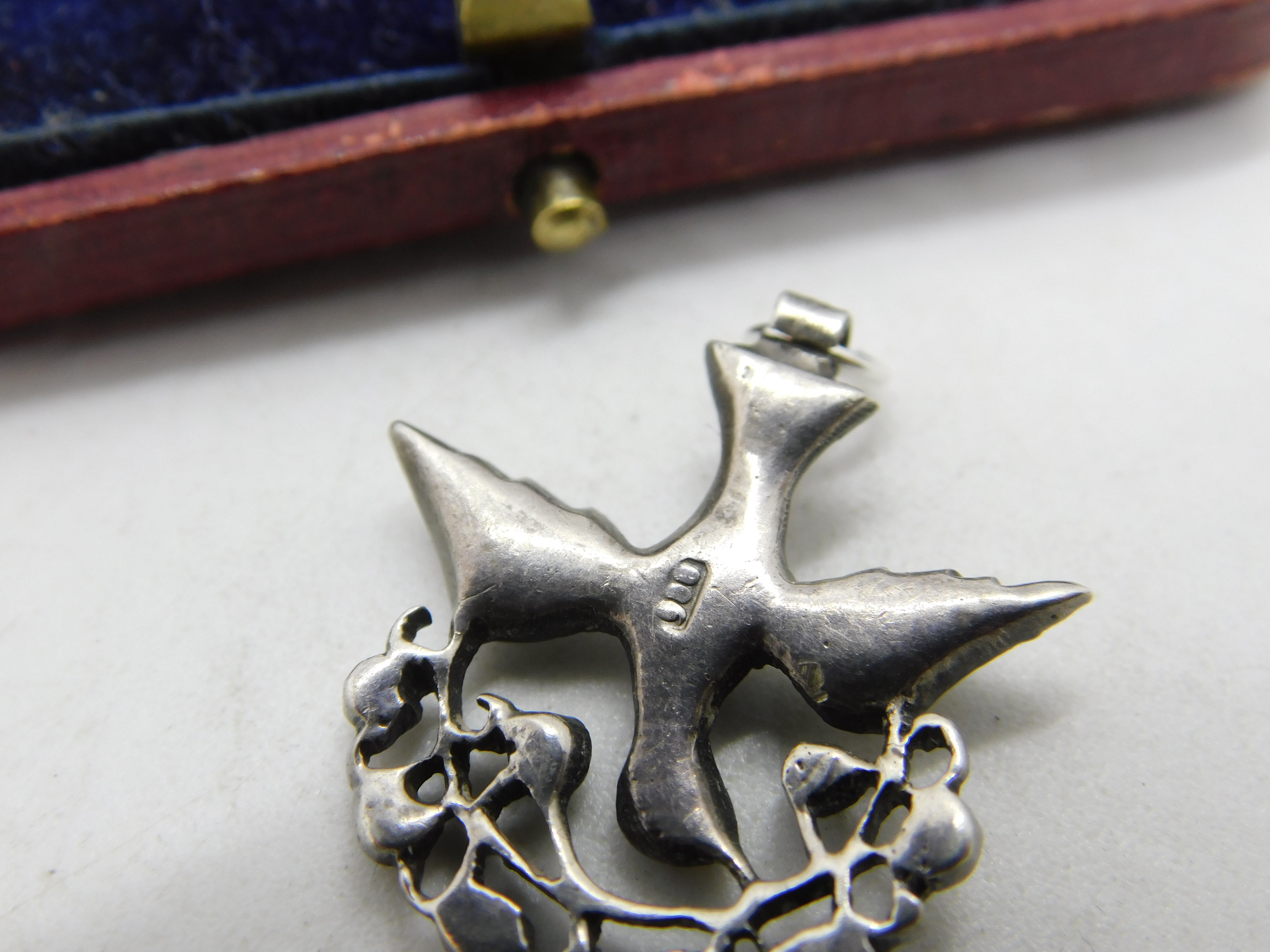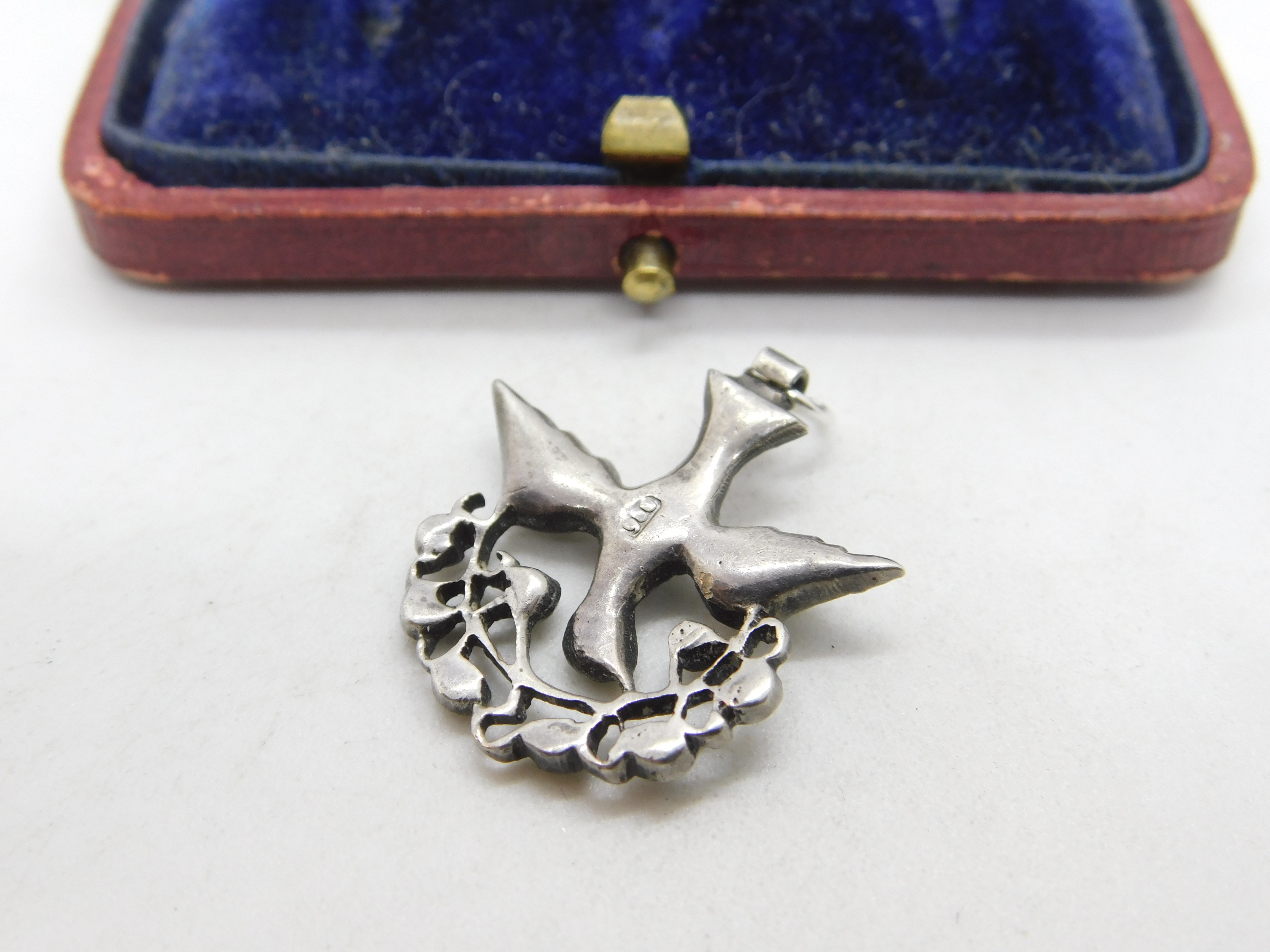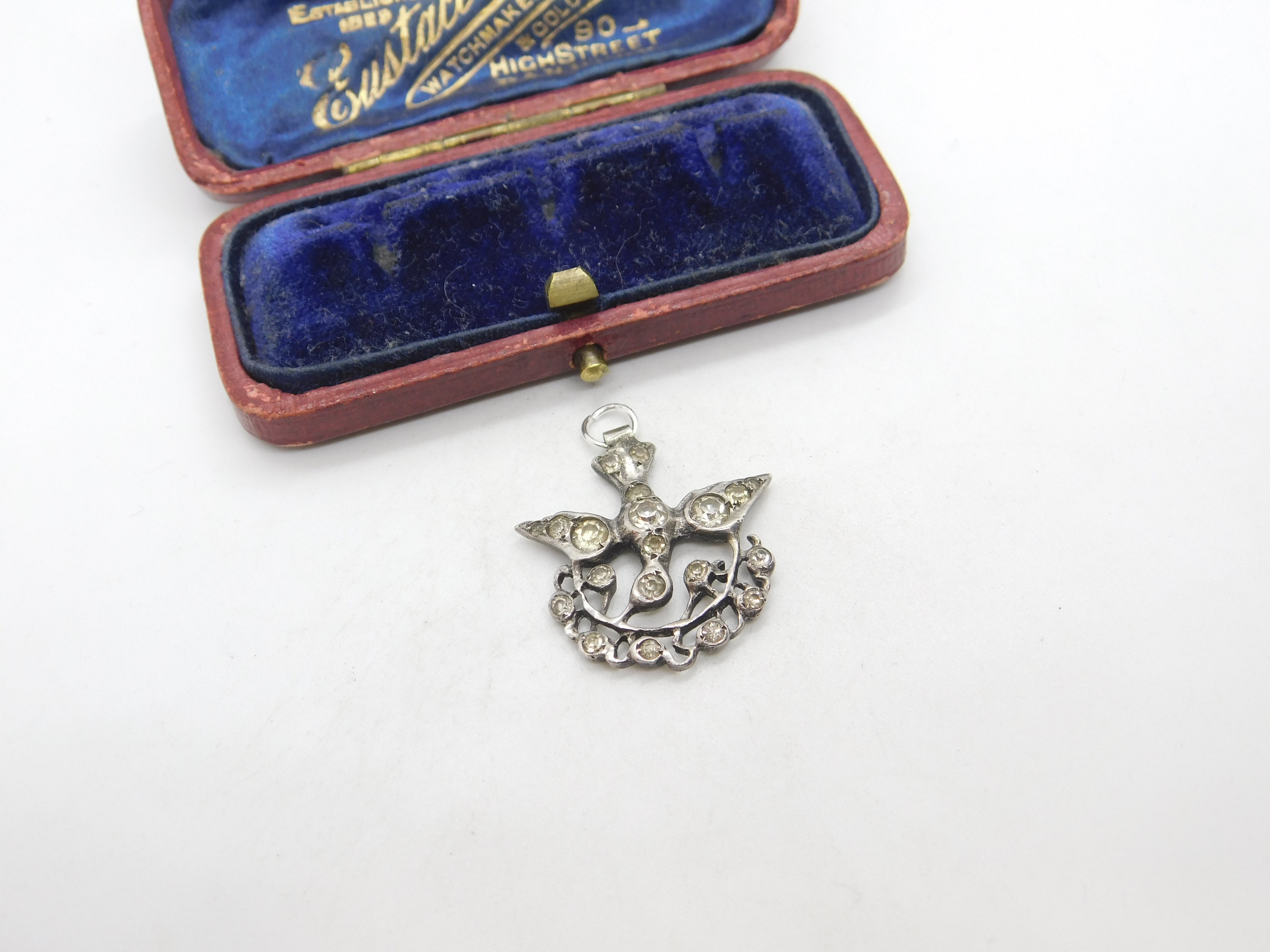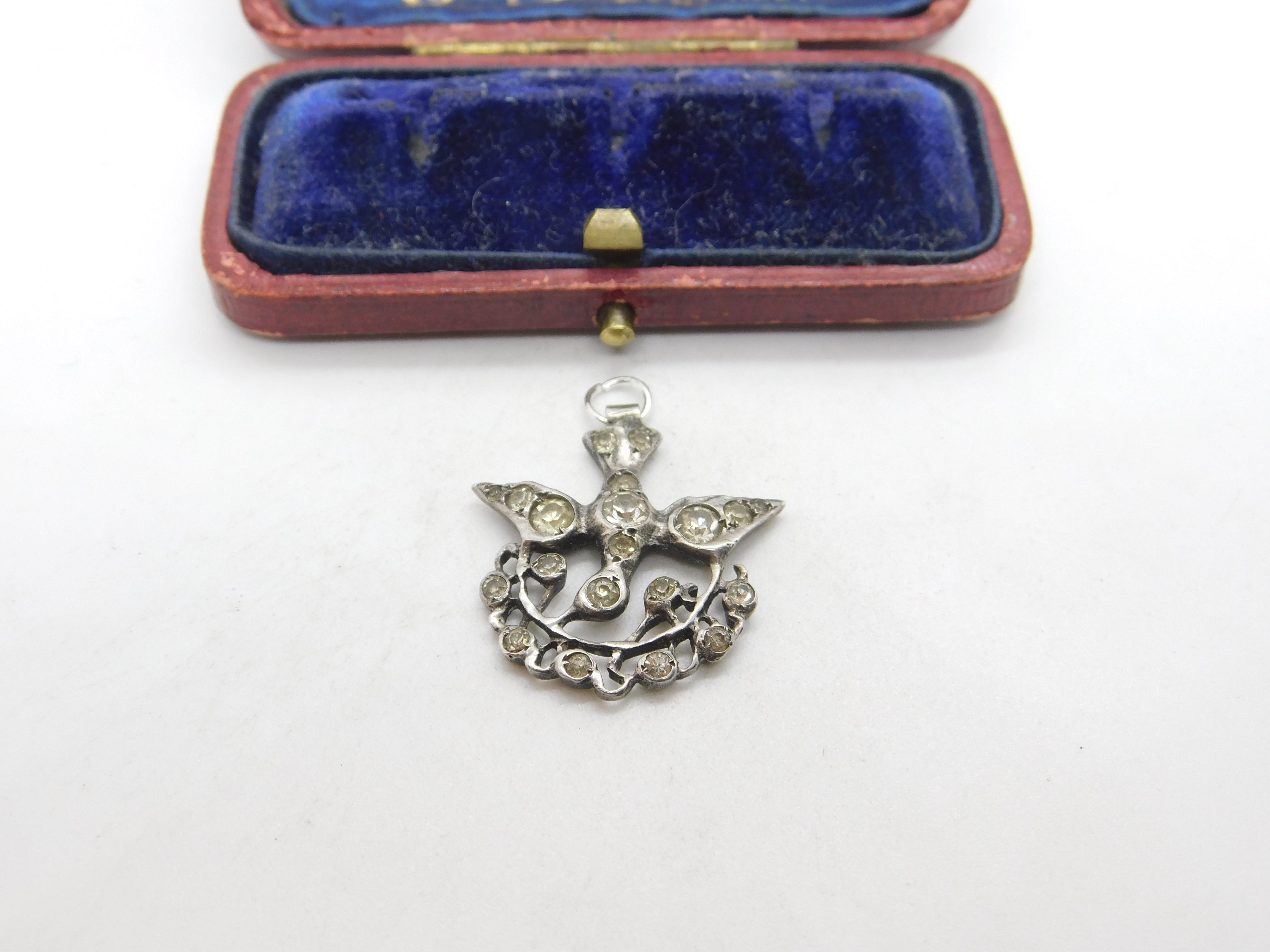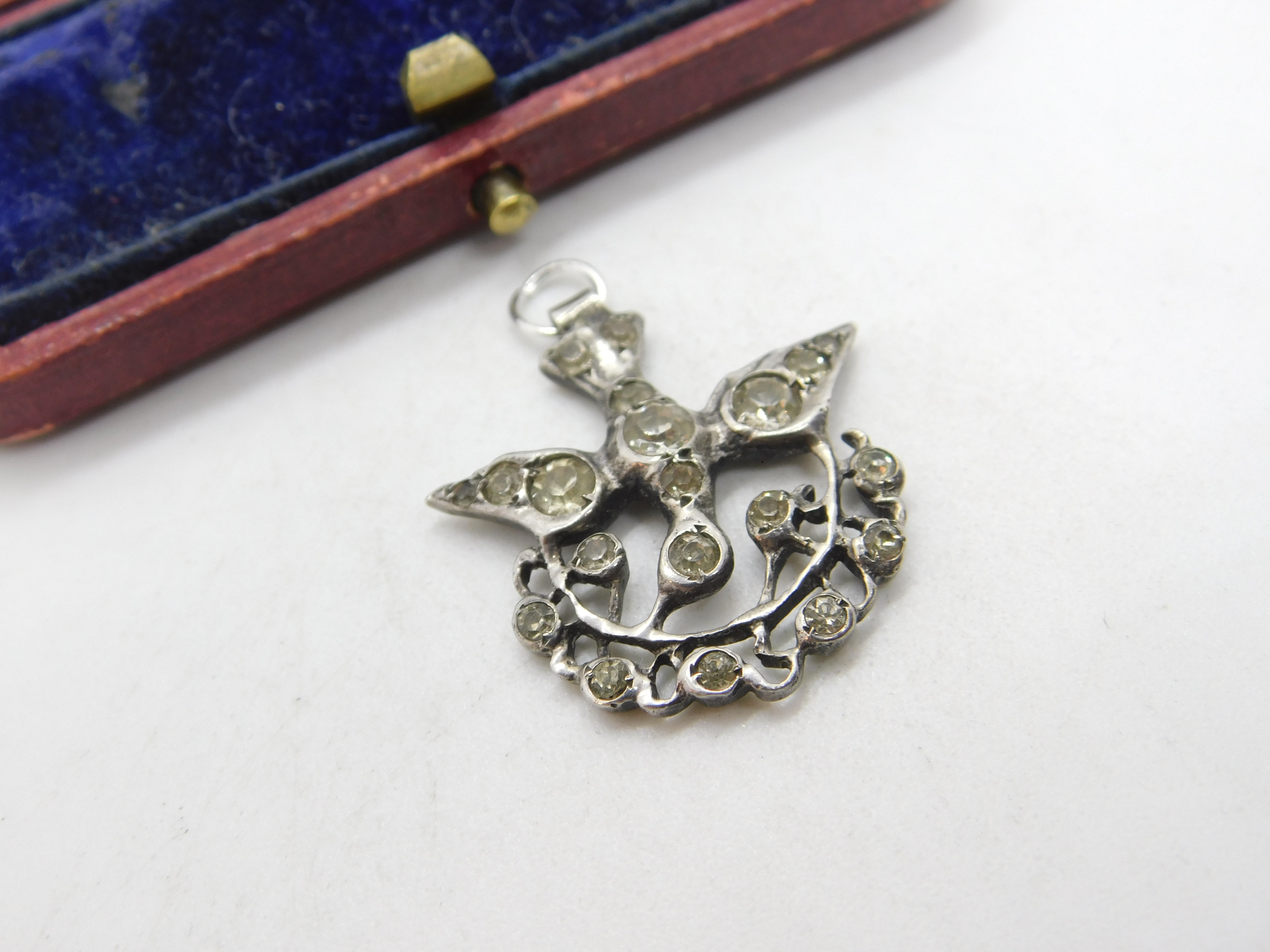 Victorian 900 Silver & Diamond Paste Swallow Sweetheart Pendant c1860