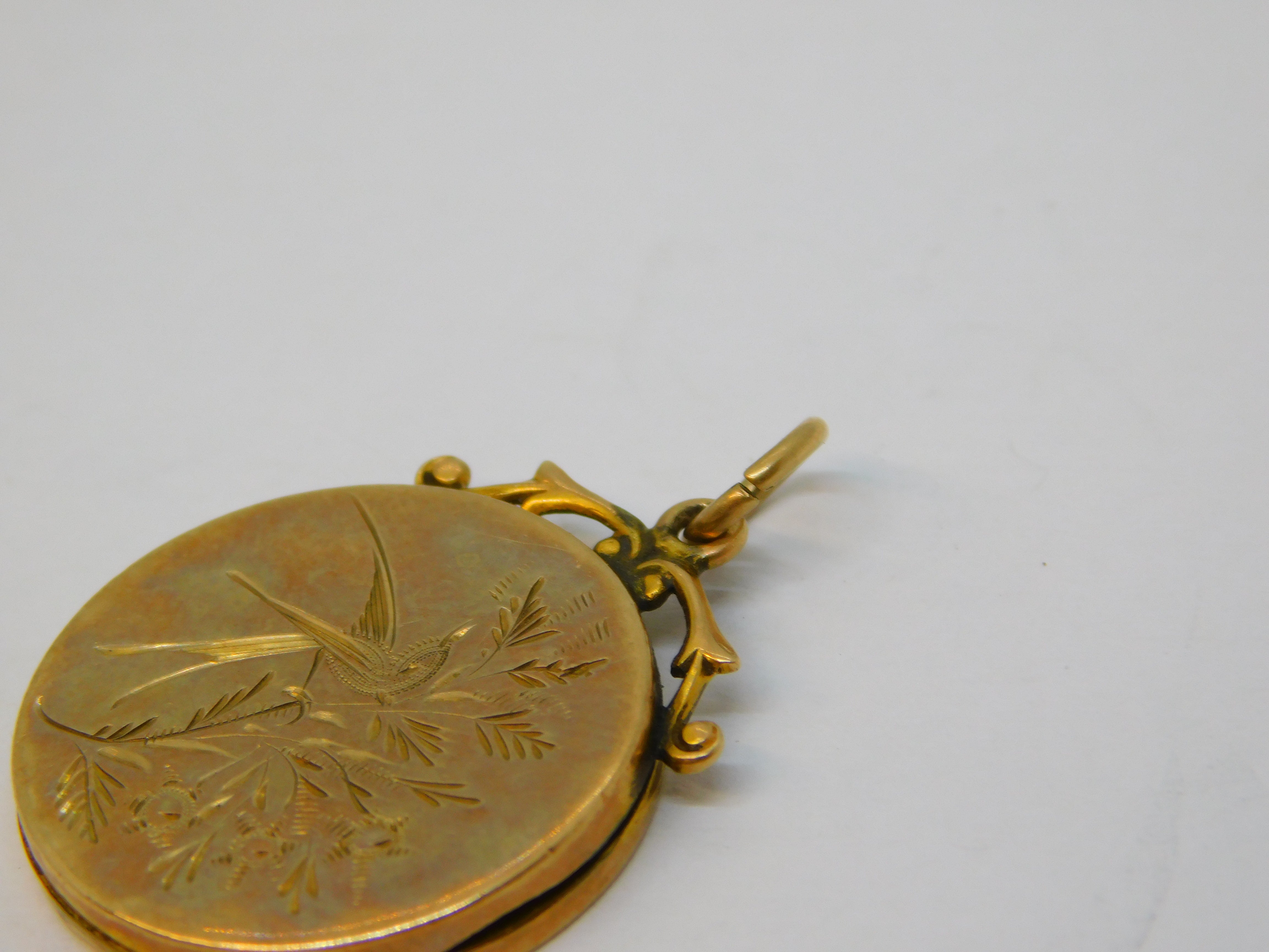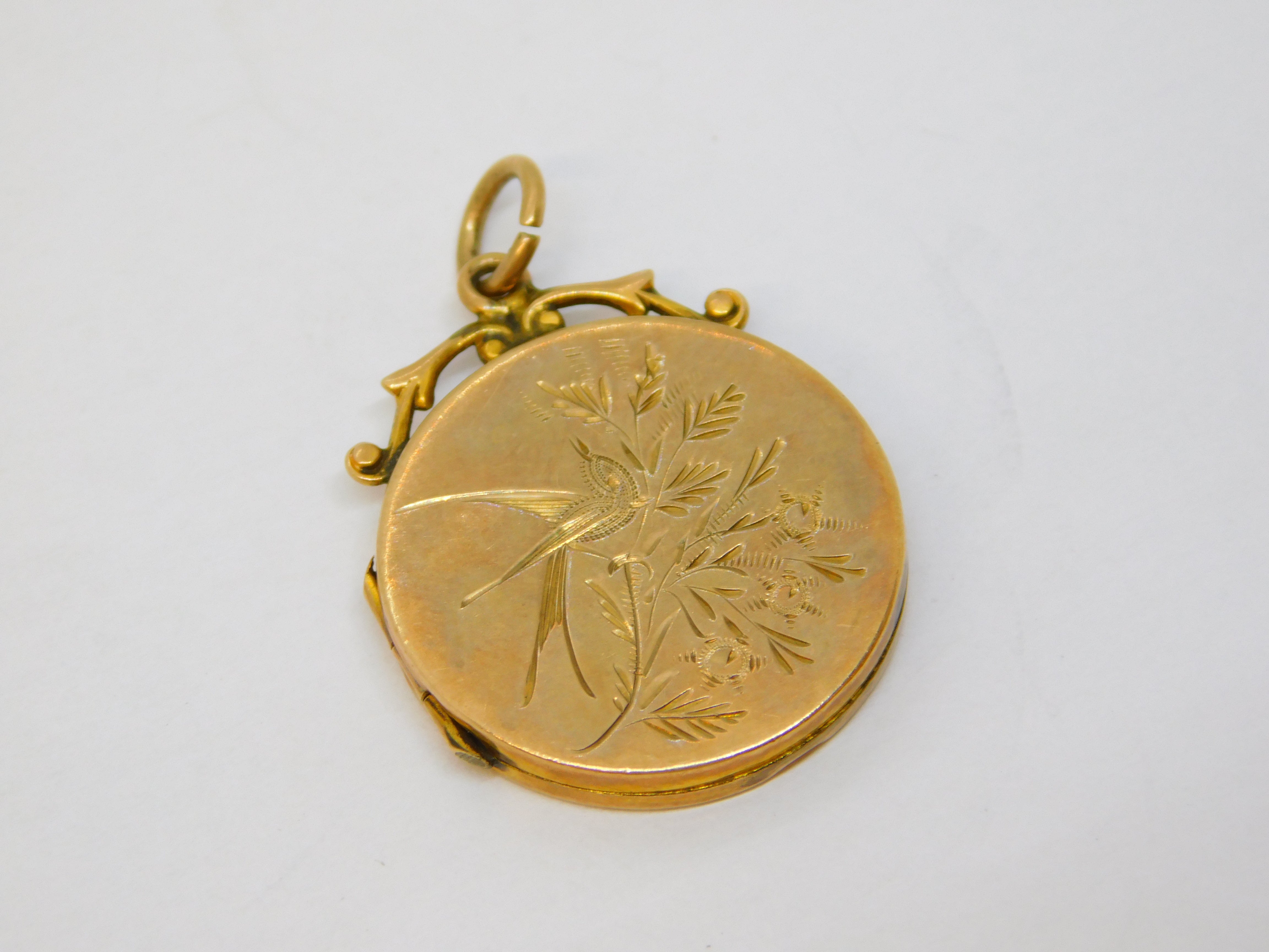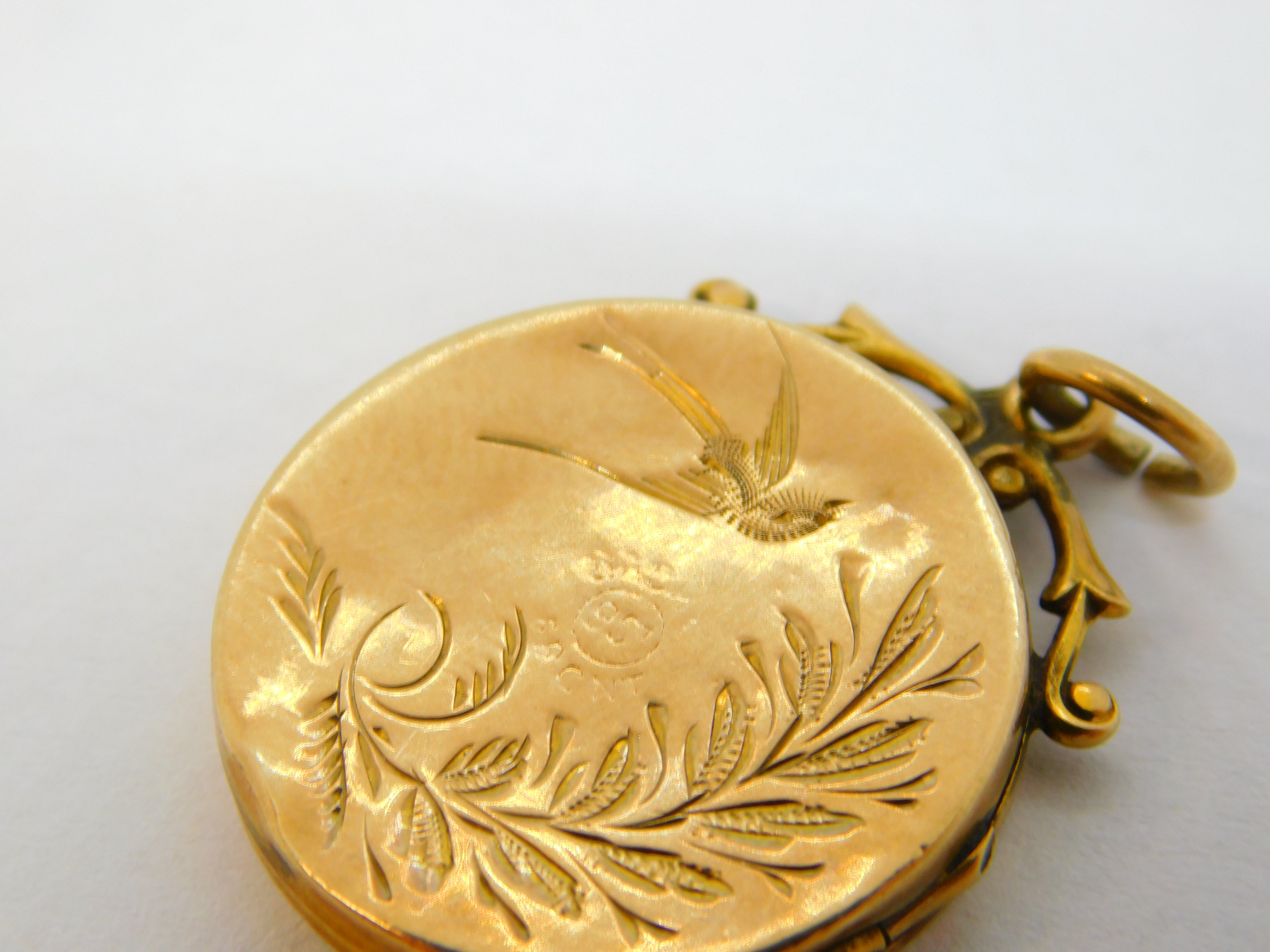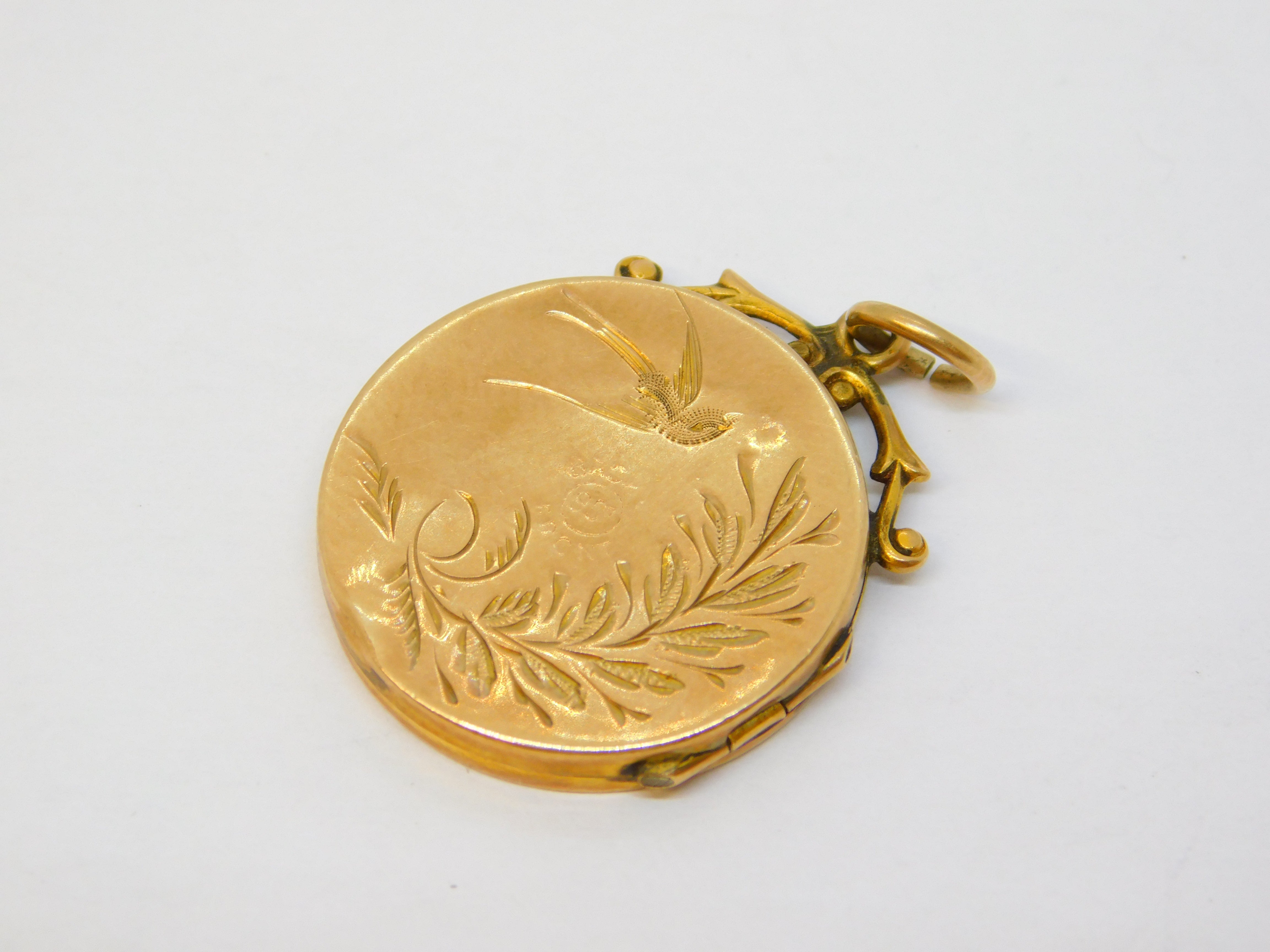 Victorian 9ct Gold Back & Front Aesthetic Swallow Locket Pendant Antique c1880