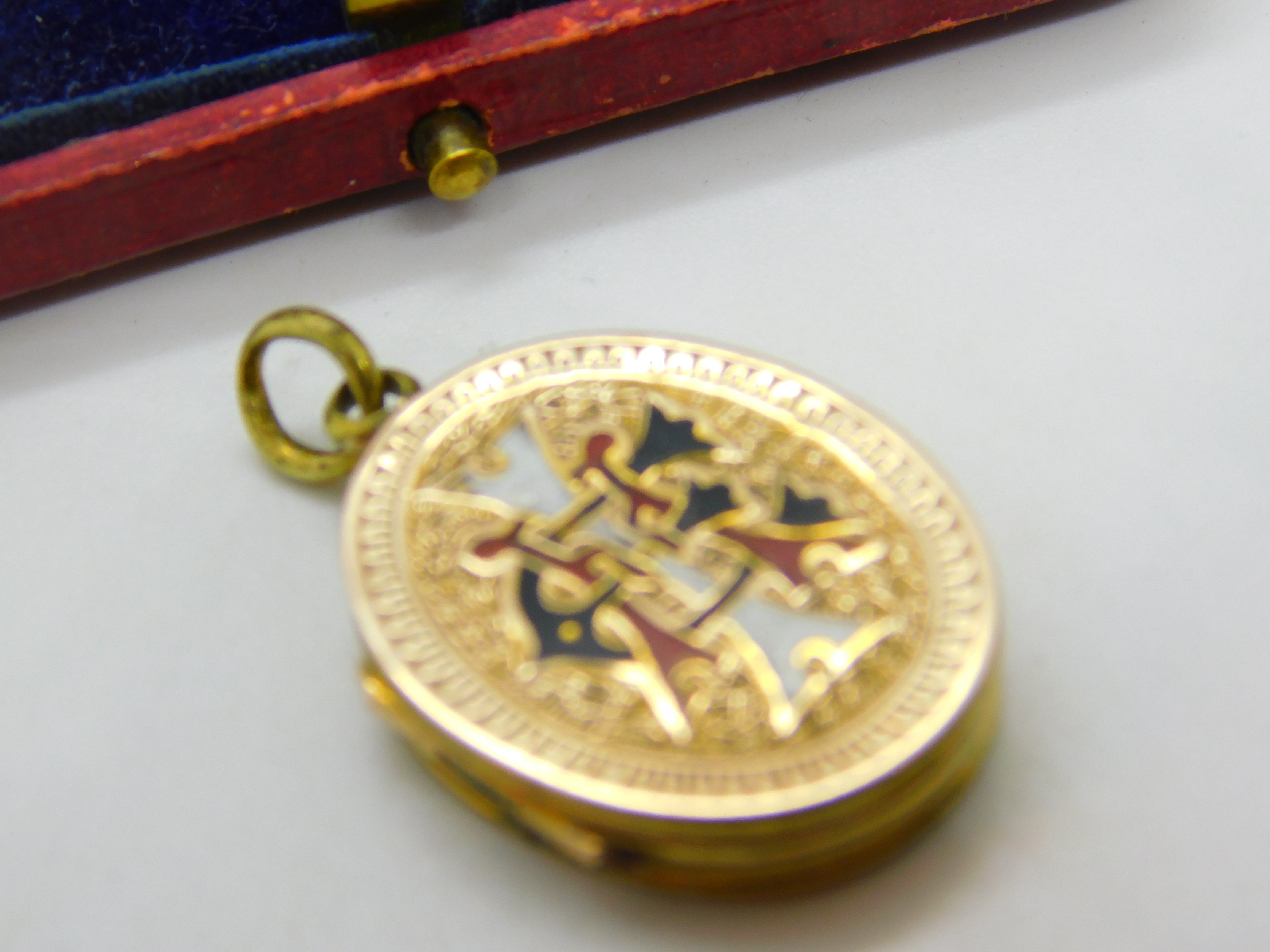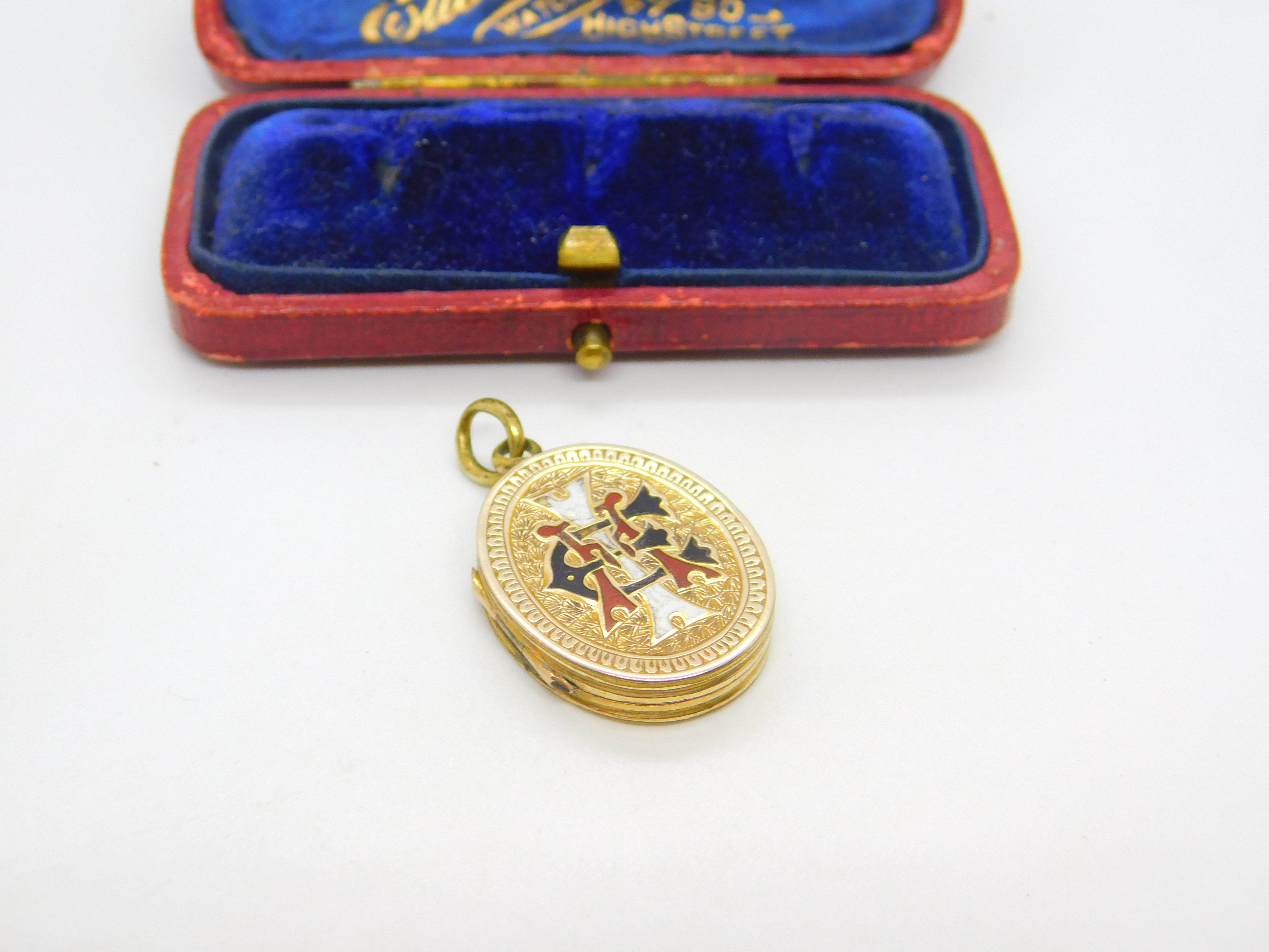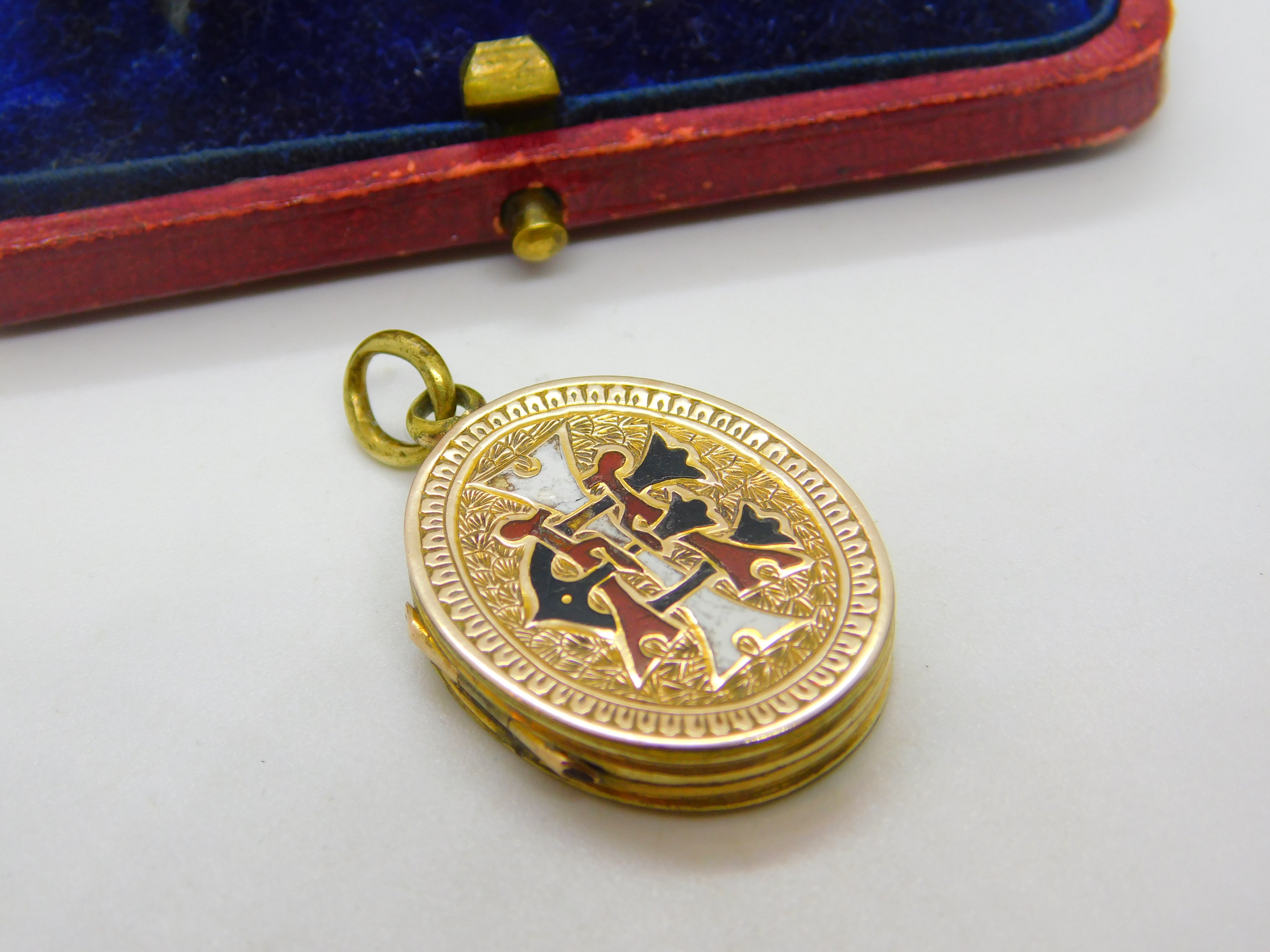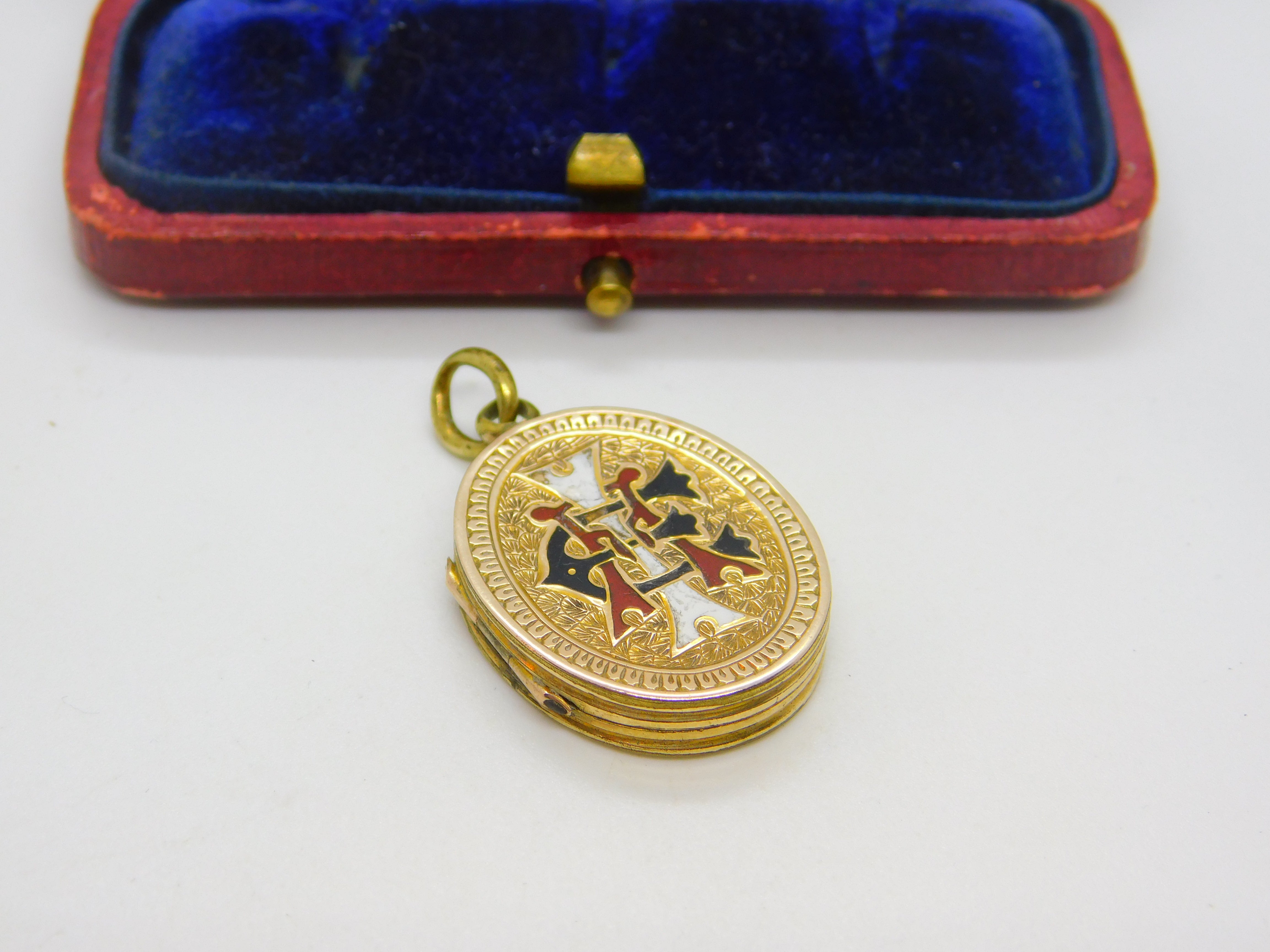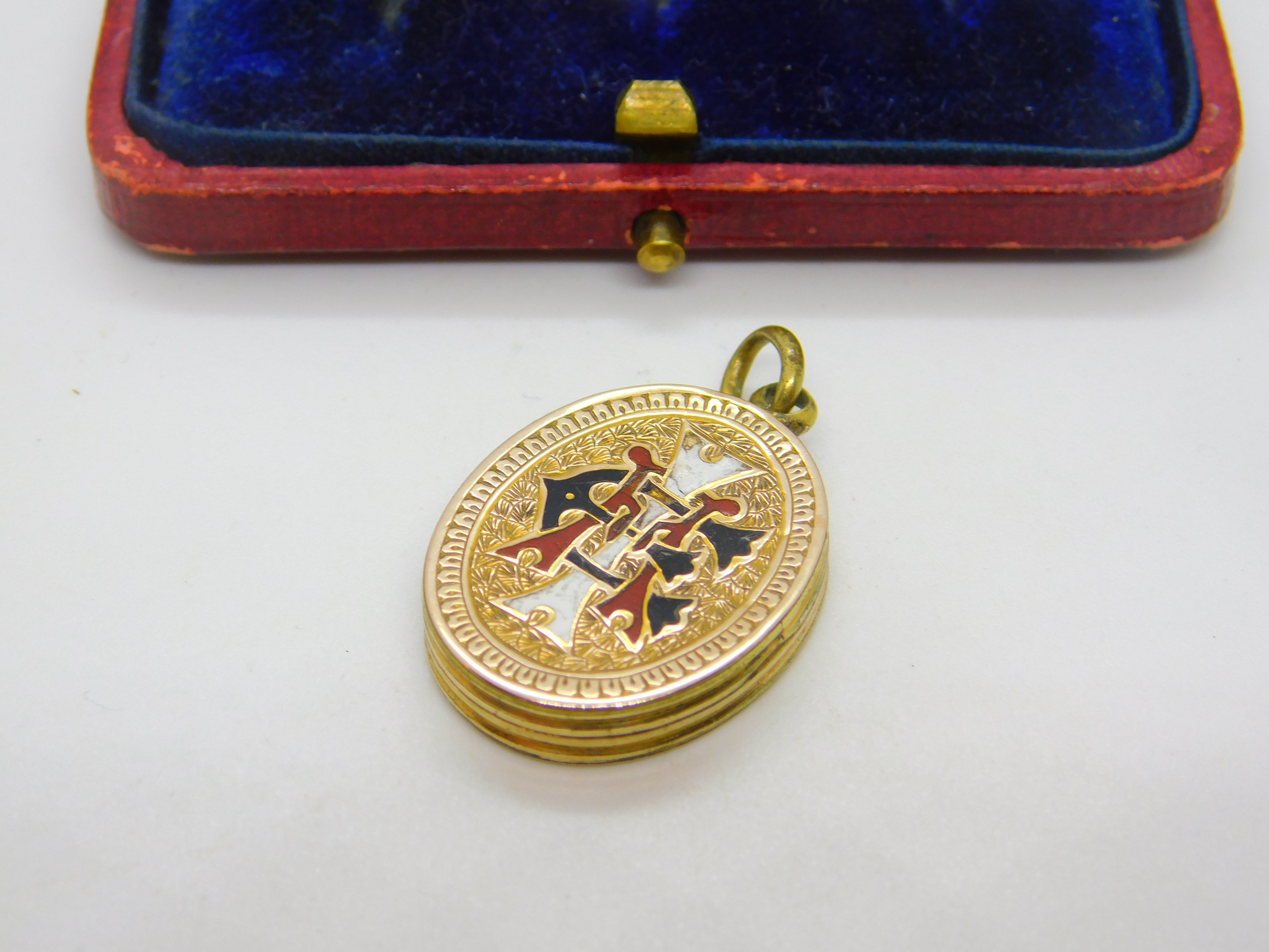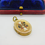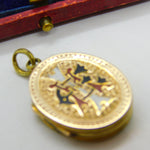 Victorian 9ct Gold Back & Front Colourful Enamel Monogram Locket c1890 Antique