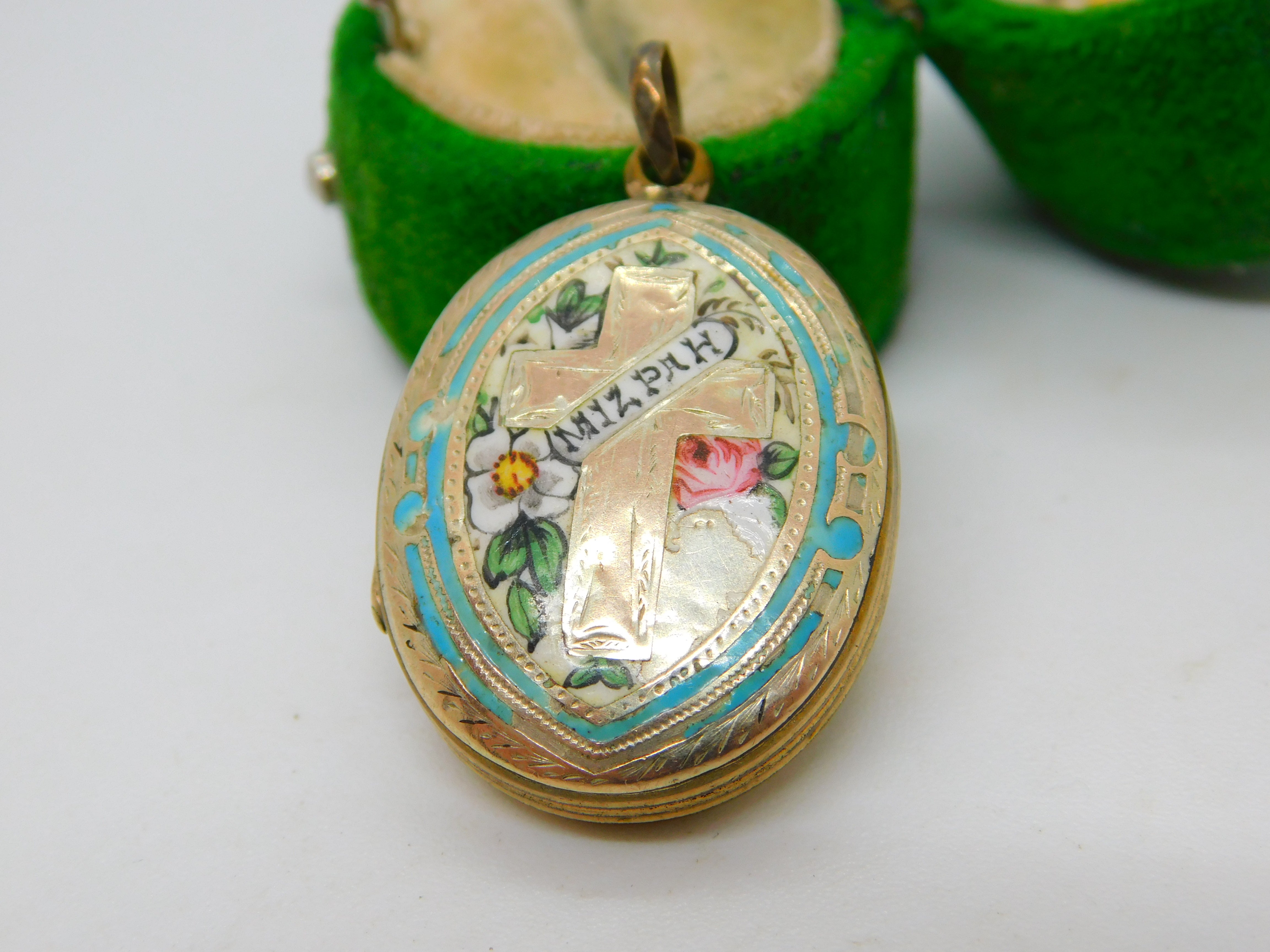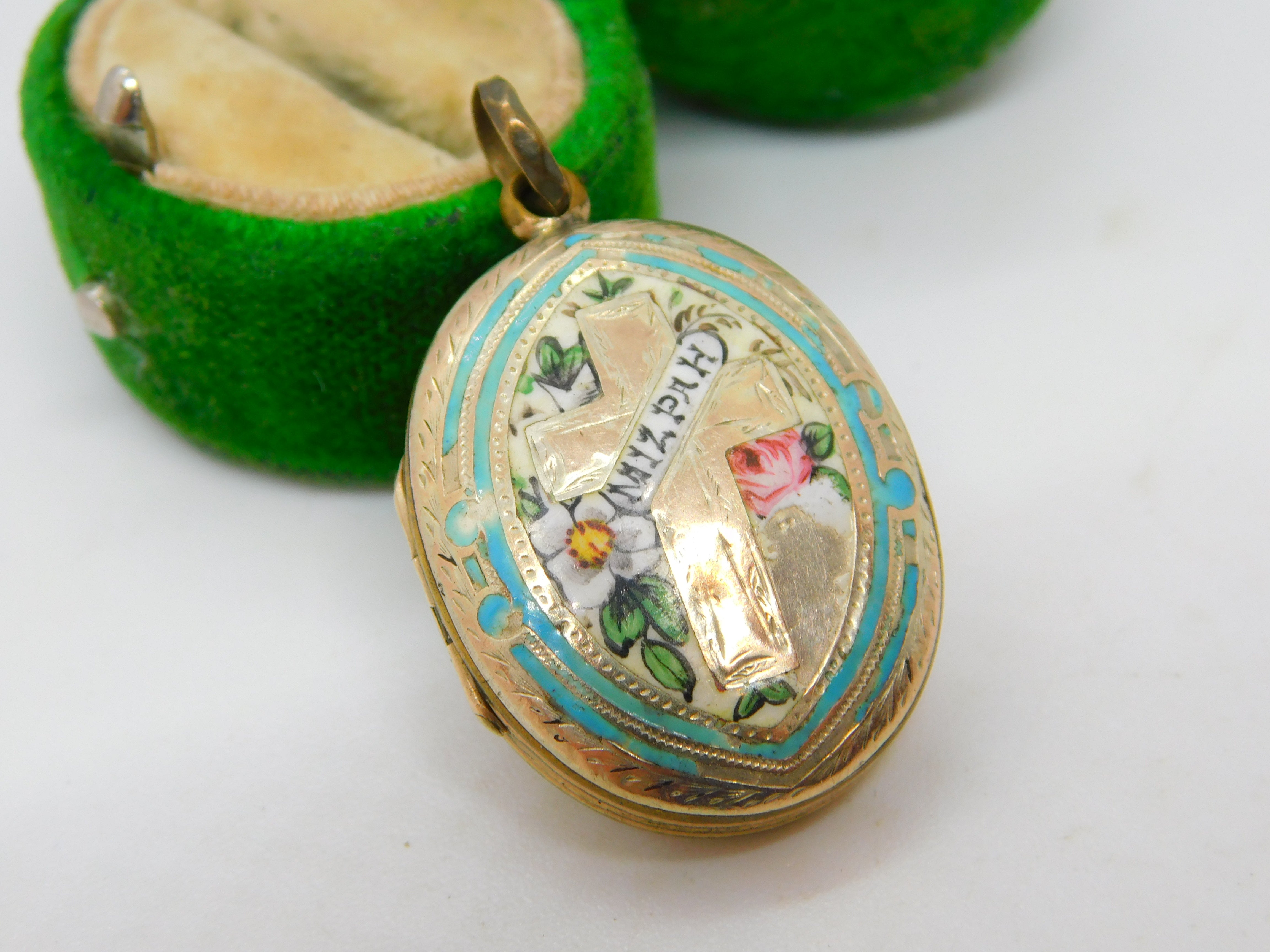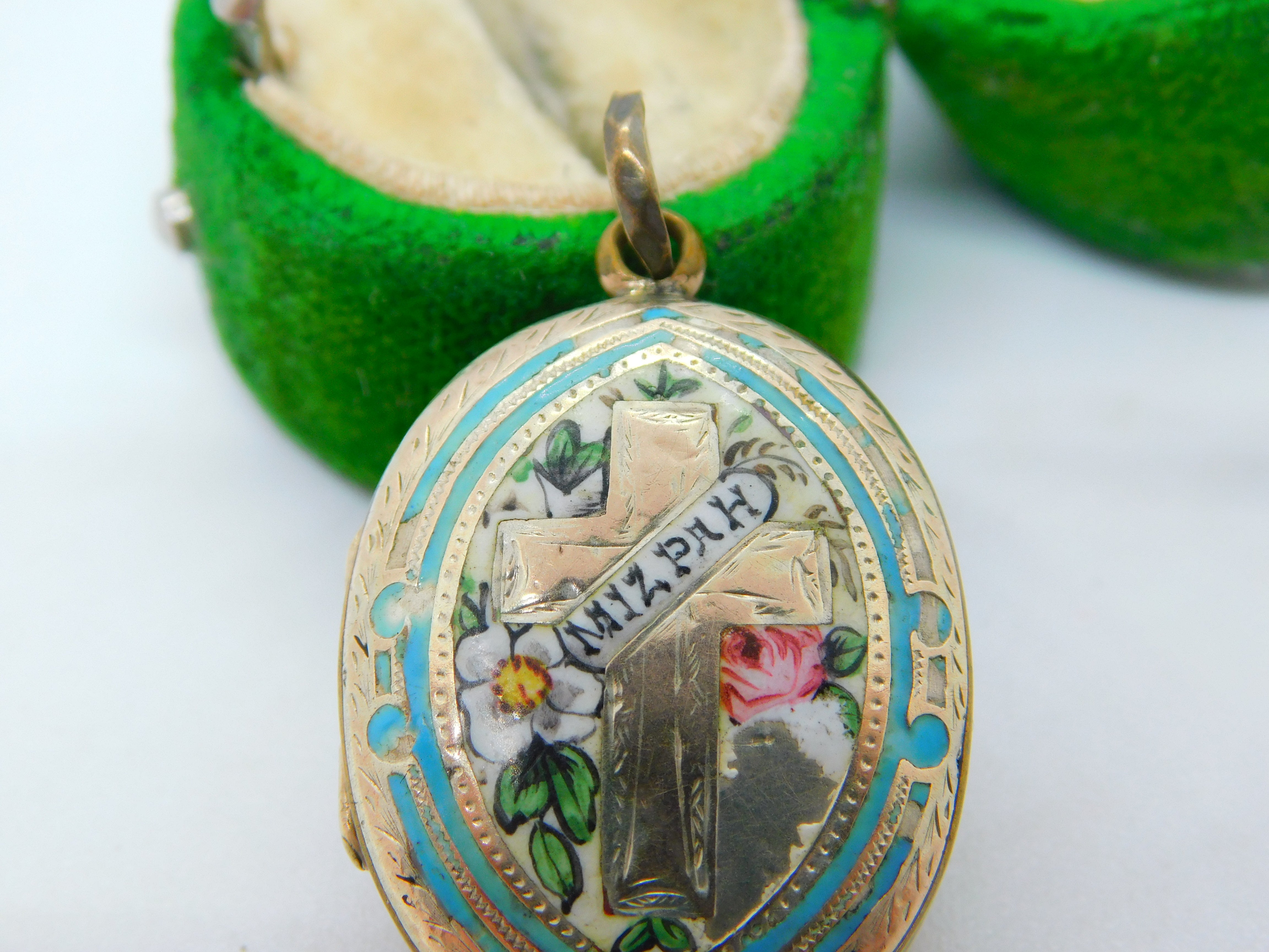 Details: A fantastic and wonderfully designed antique Victorian 9ct yellow gold back & front colorful enamel Mizpah sweetheart locket with charming detailing c1860, the gold has been XRF tested as it is unmarked. This is a wonderful item that would make a perfect gift or addition to any collection. The BOX pictured is for PRESENTATION ONLY and is NOT included in the listings but used to frame the pictures unless specifically stated otherwise.