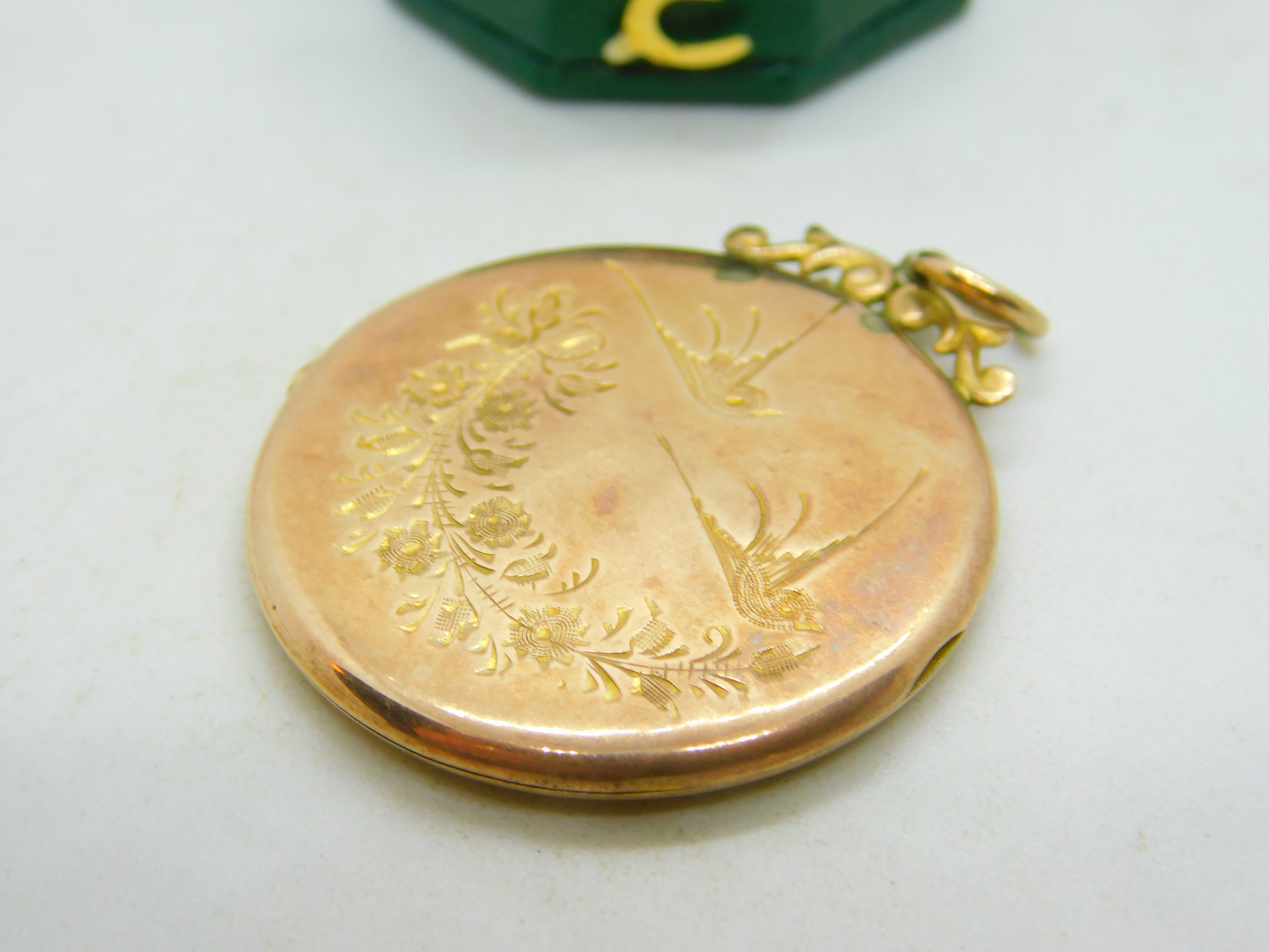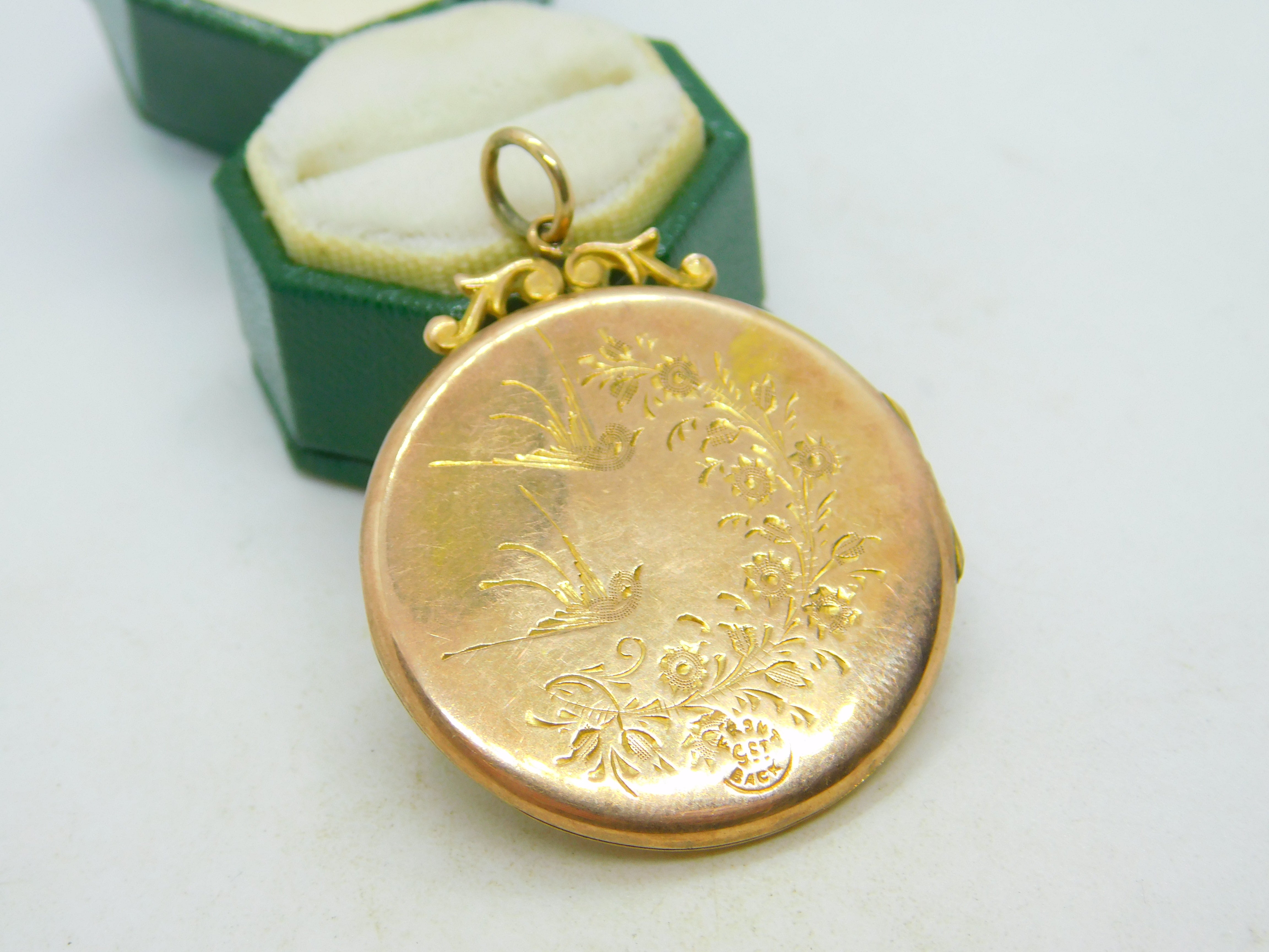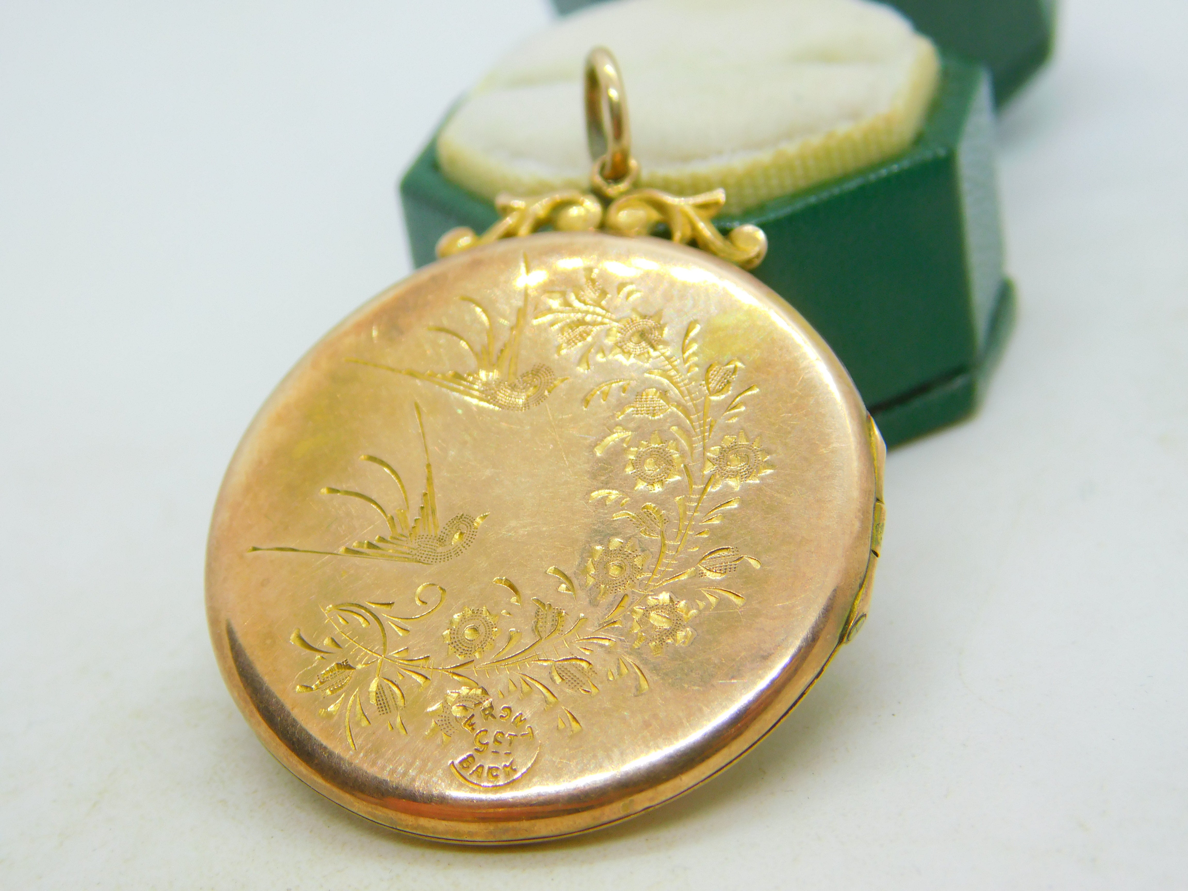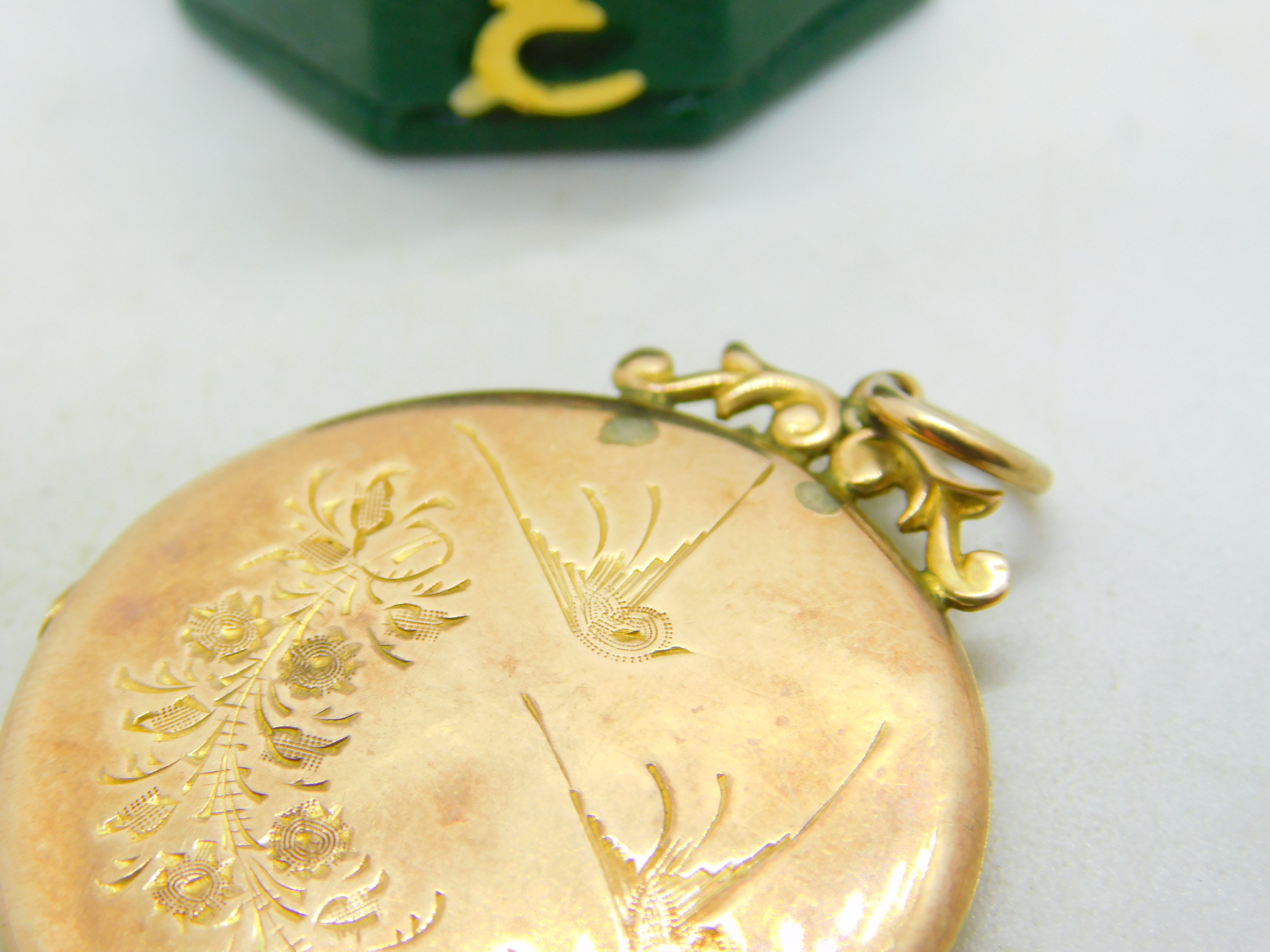 Victorian 9ct Gold Back & Front Swallow Pattern Locket Pendant Antique c1900