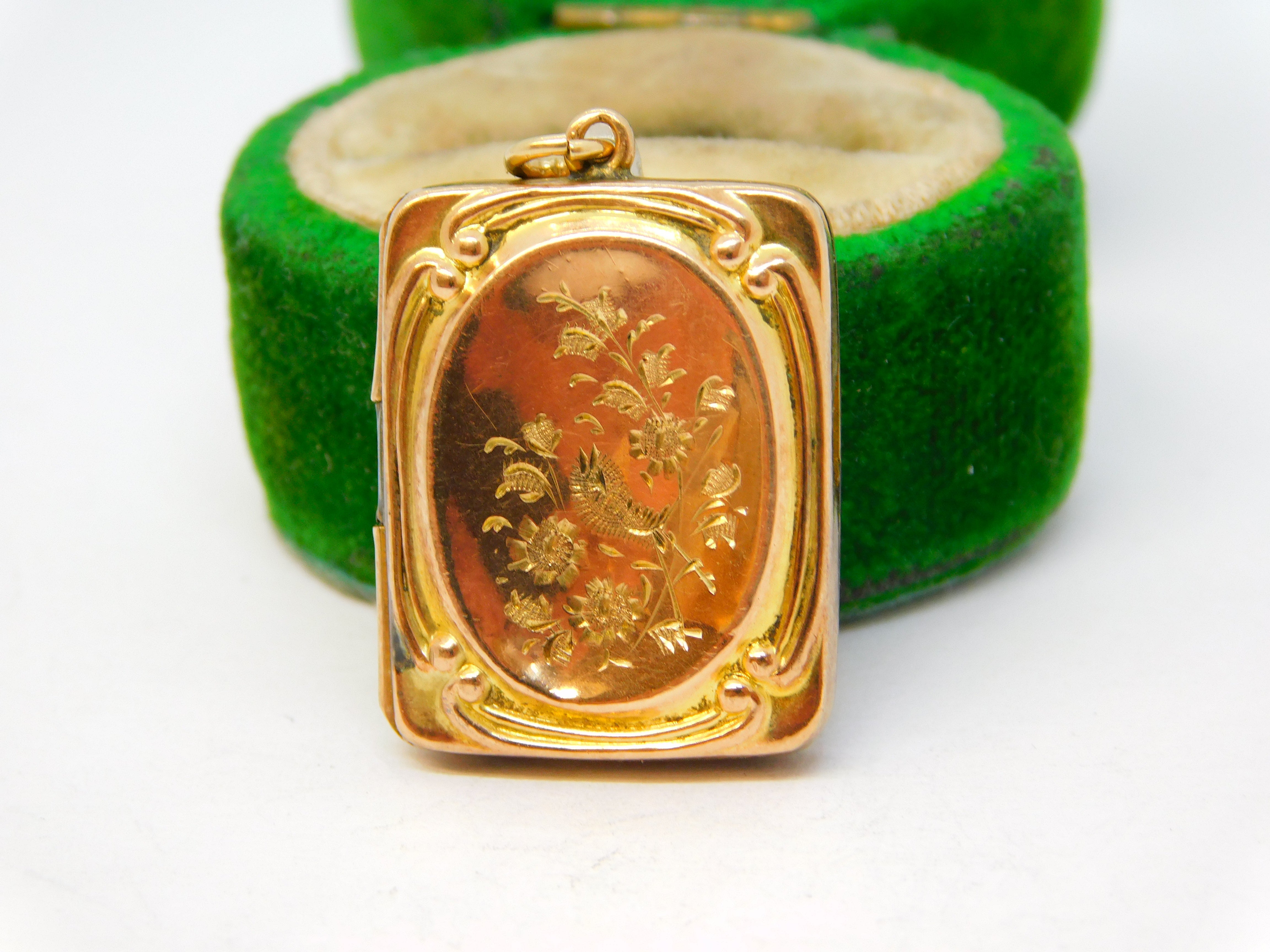 Victorian 9ct Gold Back & Front Swallow Sweetheart Locket Antique c1890