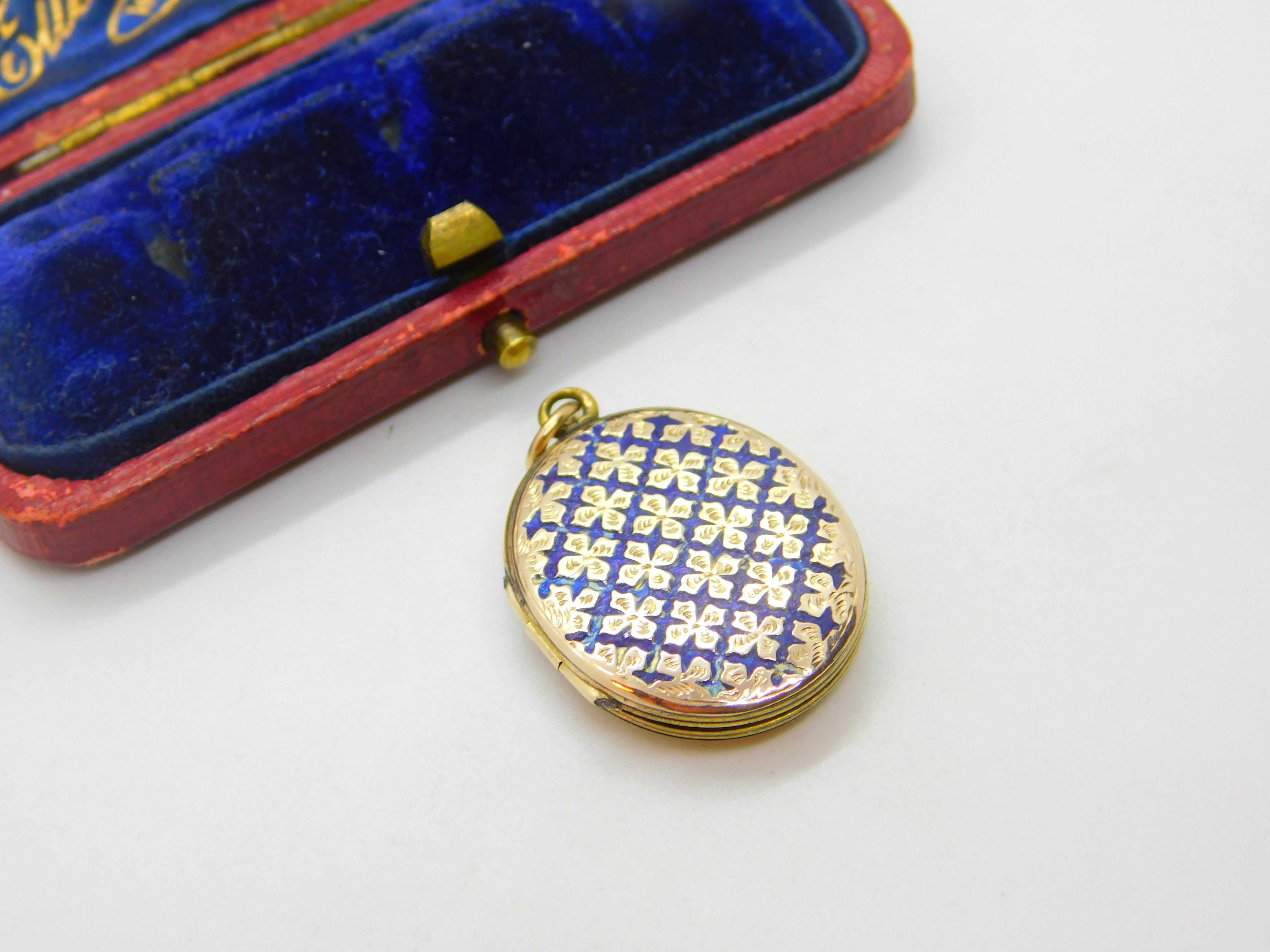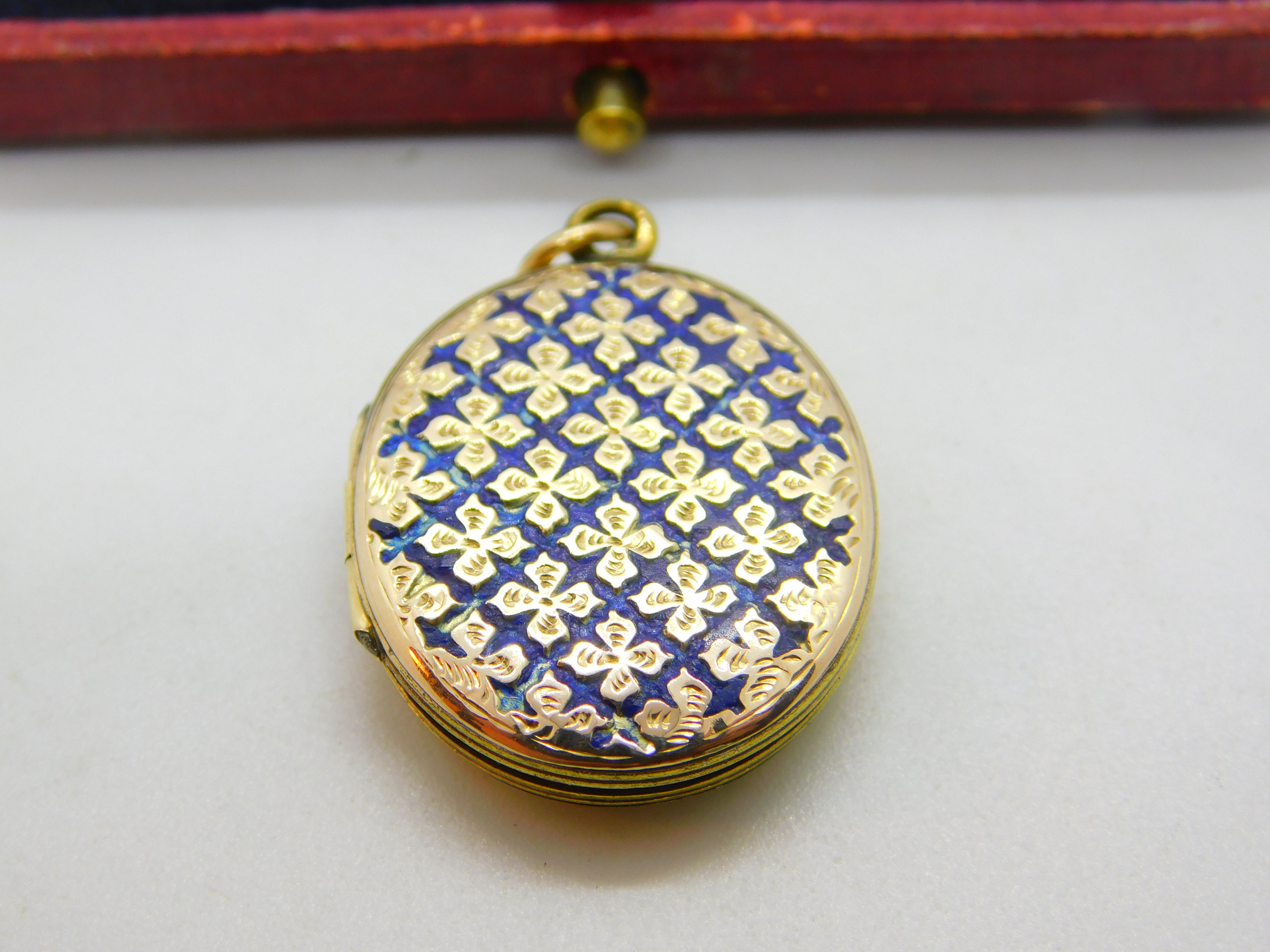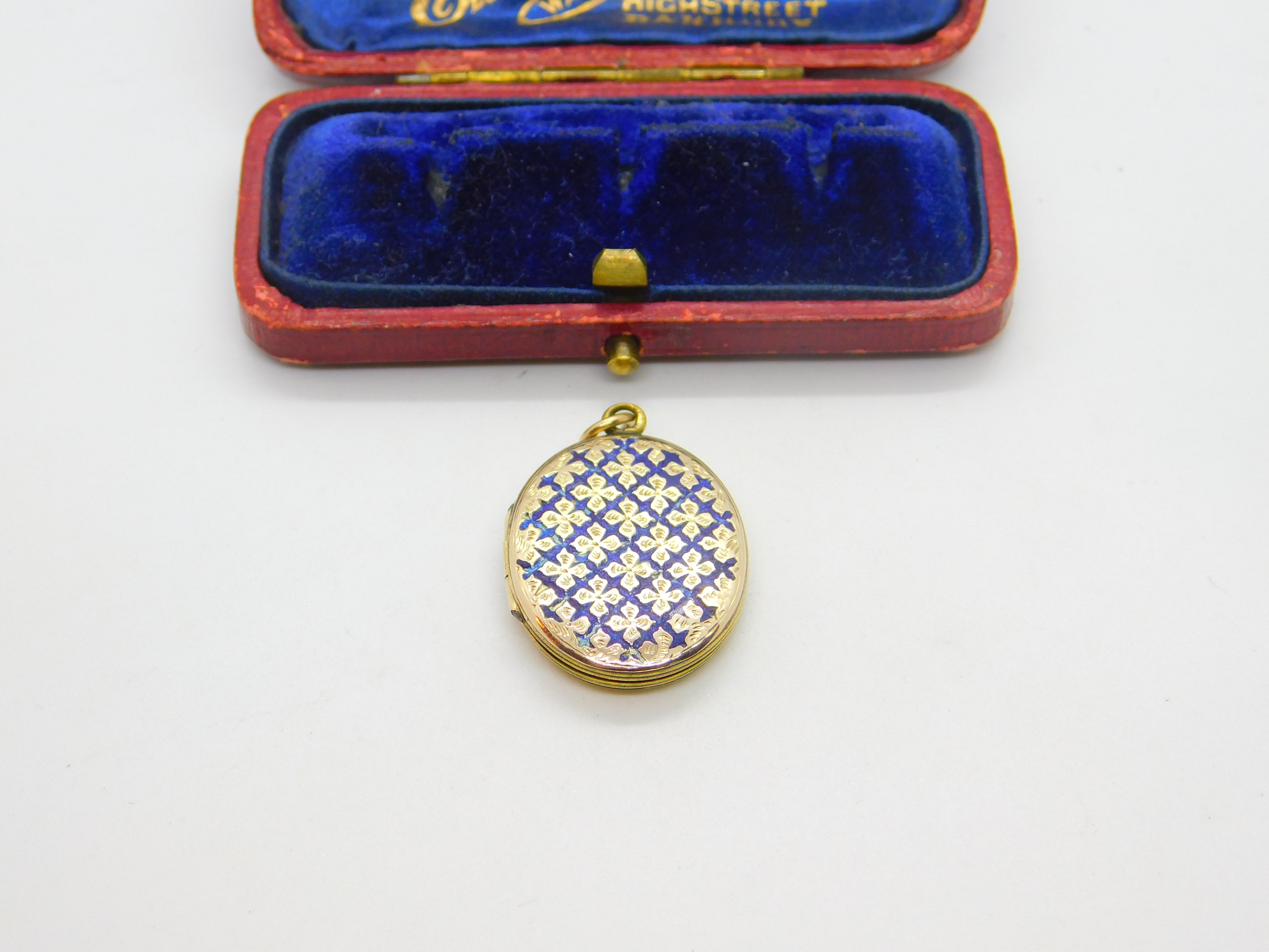 Details: A fantastic and wonderfully designed antique Victorian 9ct yellow gold back and front double locket pendant set with blue enamel to the front c1880. This is a wonderful item that would make a perfect gift or addition to any collection. The BOX pictured is for PRESENTATION ONLY and is NOT included in the listings but used to frame the pictures unless specifically stated otherwise.