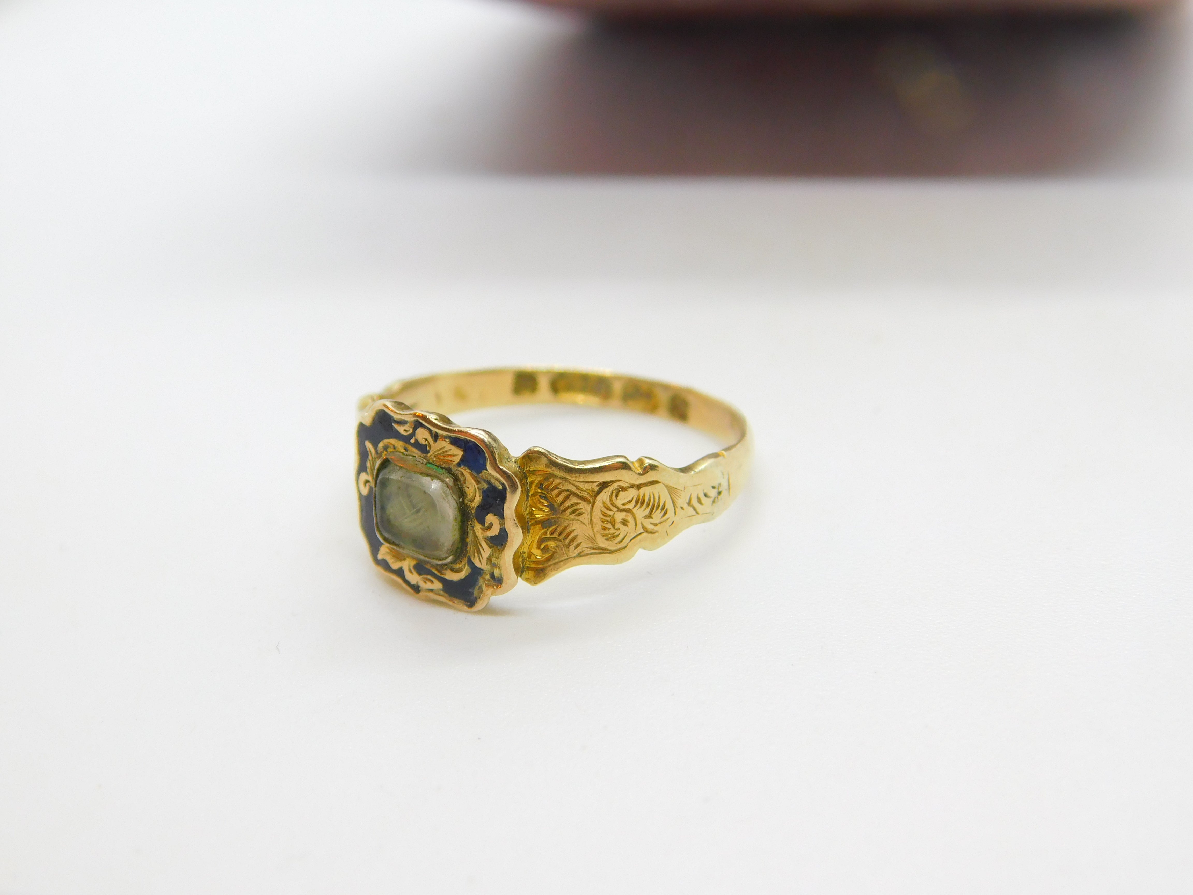 Details: A fantastic and wonderfully designed antique Victorian 9ct yellow gold mourning ring with lovely floral shoulders adorned with black enamel to the centre set with hair weave hallmarked Birmingham 1865. Minor wear to the black enamel. This is a wonderful item that would make a perfect gift or addition to any collection. The BOX pictured is for PRESENTATION ONLY and is NOT included in the listings but used to frame the pictures unless specifically stated otherwise.