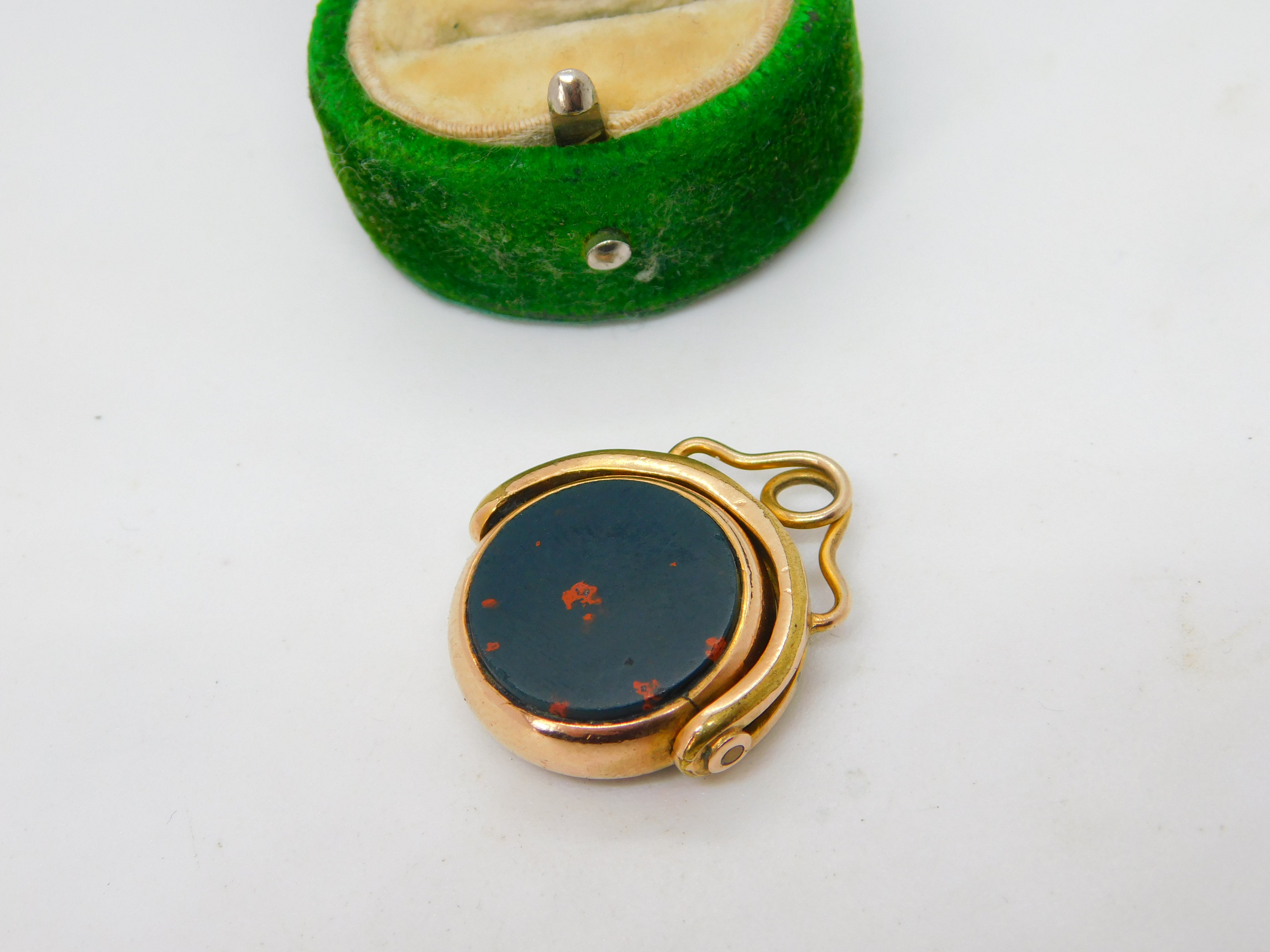 Victorian 9ct Gold, Bloodstone & Carnelian Spinner Fob Pendant Antique c1880