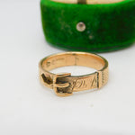 Details: A fantastic and wonderfully designed antique Victorian 9ct gold buckle form mourning ring with charming detailing throughout hallmarked to the interior, Chester c1880. The ring would once have had hair throughout the band although this is missing, the band has been repaired please note. This is a wonderful item that would make a perfect gift or addition to any collection. The BOX pictured is for PRESENTATION ONLY and is NOT included in the listings but used to frame the pictures unless specifically stated otherwise.