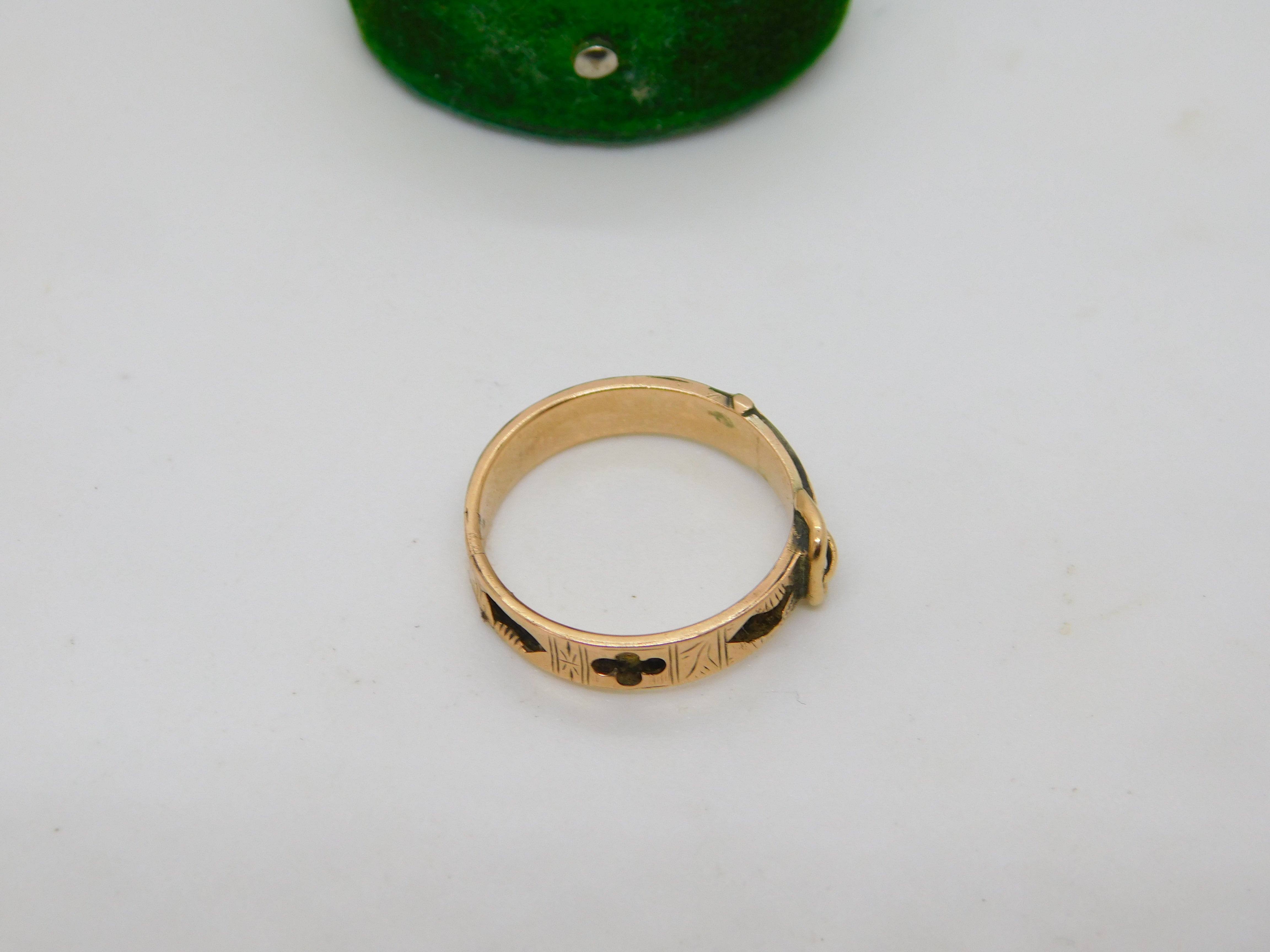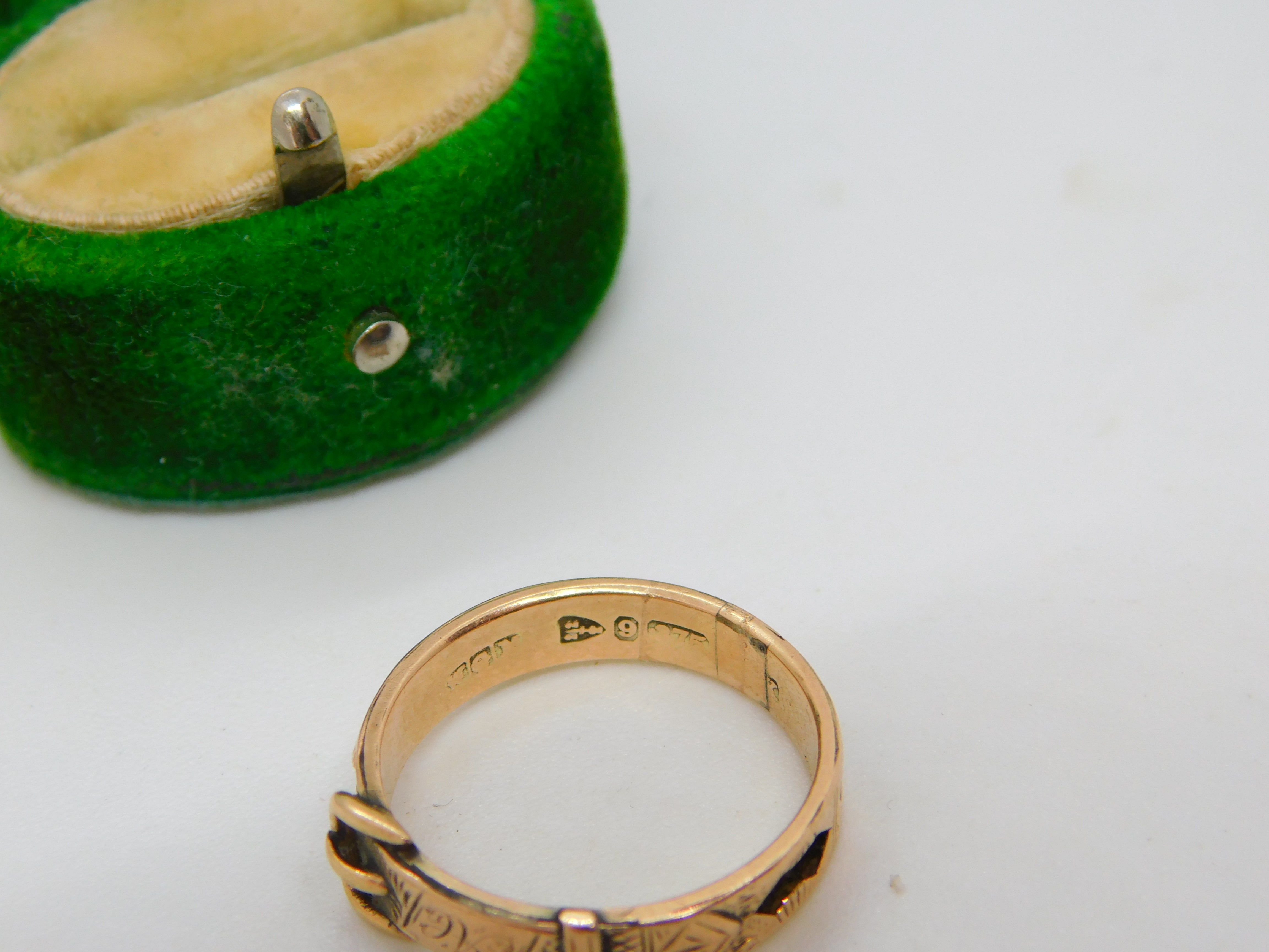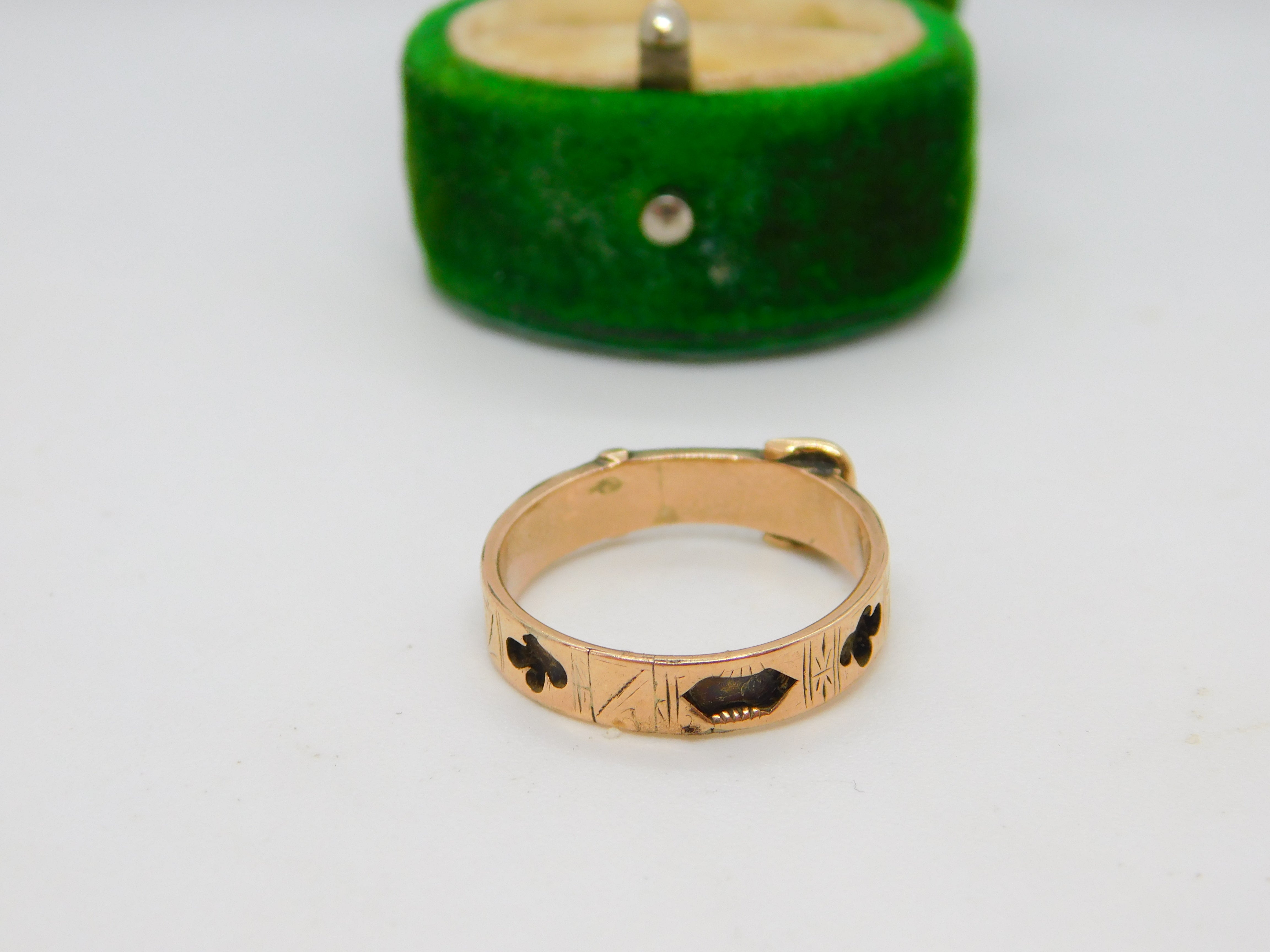 Victorian 9ct Gold Buckle Form Mourning Ring Antique c1880 Chester AF