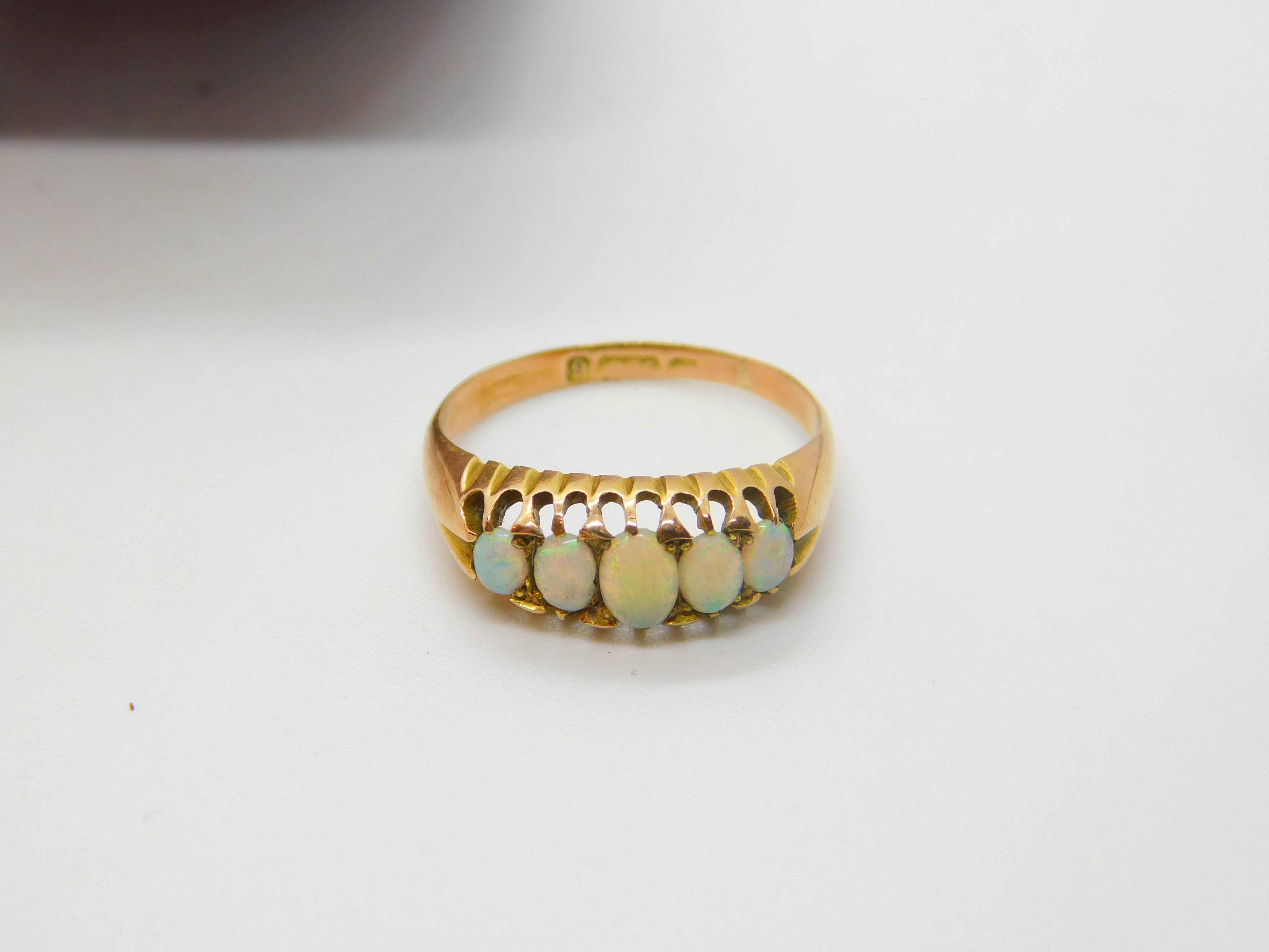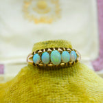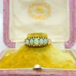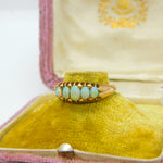 Victorian 9ct Gold & Cabochon Five-Stone Fire Opal Boat Ring c1890 Antique