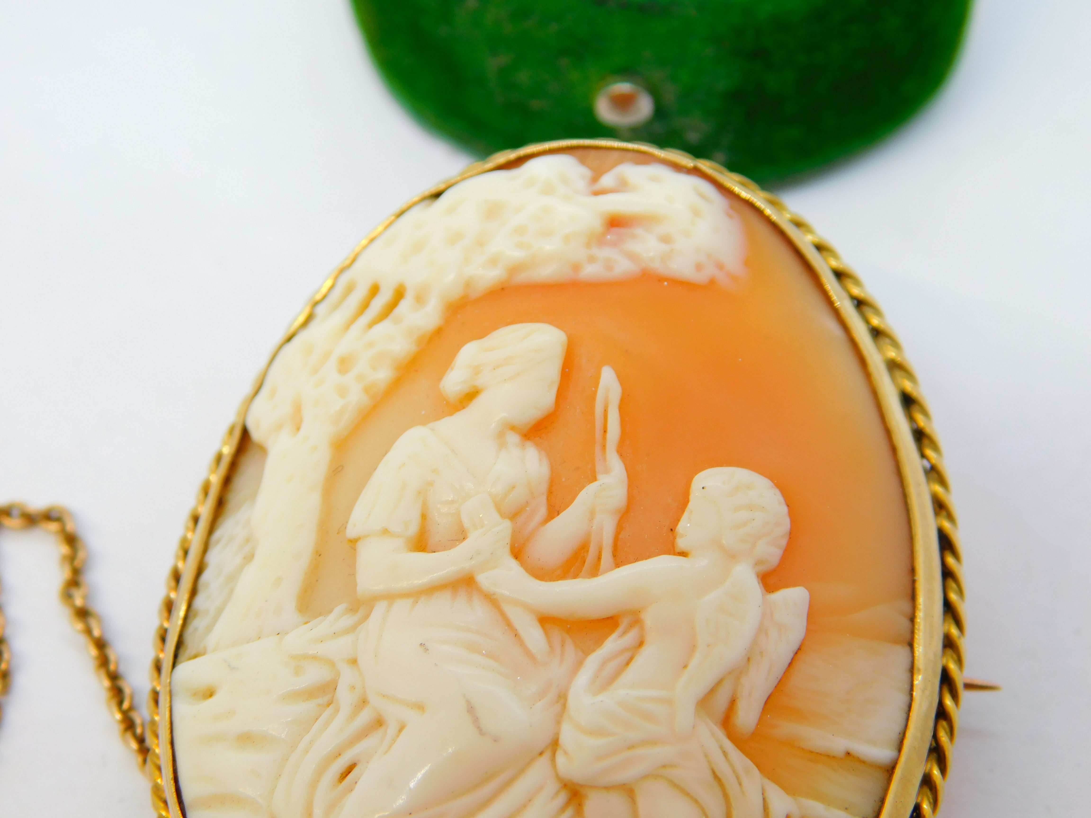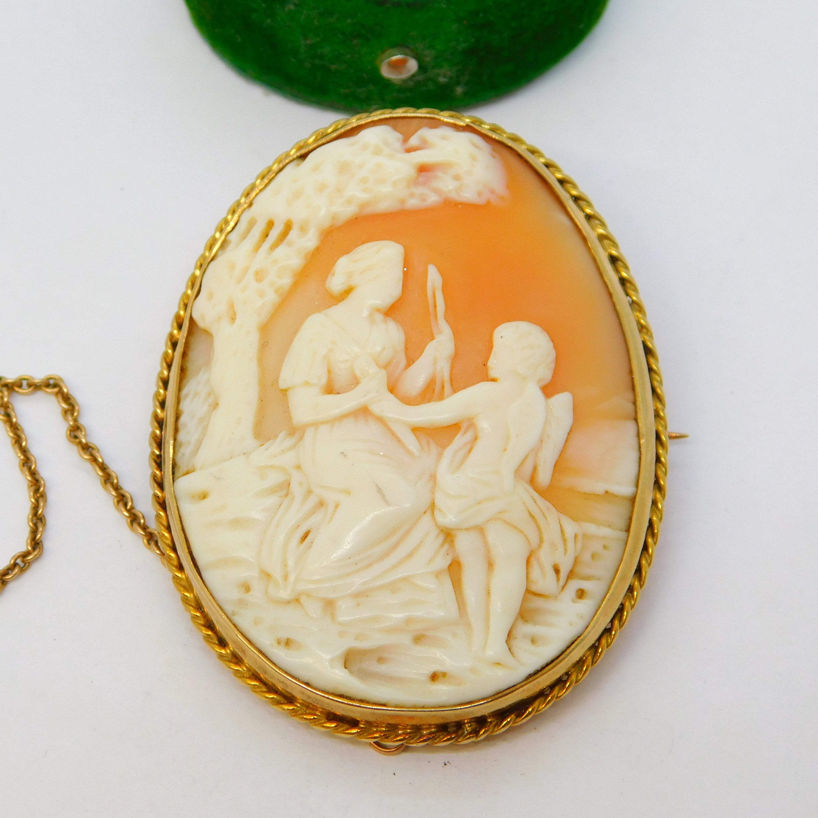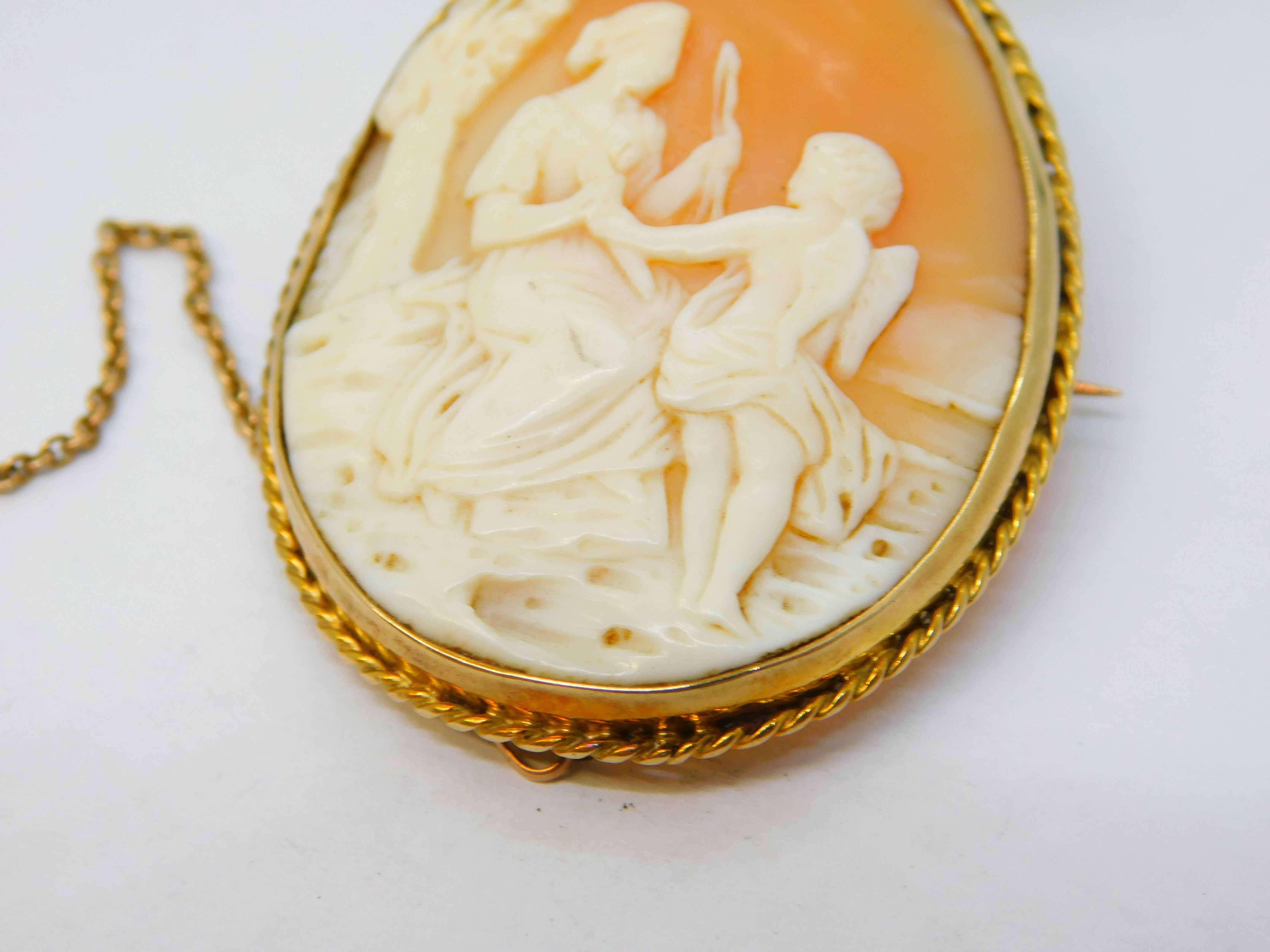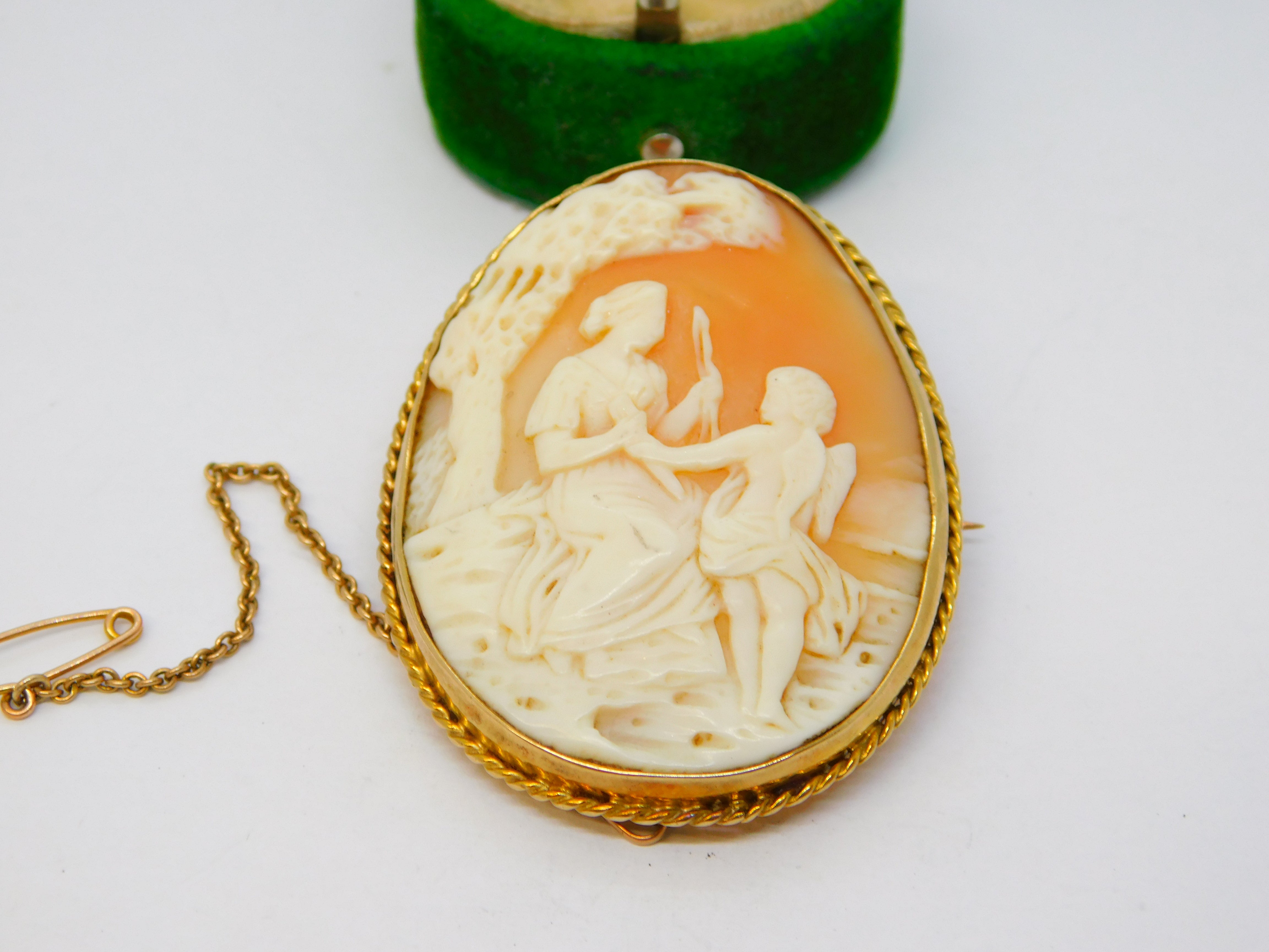 Victorian 9ct Gold Carved Shell Cameo Cupid & Aphrodite Antique c1880