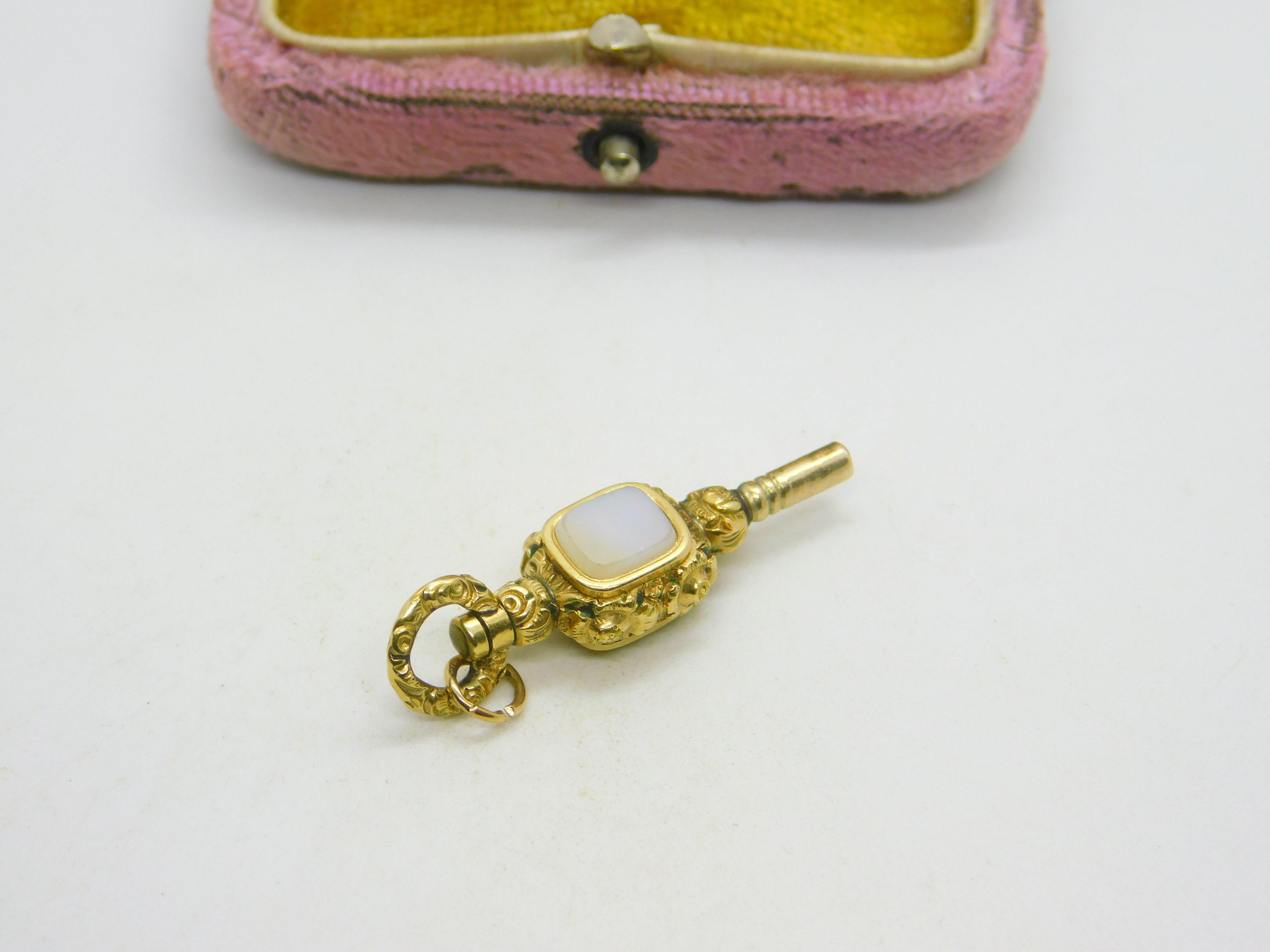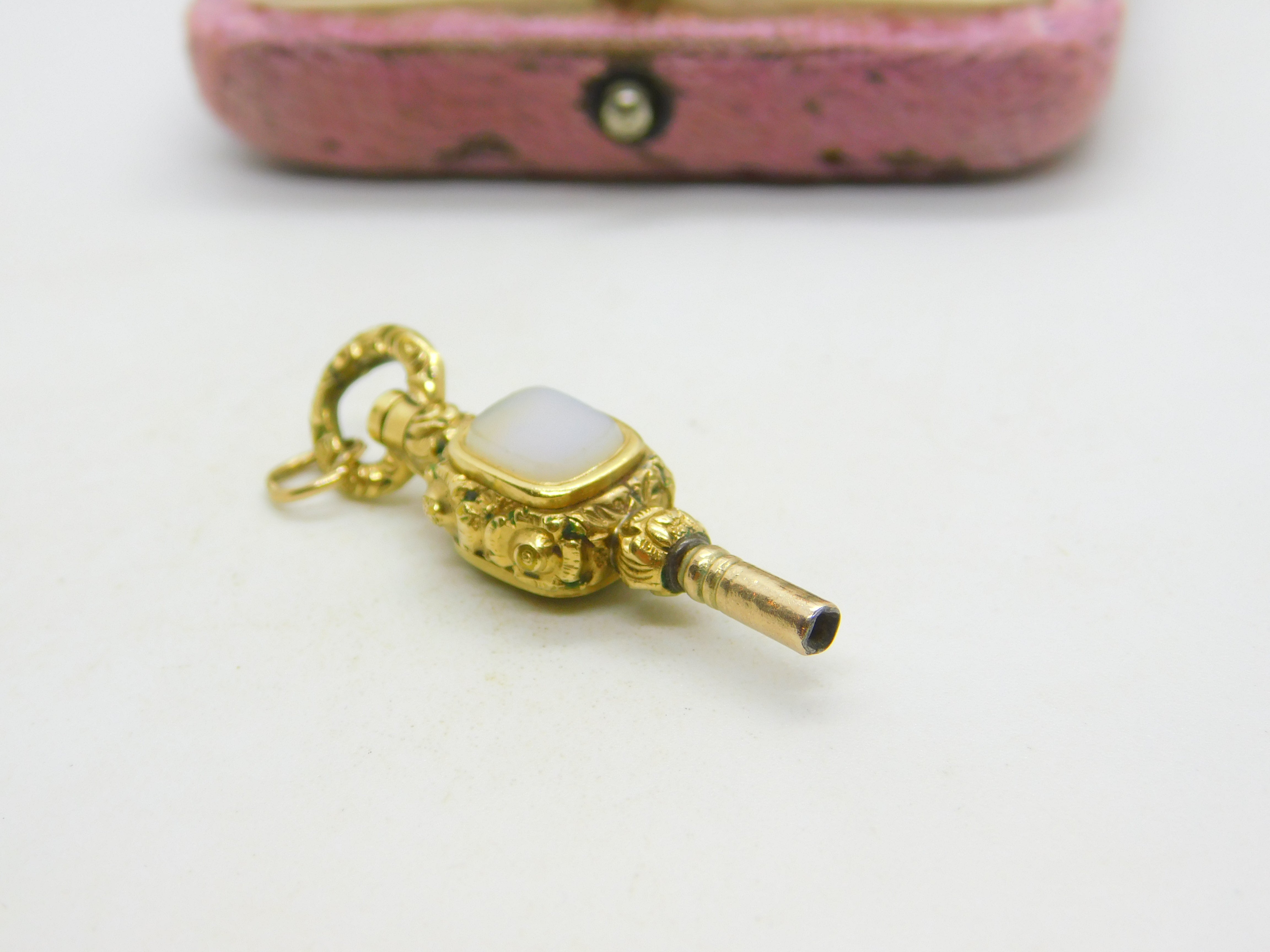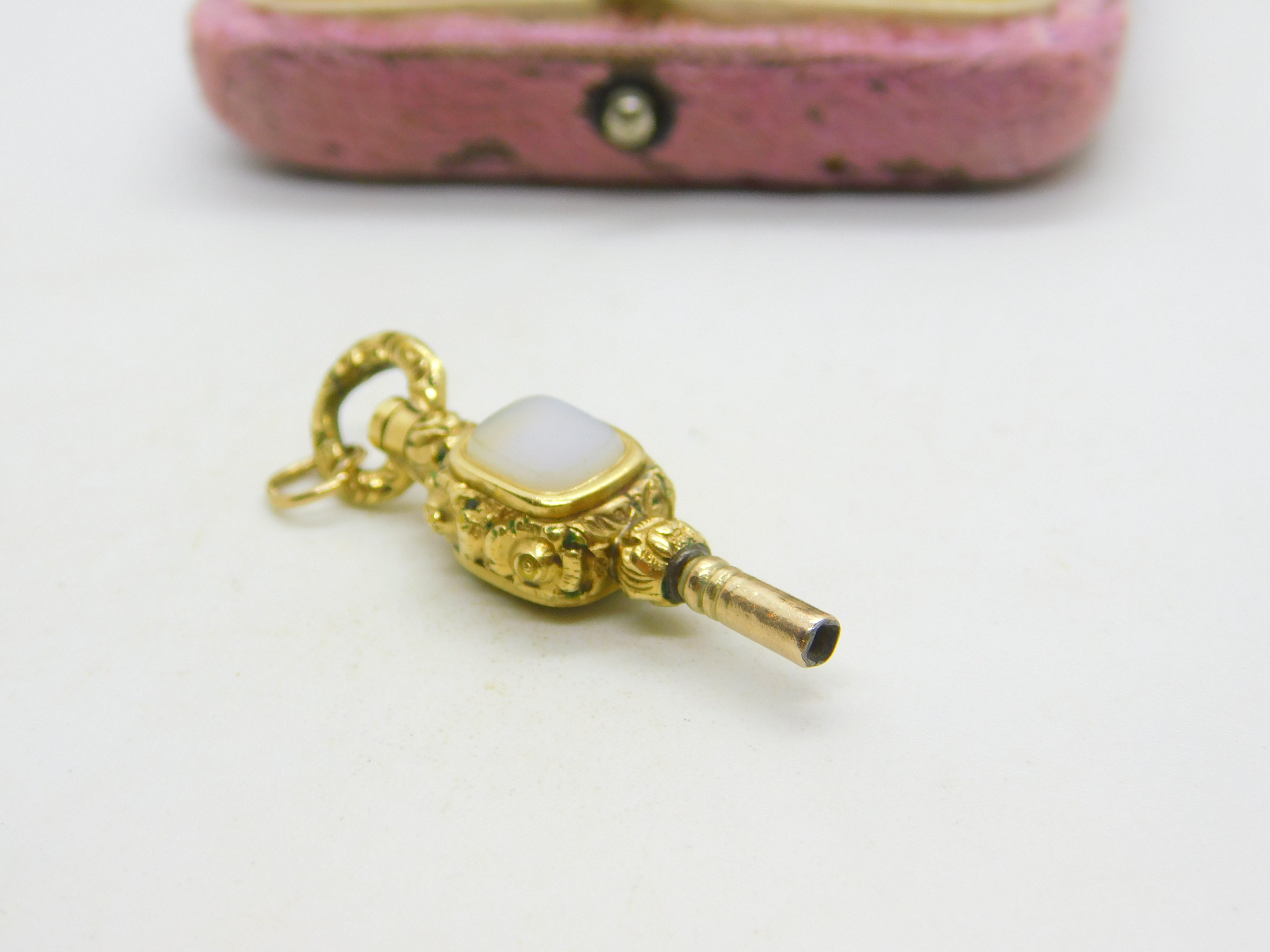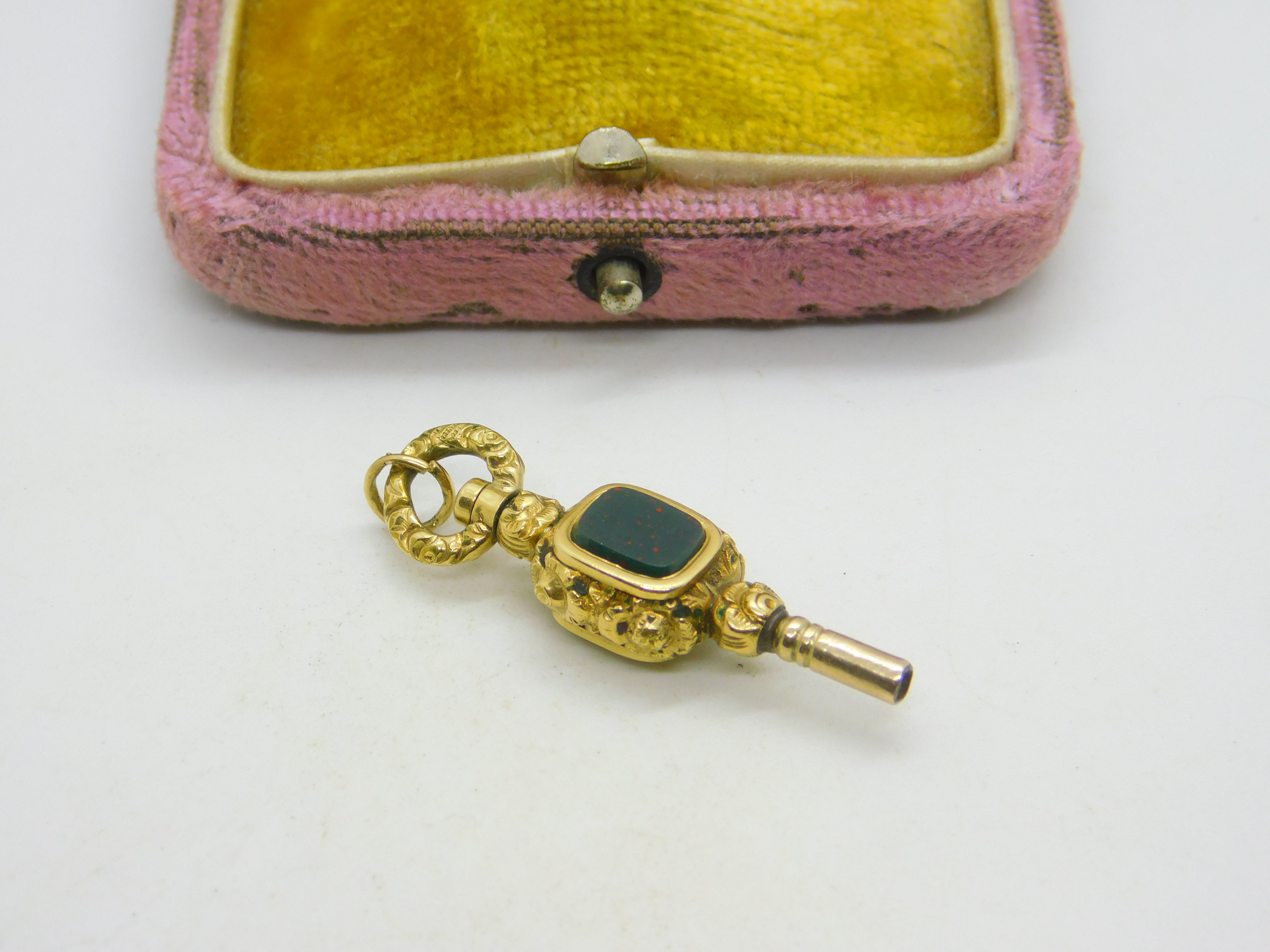 Victorian 9ct Gold Cased Bloodstone & Chalcedony Watch Key Fob Antique c1860