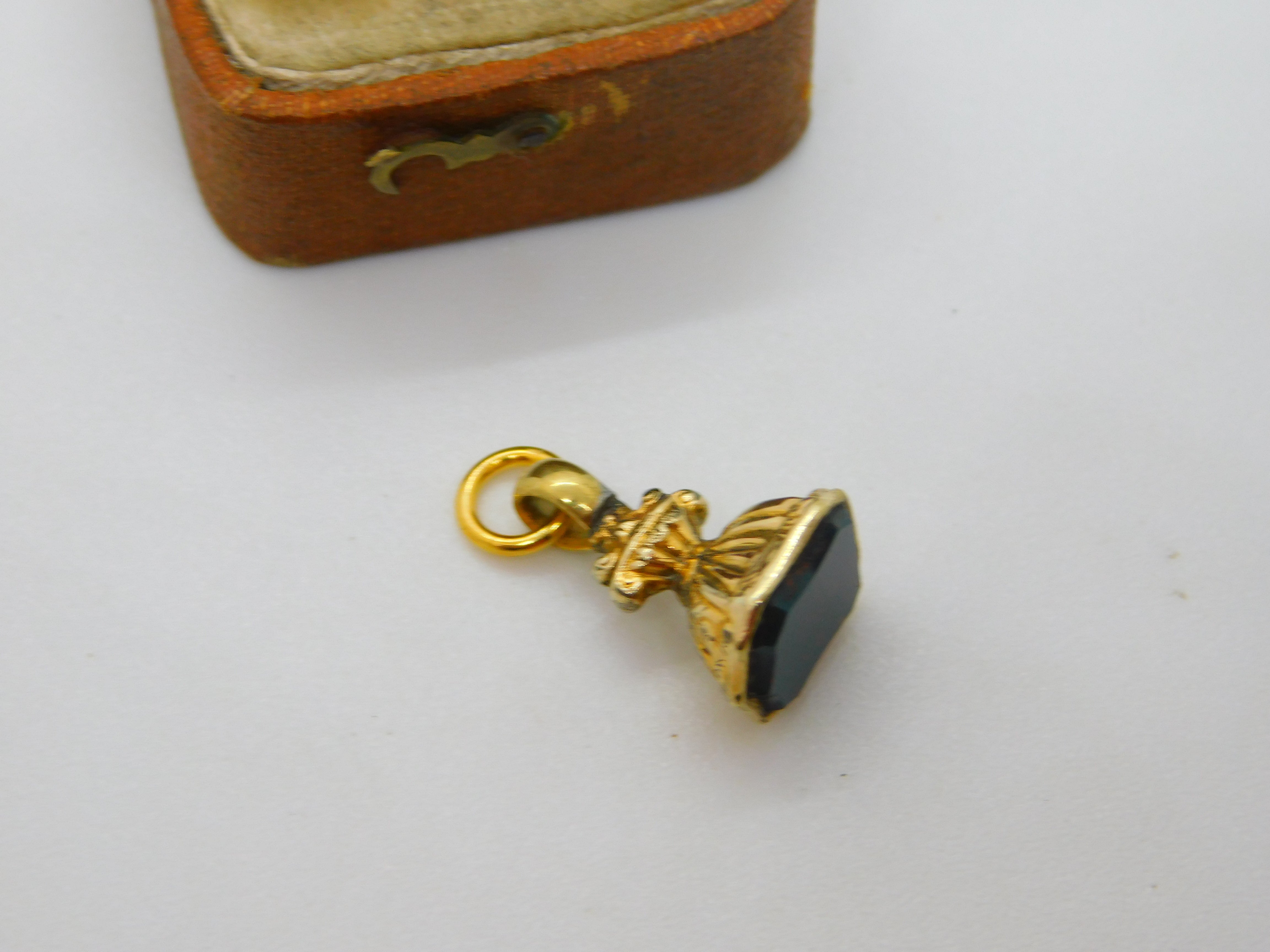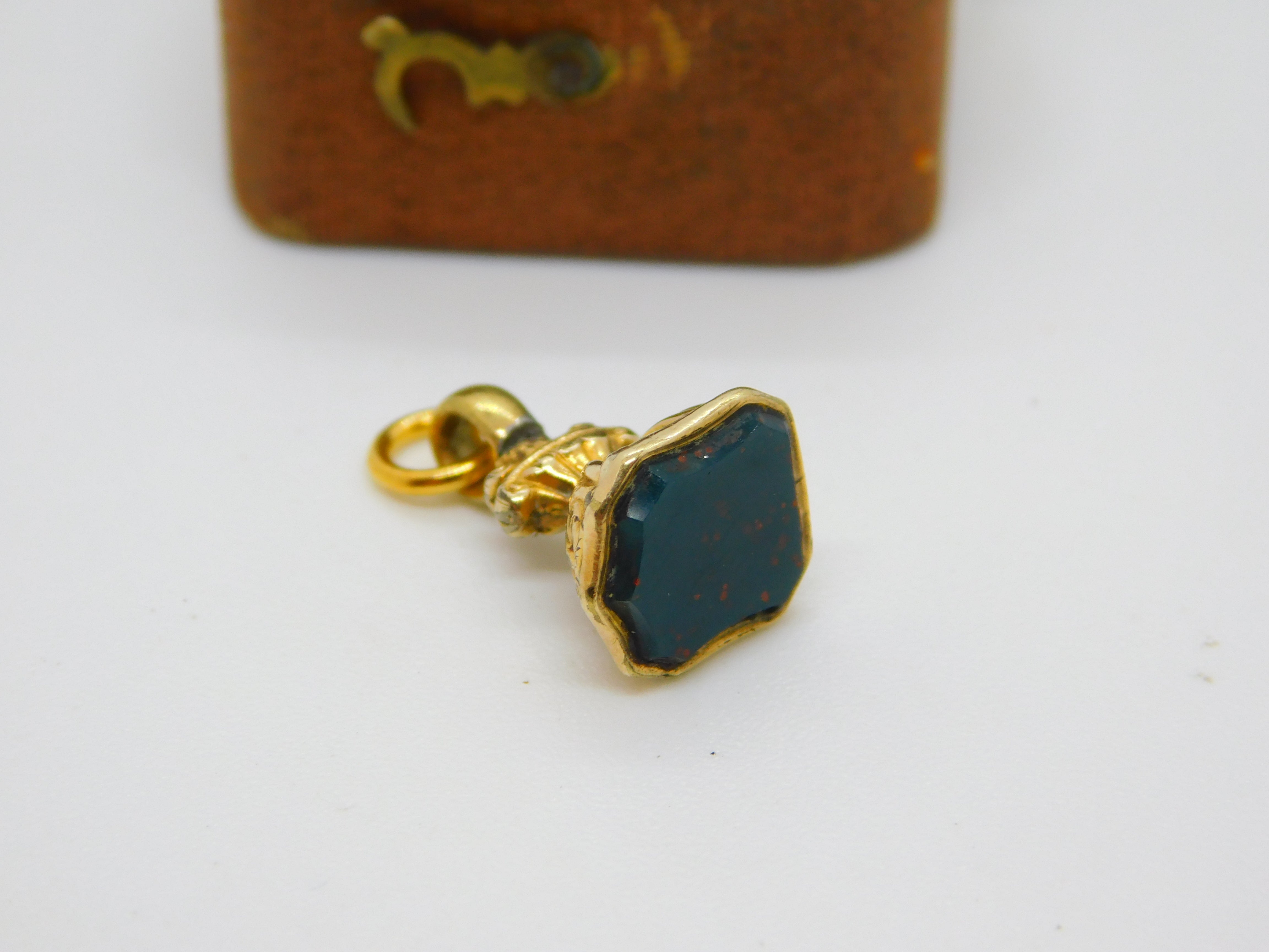 Details: A fantastic and wonderfully designed antique Victorian 9ct yellow gold cased bloodstone set shield form seal fob pendant c1880, the gold has been XRF tested. This is a wonderful item that would make a perfect gift or addition to any collection. The BOX pictured is for PRESENTATION ONLY and is NOT included in the listings but used to frame the pictures unless specifically stated otherwise.